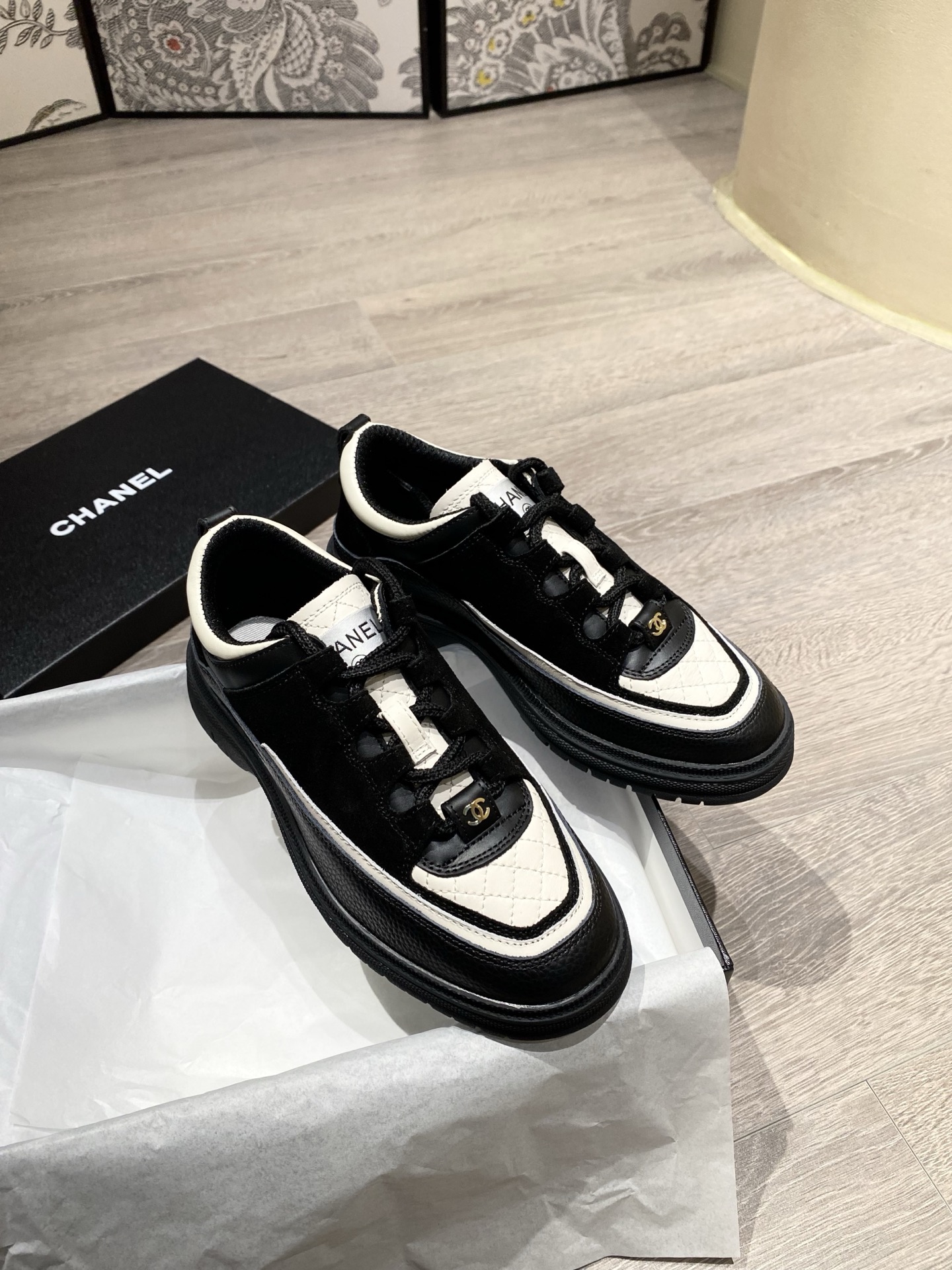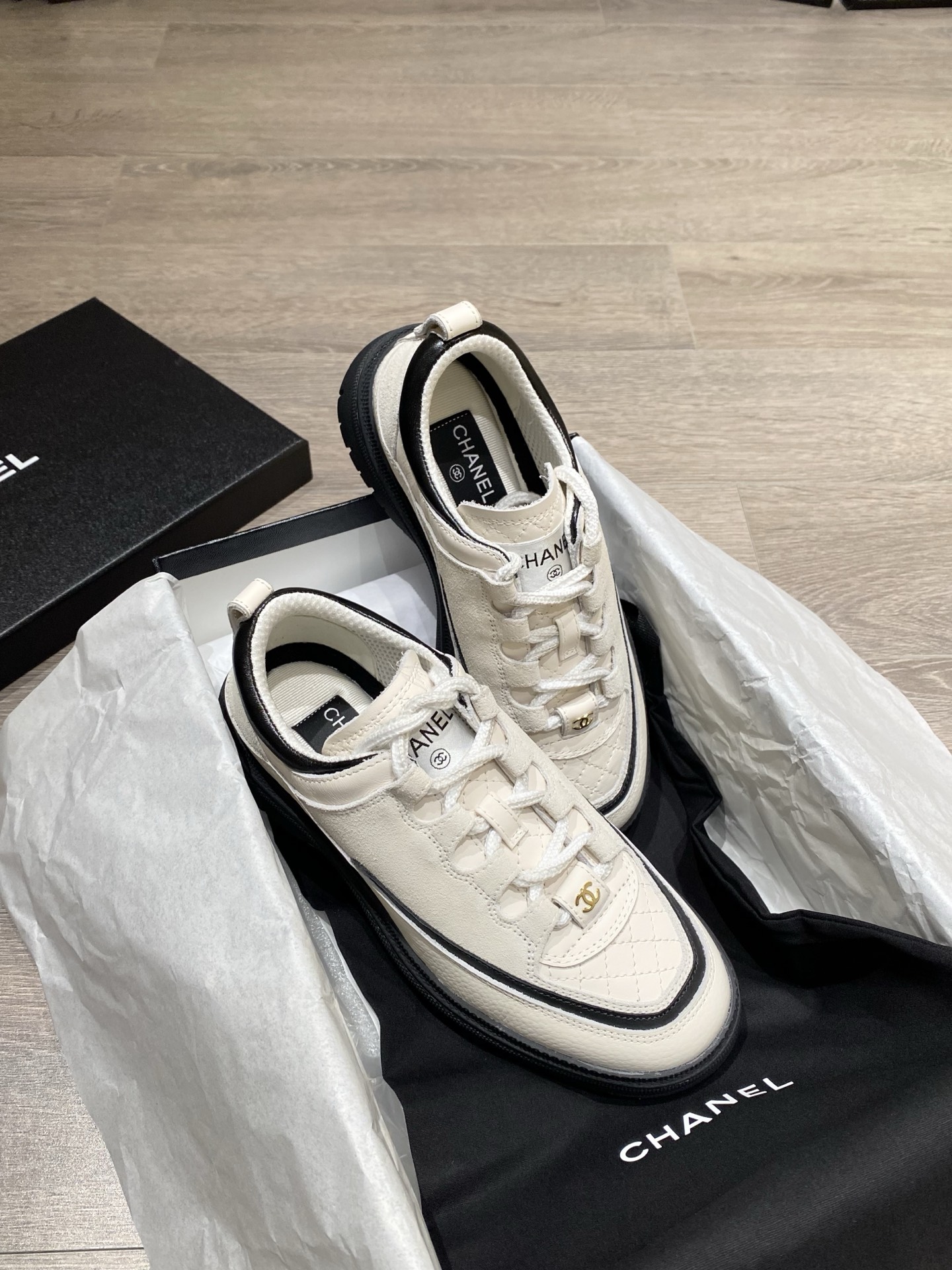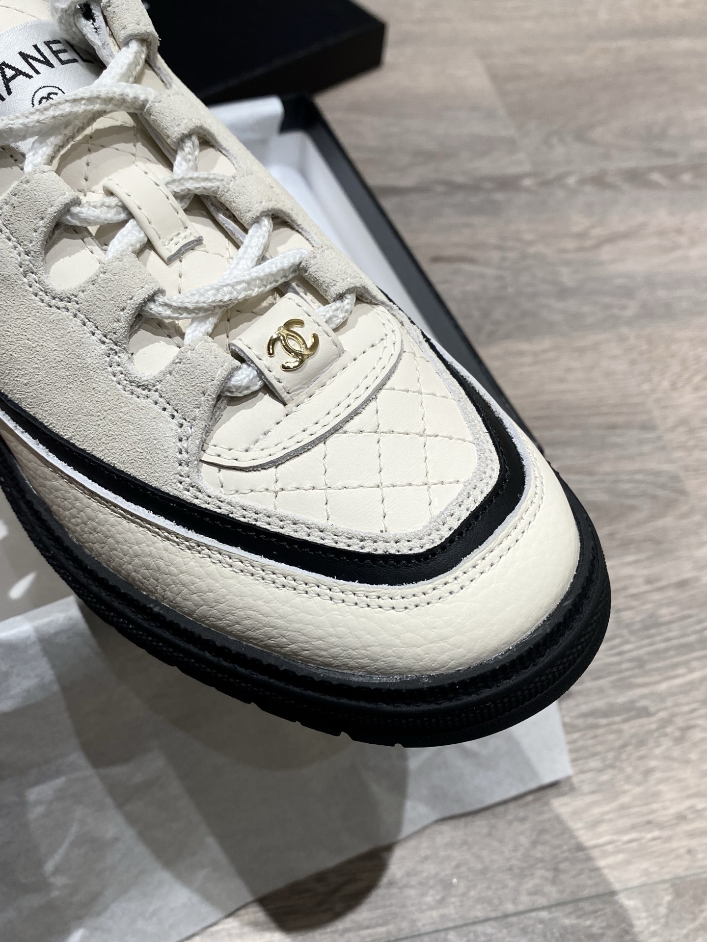 這款鞋子是AAAAA 1:1 質量(非常棒). 使用了和原版一模一樣的材料. 商標部分也保持了和香奈兒/Chanel一樣. 圖片拍攝是實物鞋子拍攝, 您所收到的實物保證和我們圖片一模一樣.