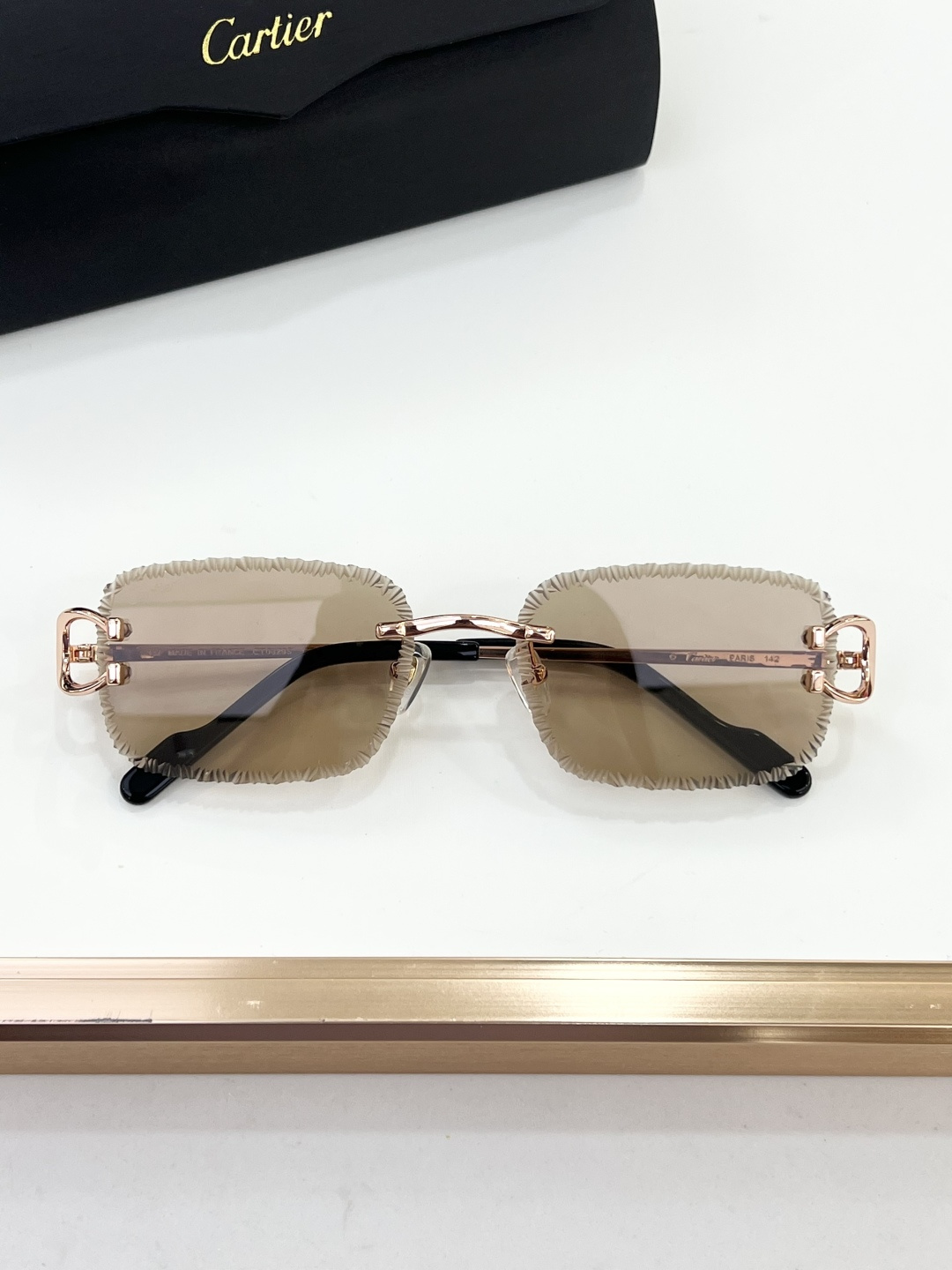 這款太陽眼鏡是AAAAA 1:1 質量(非常棒). 使用了和原版一模一樣的材料. 商標部分也保持了和卡地亞/Cartier一樣. 圖片拍攝是實物太陽眼鏡拍攝, 您所收到的實物保證和我們圖片一模一樣.
