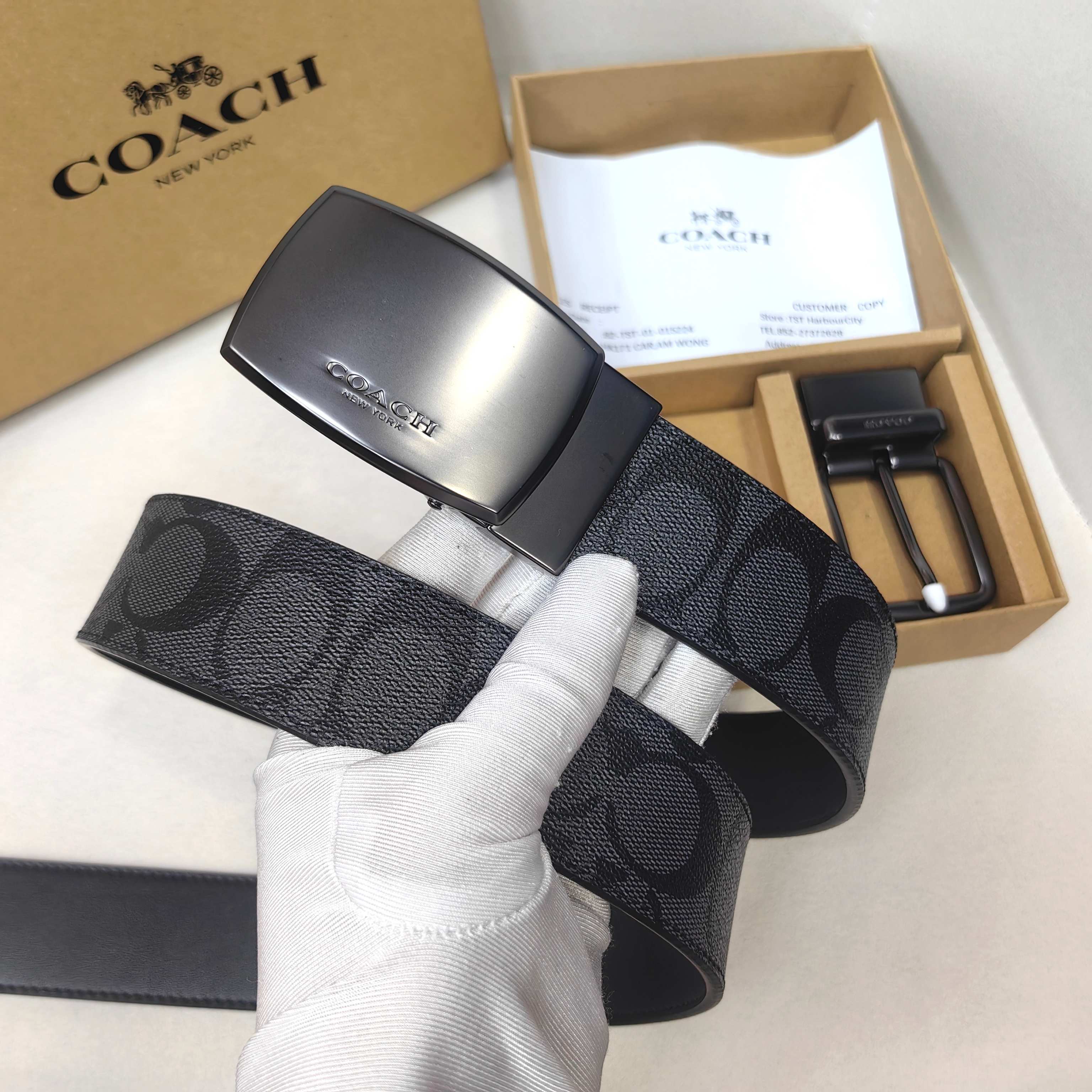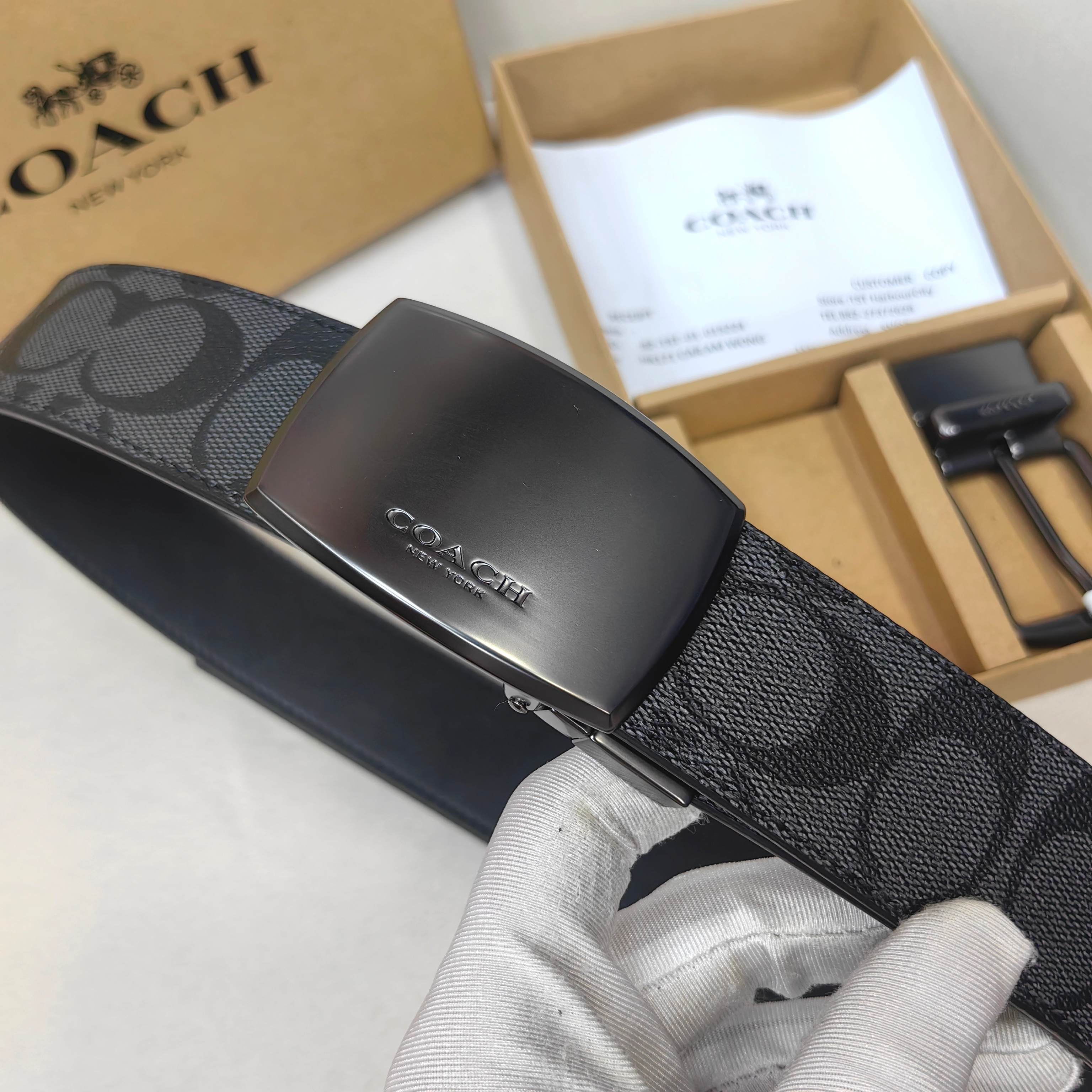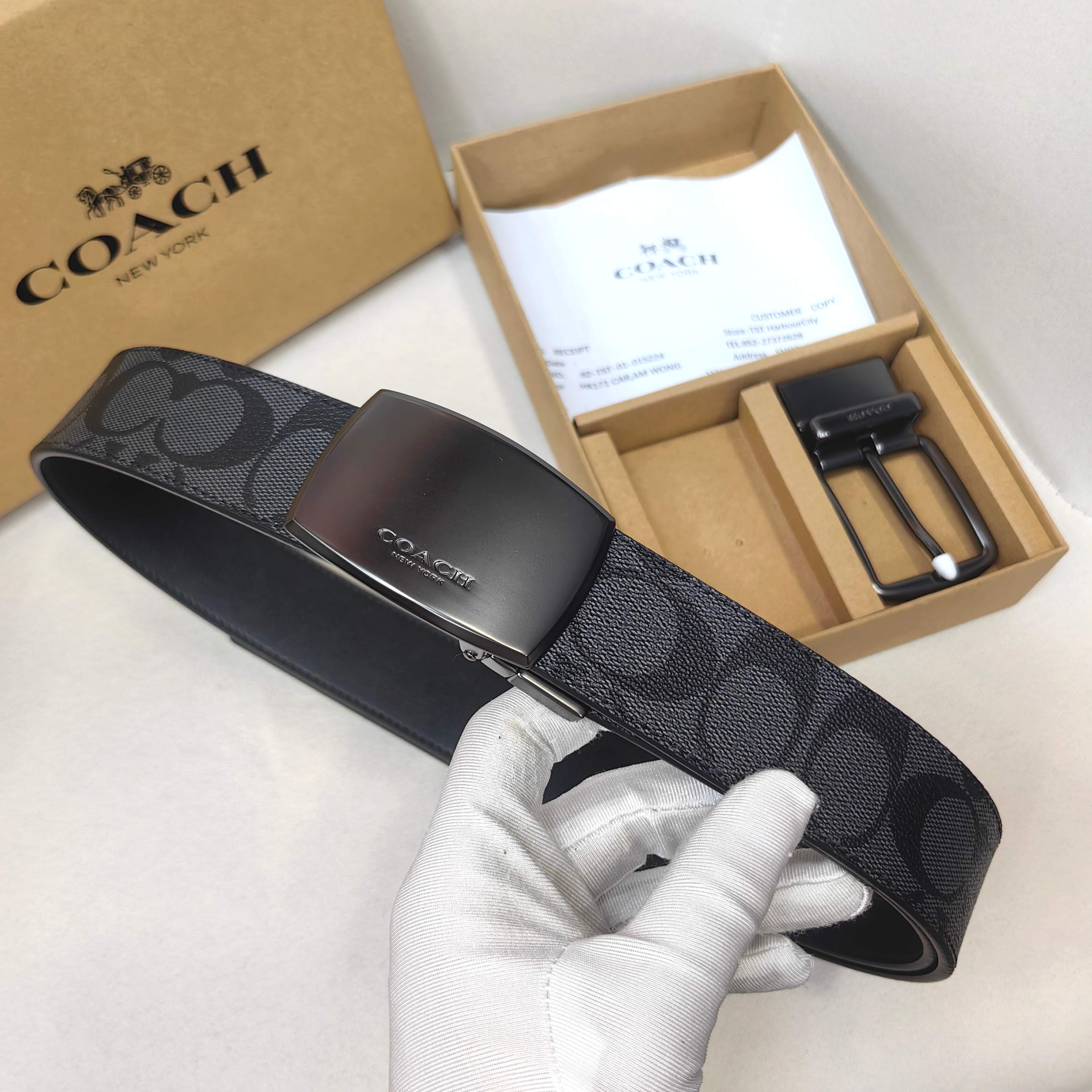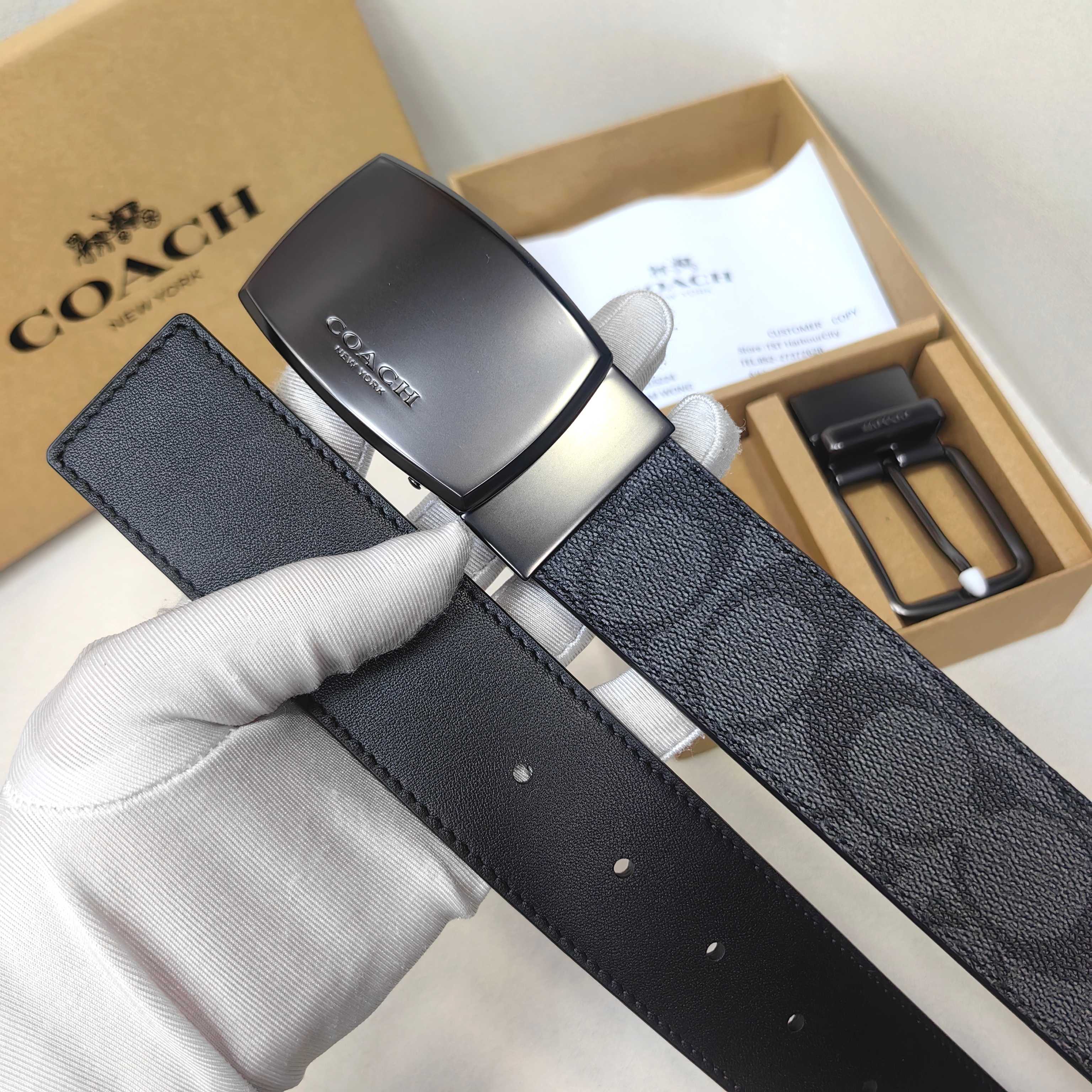 這款皮帶是AAAAA 1:1 質量(非常棒). 使用了和原版一模一樣的材料. 商標部分也保持了和Coach一樣. 圖片拍攝是實物皮帶拍攝, 您所收到的實物保證和我們圖片一模一樣.