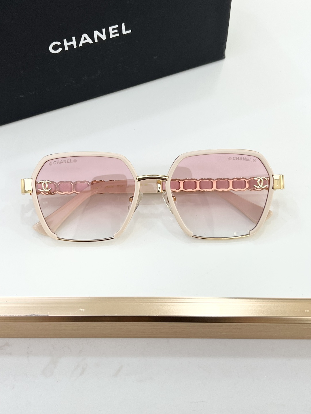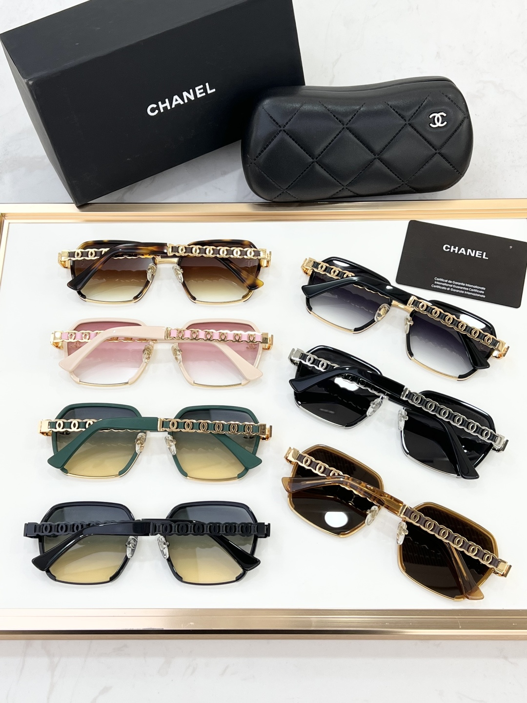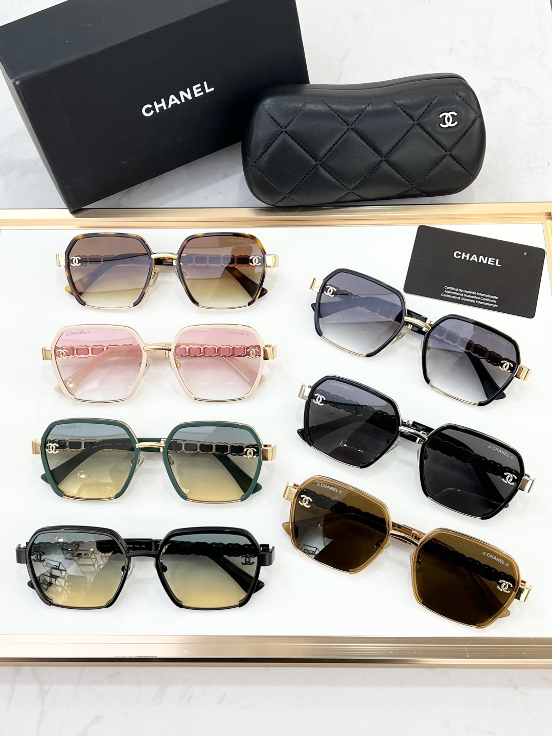 這款太陽眼鏡是AAAAA 1:1 質量(非常棒). 使用了和原版一模一樣的材料. 商標部分也保持了和香奈兒/Chanel一樣. 圖片拍攝是實物太陽眼鏡拍攝, 您所收到的實物保證和我們圖片一模一樣.