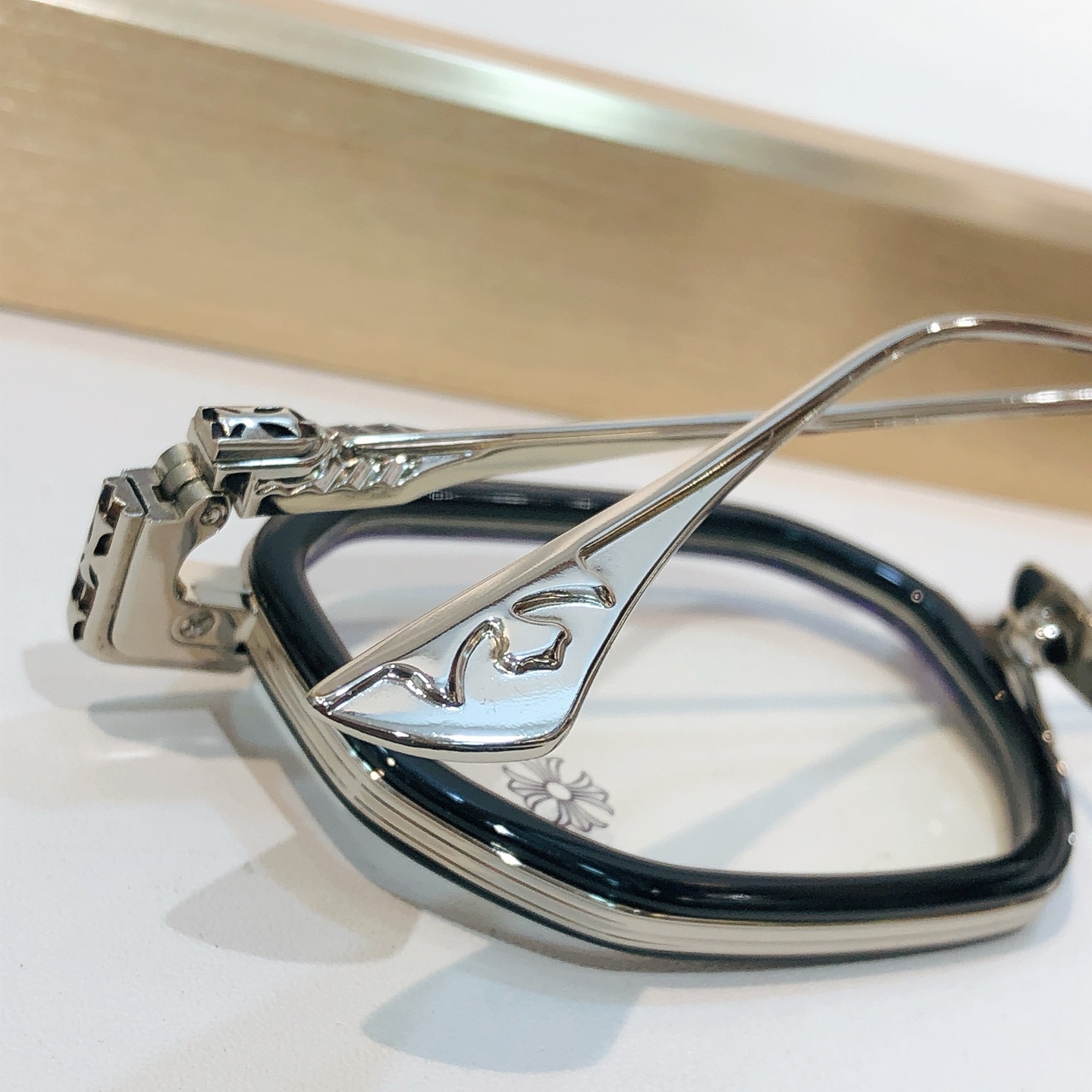 這款太陽眼鏡是AAAAA 1:1 質量(非常棒). 使用了和原版一模一樣的材料. 商標部分也保持了和鉻心/Chrome Hearts一樣. 圖片拍攝是實物太陽眼鏡拍攝, 您所收到的實物保證和我們圖片一模一樣.