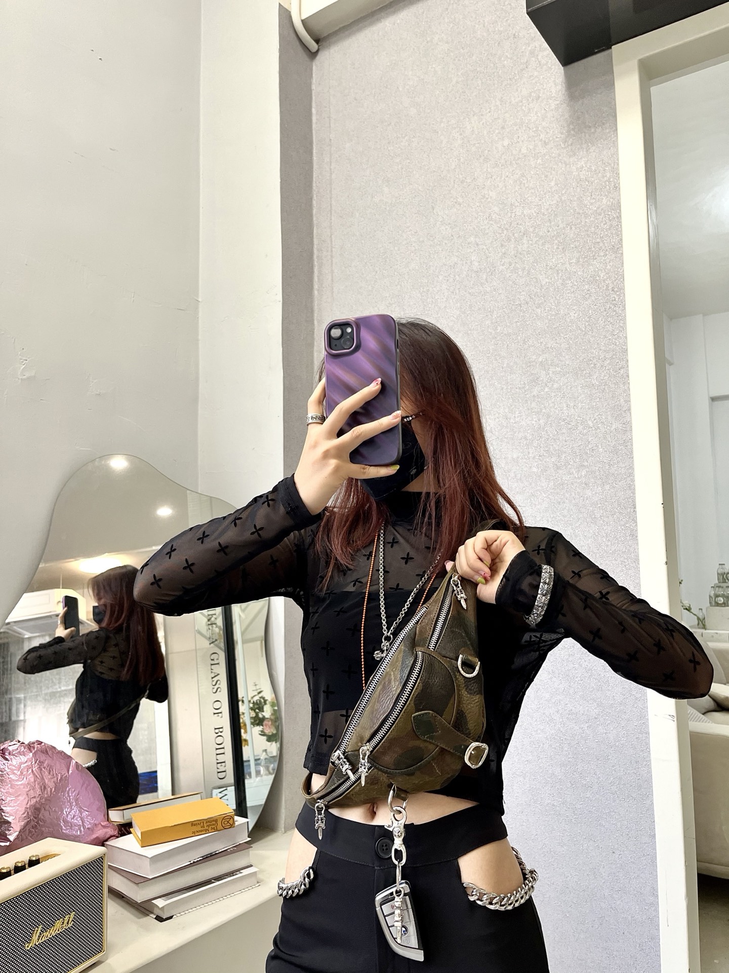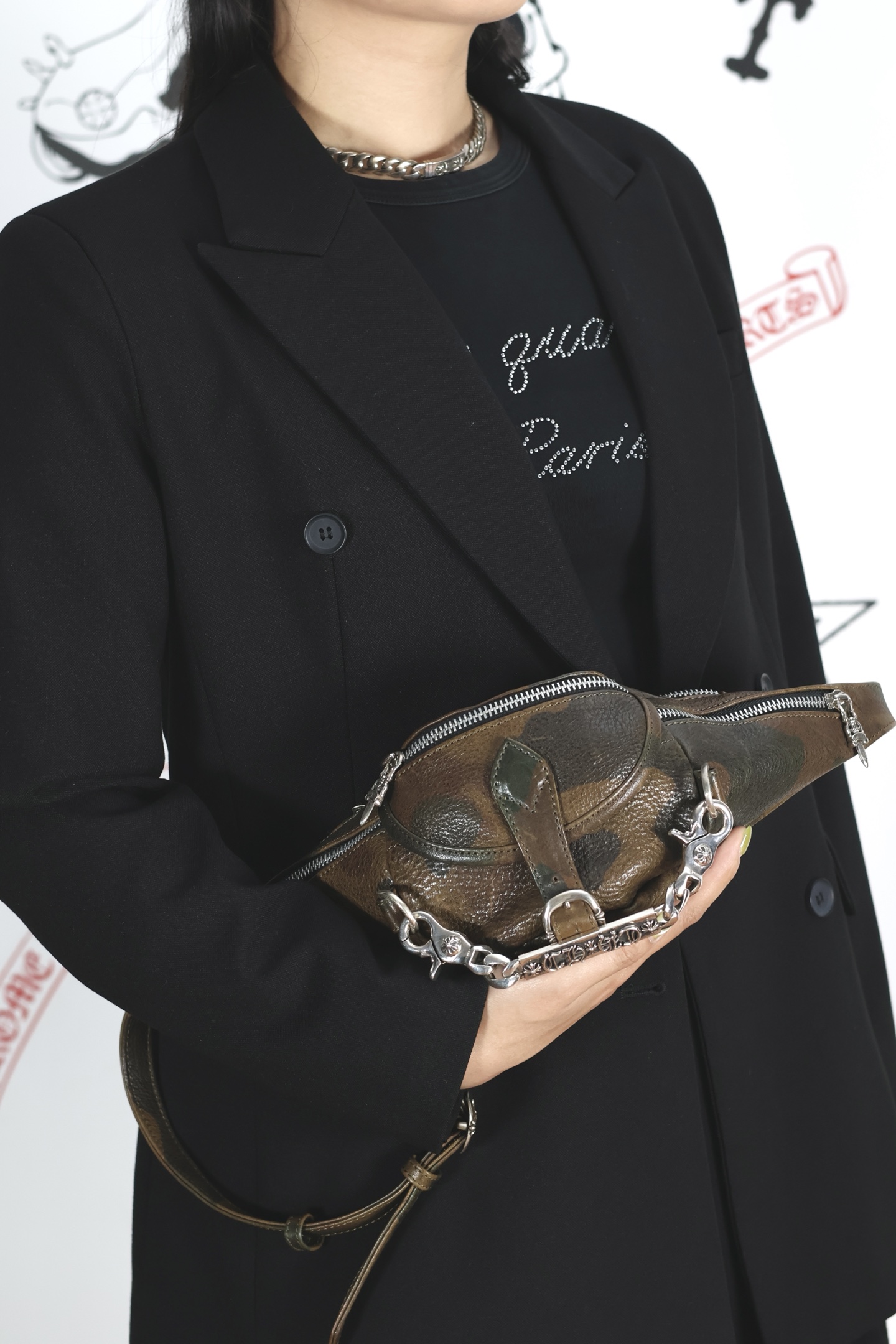這款包包是AAAAA 1:1 質量(非常棒). 使用了和原版一模一樣的材料. 商標部分也保持了和鉻心/Chrome Hearts一樣. 圖片拍攝是實物包包拍攝, 您所收到的實物保證和我們圖片一模一樣.