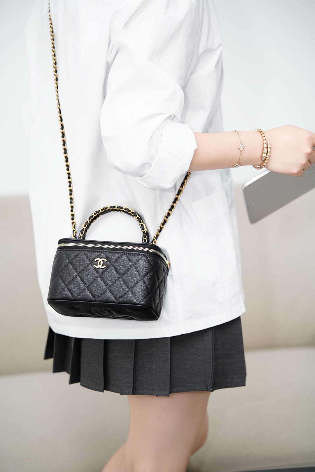 這款包包是AAAAA 1:1 質量(非常棒). 使用了和原版一模一樣的材料. 商標部分也保持了和香奈兒/Chanel一樣. 圖片拍攝是實物包包拍攝, 您所收到的實物保證和我們圖片一模一樣.