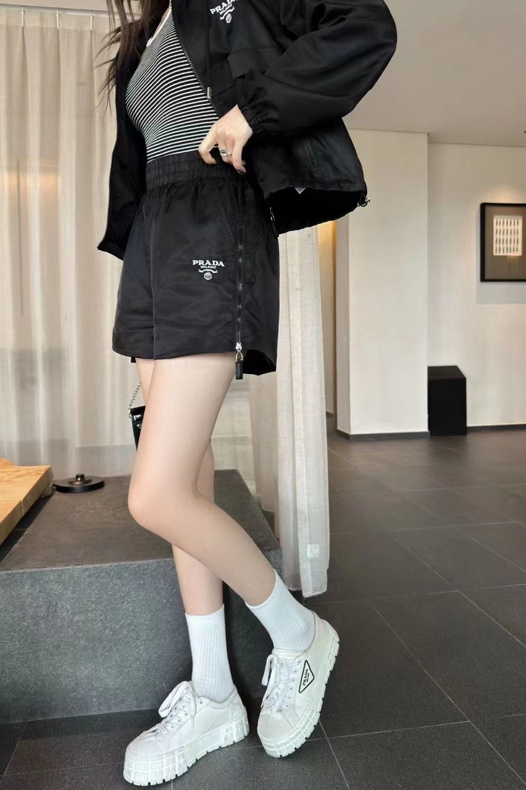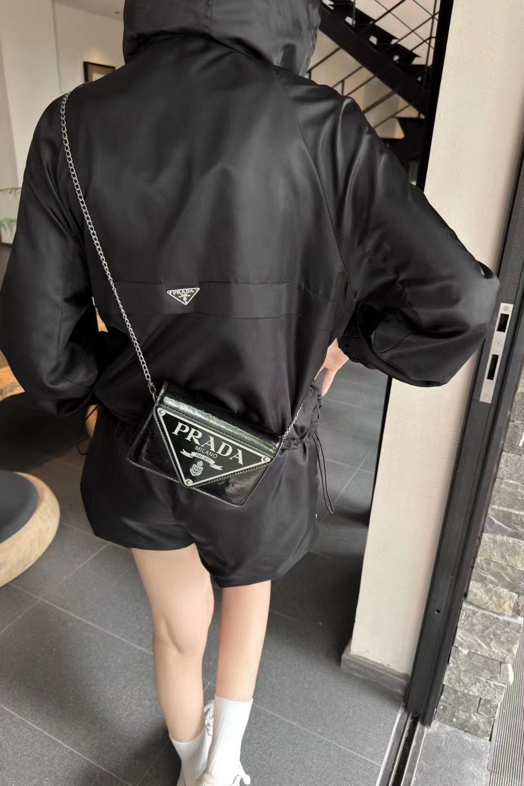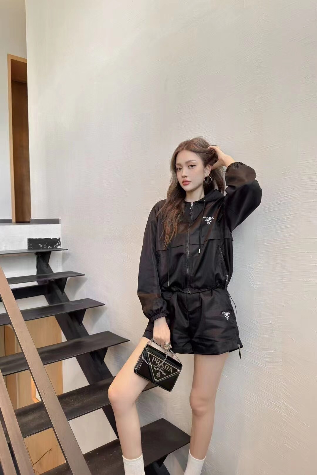 這款衣服是AAAAA 1:1 質量(非常棒). 使用了和原版一模一樣的材料. 商標部分也保持了和普拉達/Prada一樣. 圖片拍攝是實物衣服拍攝, 您所收到的實物保證和我們圖片一模一樣.