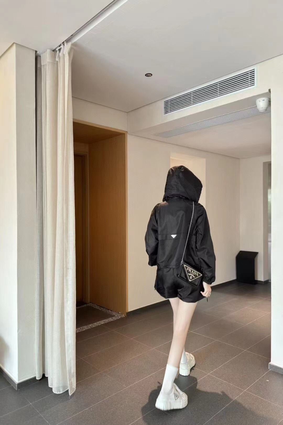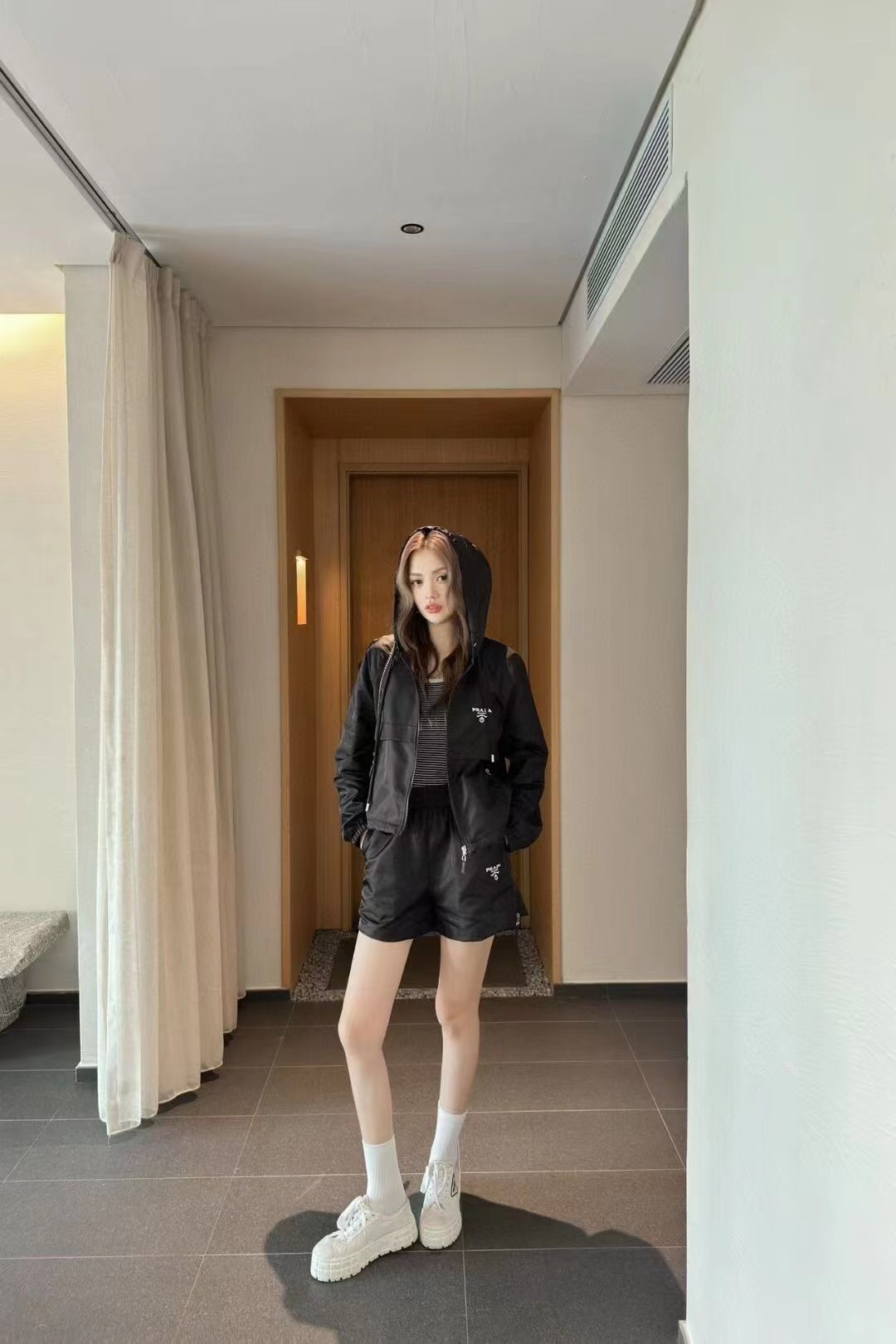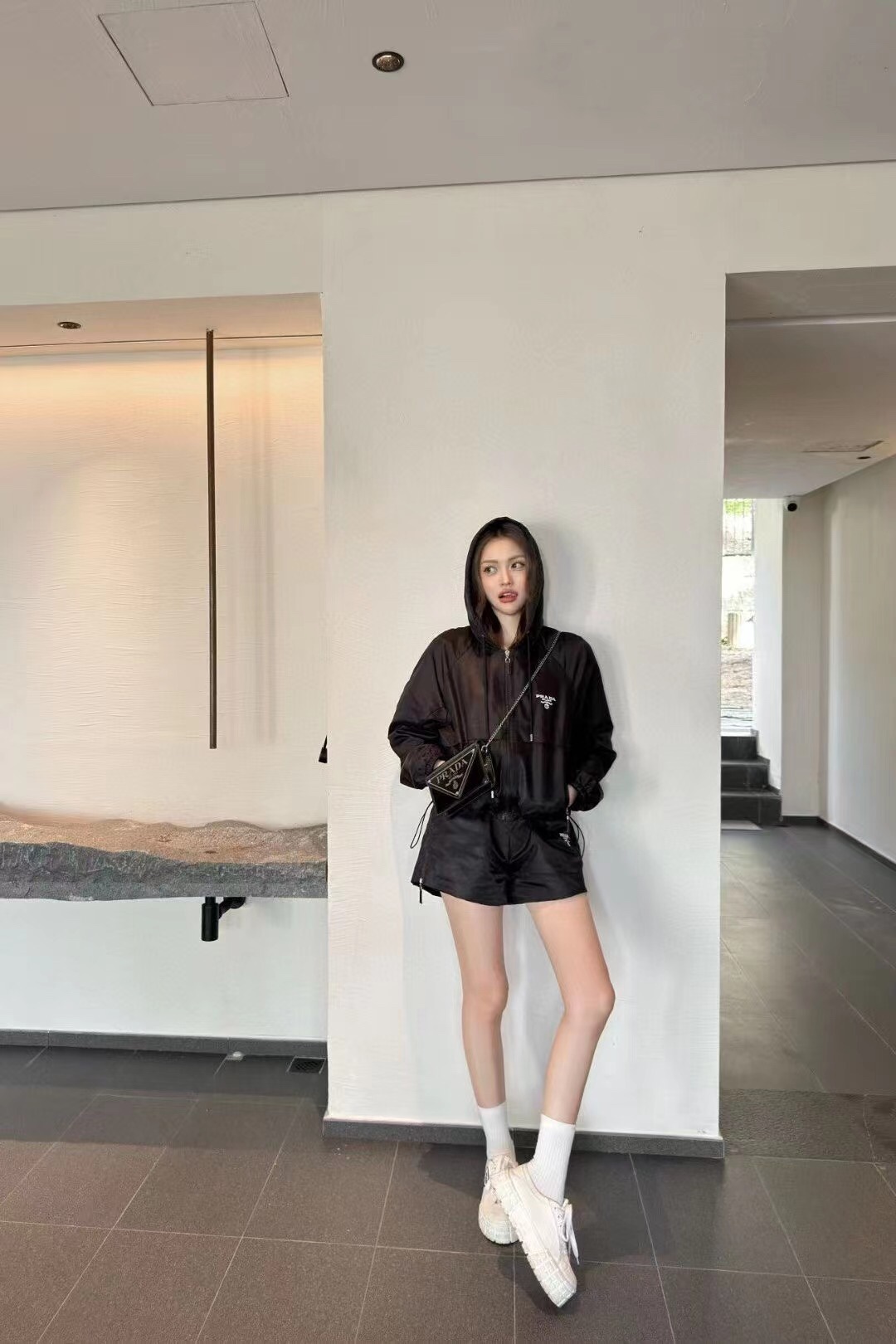 這款衣服是AAAAA 1:1 質量(非常棒). 使用了和原版一模一樣的材料. 商標部分也保持了和普拉達/Prada一樣. 圖片拍攝是實物衣服拍攝, 您所收到的實物保證和我們圖片一模一樣.
