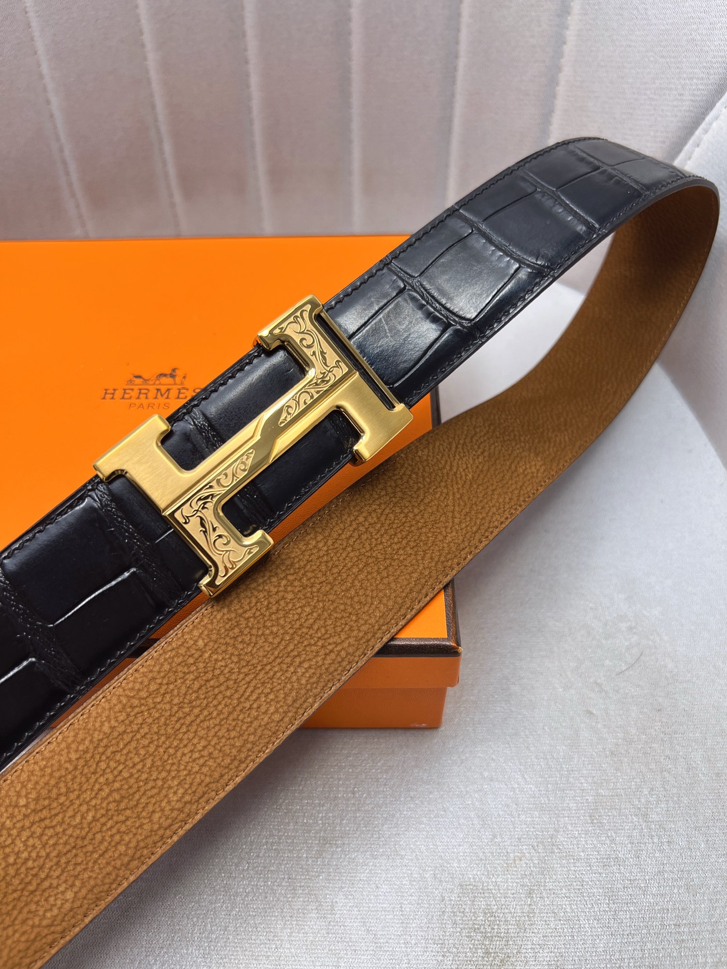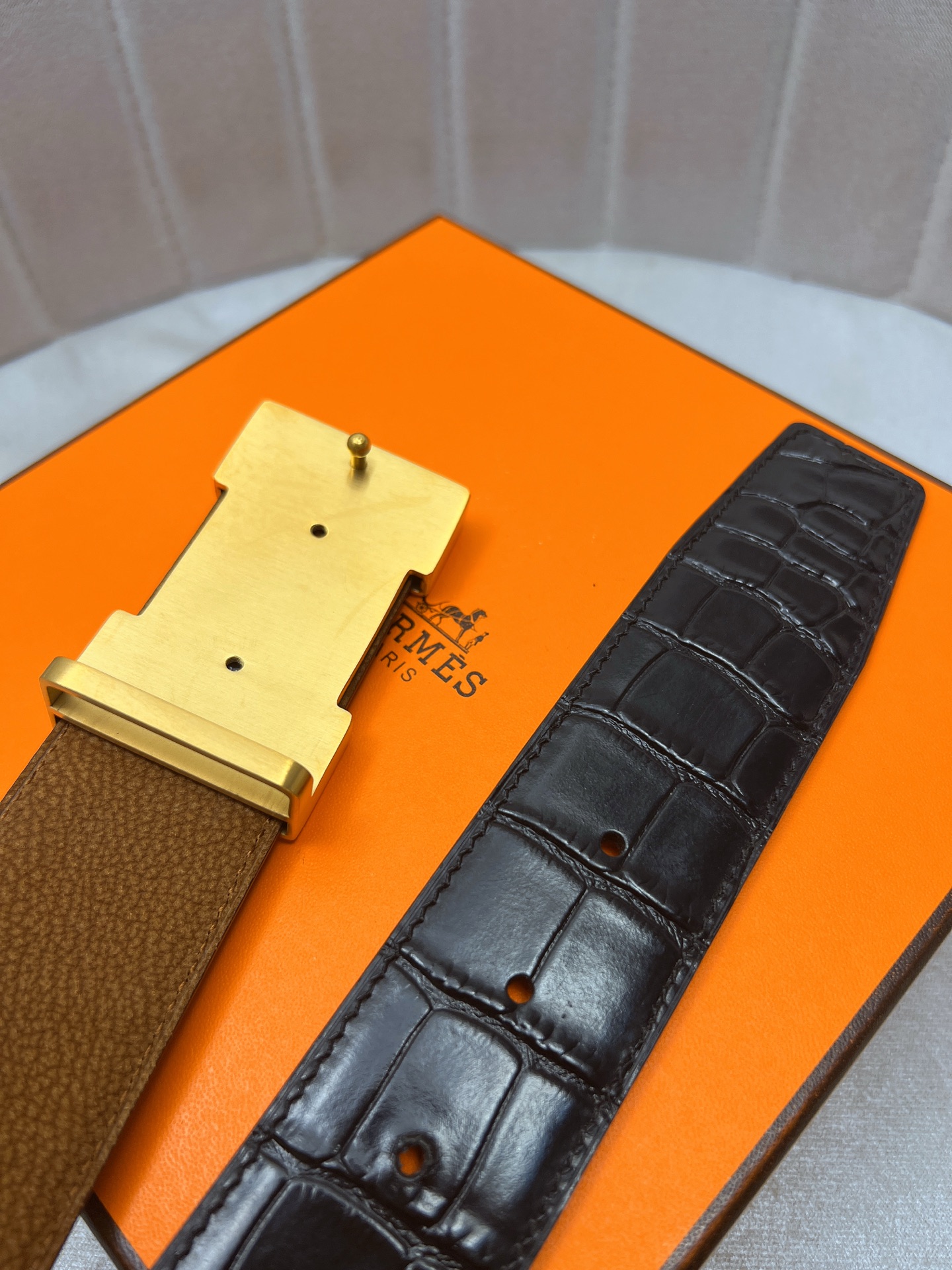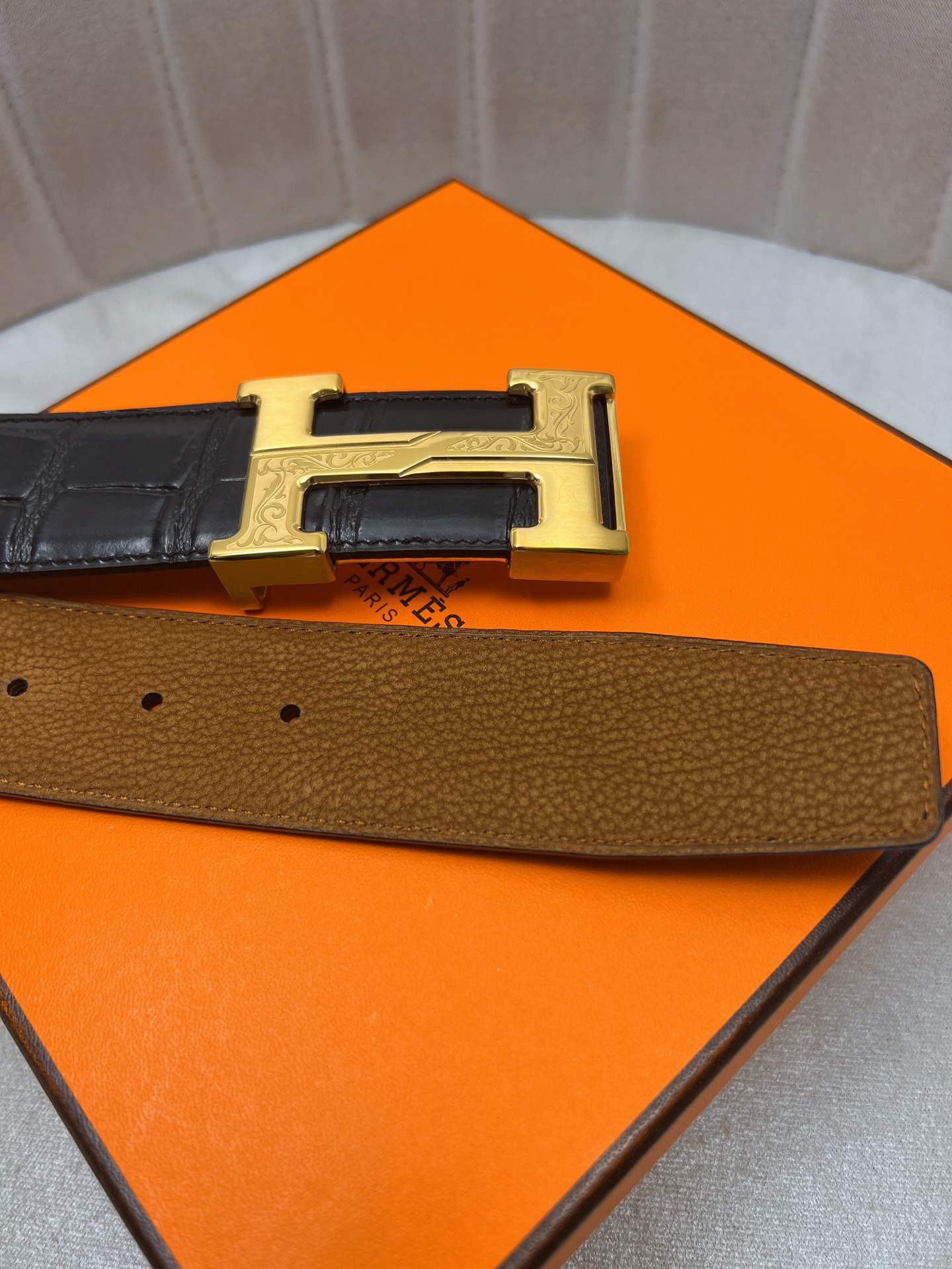 這款皮帶是AAAAA 1:1 質量(非常棒). 使用了和原版一模一樣的材料. 商標部分也保持了和愛馬仕/Hermes一樣. 圖片拍攝是實物皮帶拍攝, 您所收到的實物保證和我們圖片一模一樣.