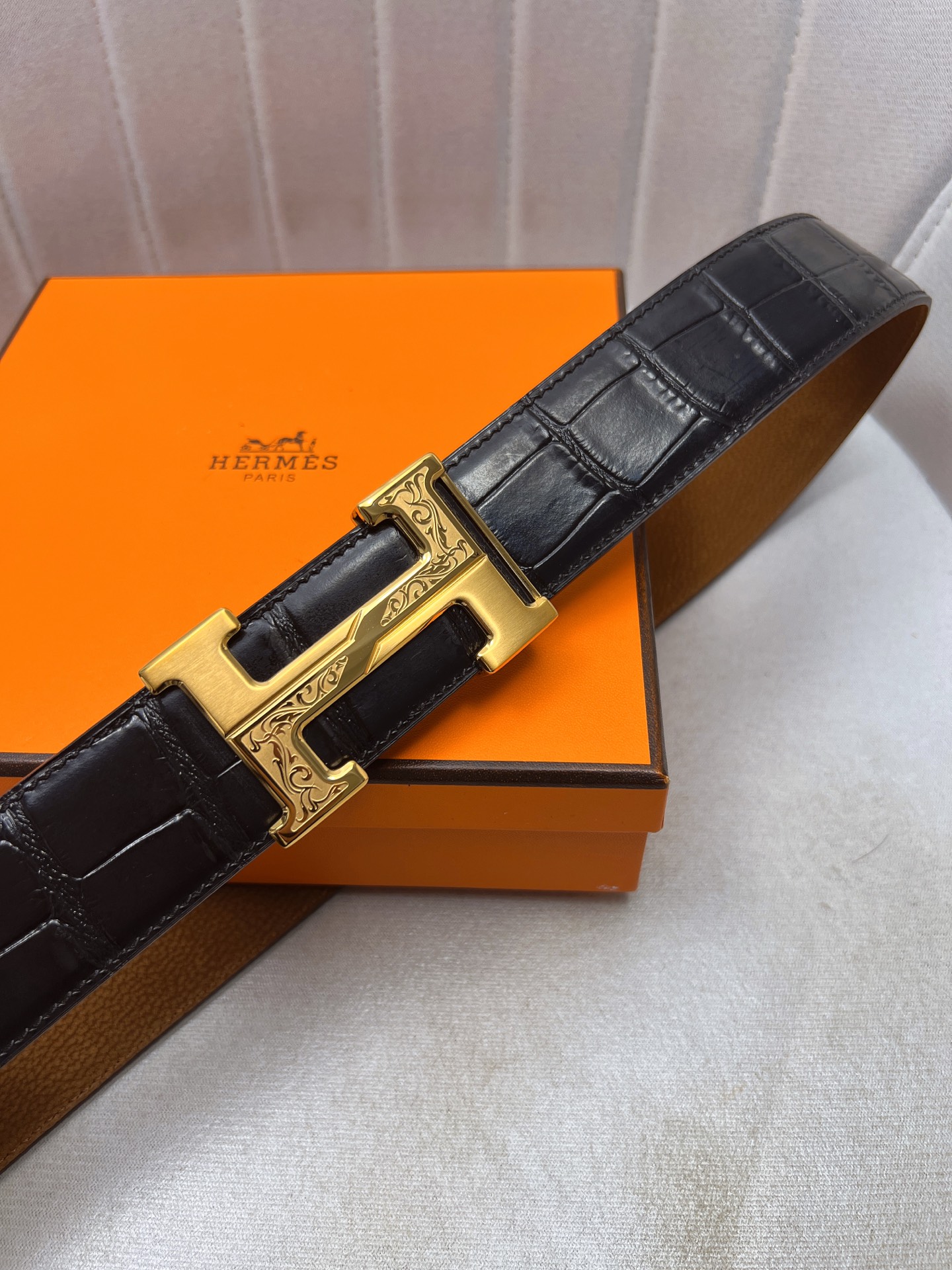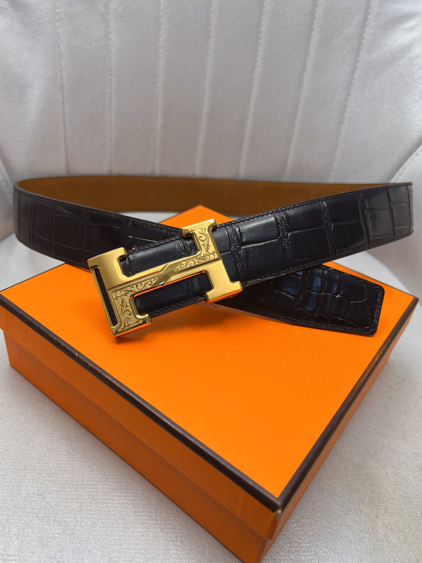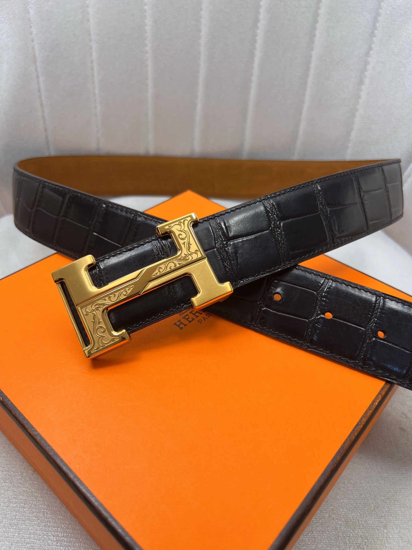 這款皮帶是AAAAA 1:1 質量(非常棒). 使用了和原版一模一樣的材料. 商標部分也保持了和愛馬仕/Hermes一樣. 圖片拍攝是實物皮帶拍攝, 您所收到的實物保證和我們圖片一模一樣.