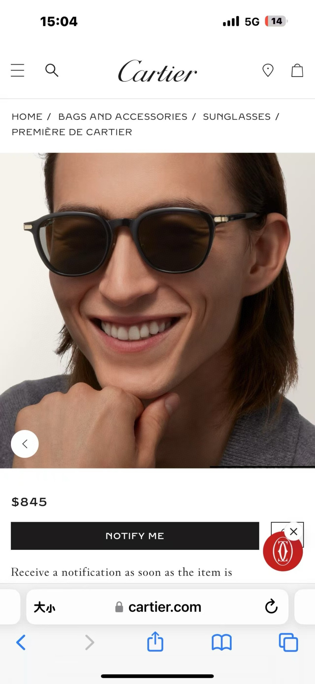 NO:3773390. 這款太陽眼鏡是來自於卡地亞/Cartier的設計師.