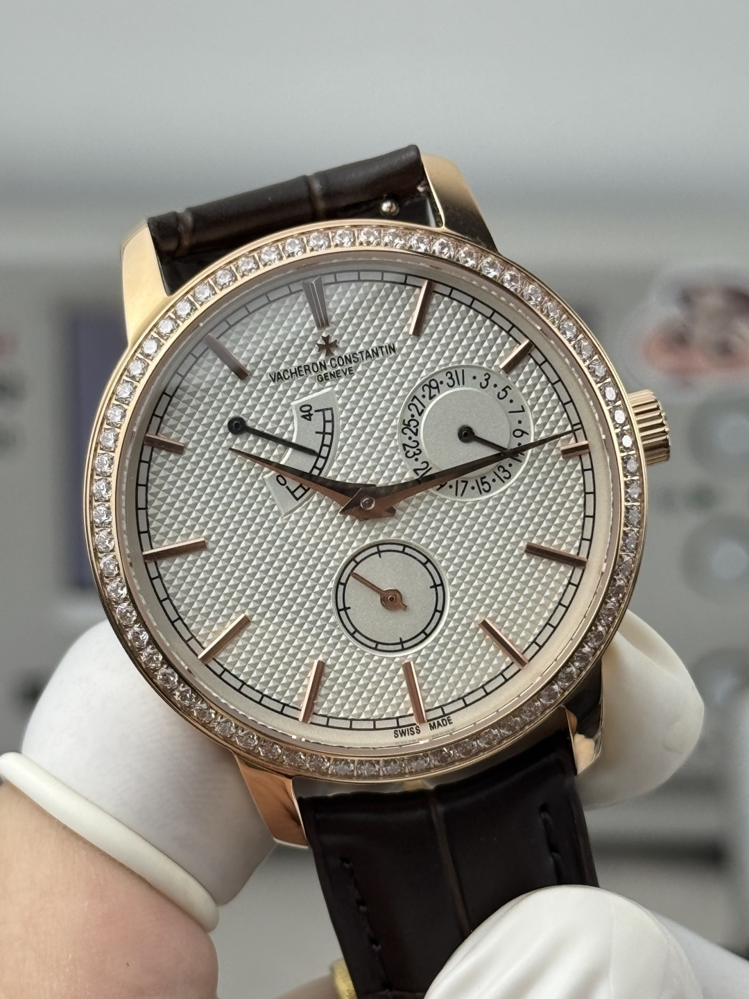 這款手錶是AAAAA 1:1 質量(非常棒). 使用了和原版一模一樣的材料. 商標部分也保持了和江詩丹頓/Vacheron Constantin一樣. 圖片拍攝是實物手錶拍攝, 您所收到的實物保證和我們圖片一模一樣.