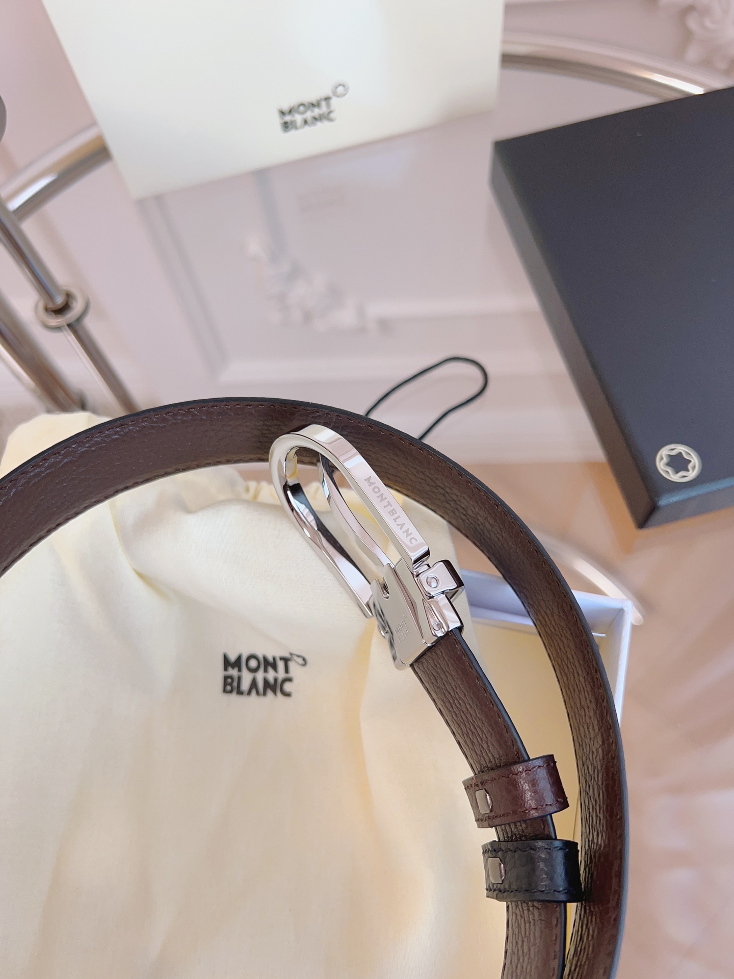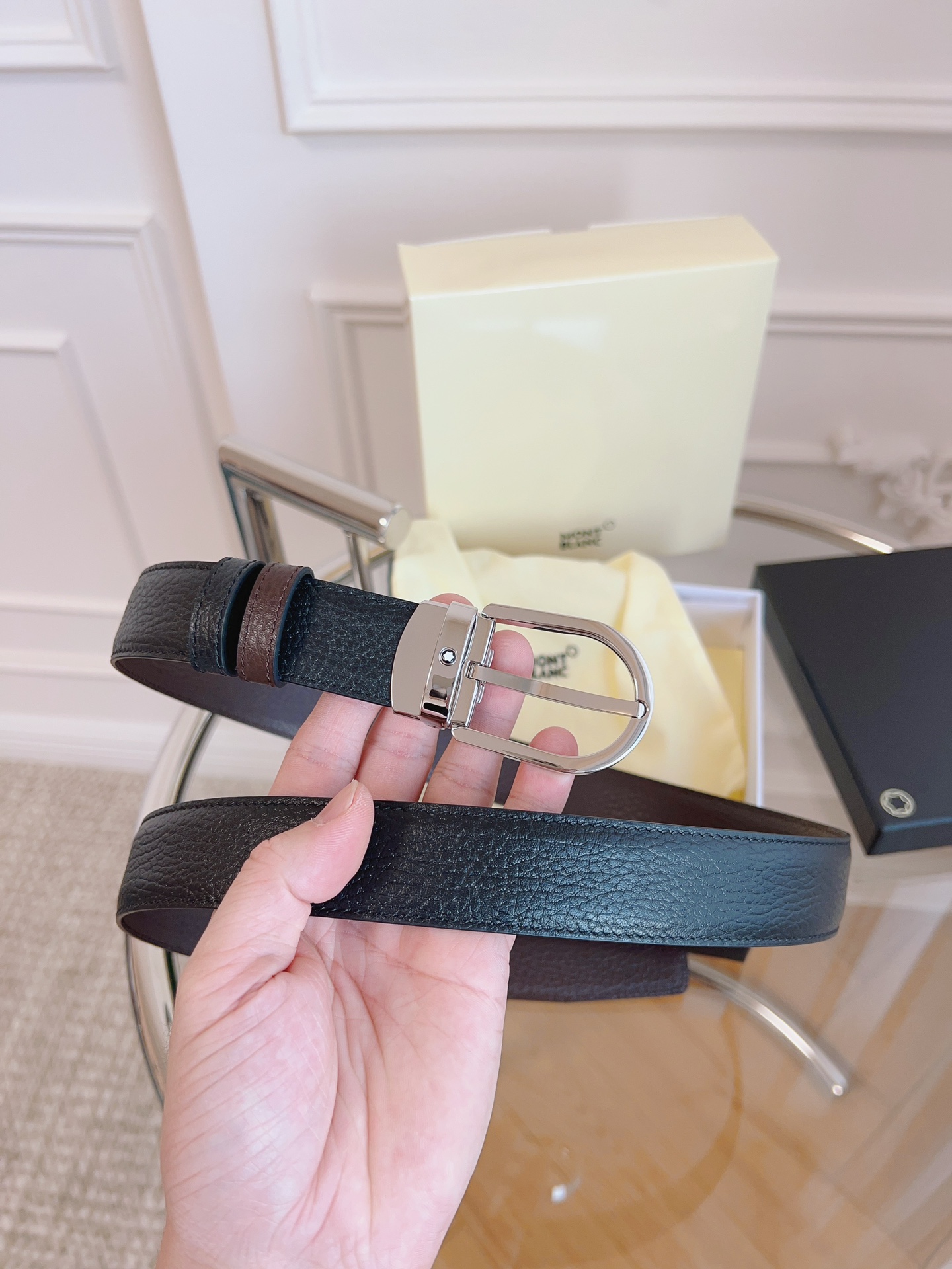 這款皮帶是AAAAA 1:1 質量(非常棒). 使用了和原版一模一樣的材料. 商標部分也保持了和萬寶龍/Montblanc一樣. 圖片拍攝是實物皮帶拍攝, 您所收到的實物保證和我們圖片一模一樣.