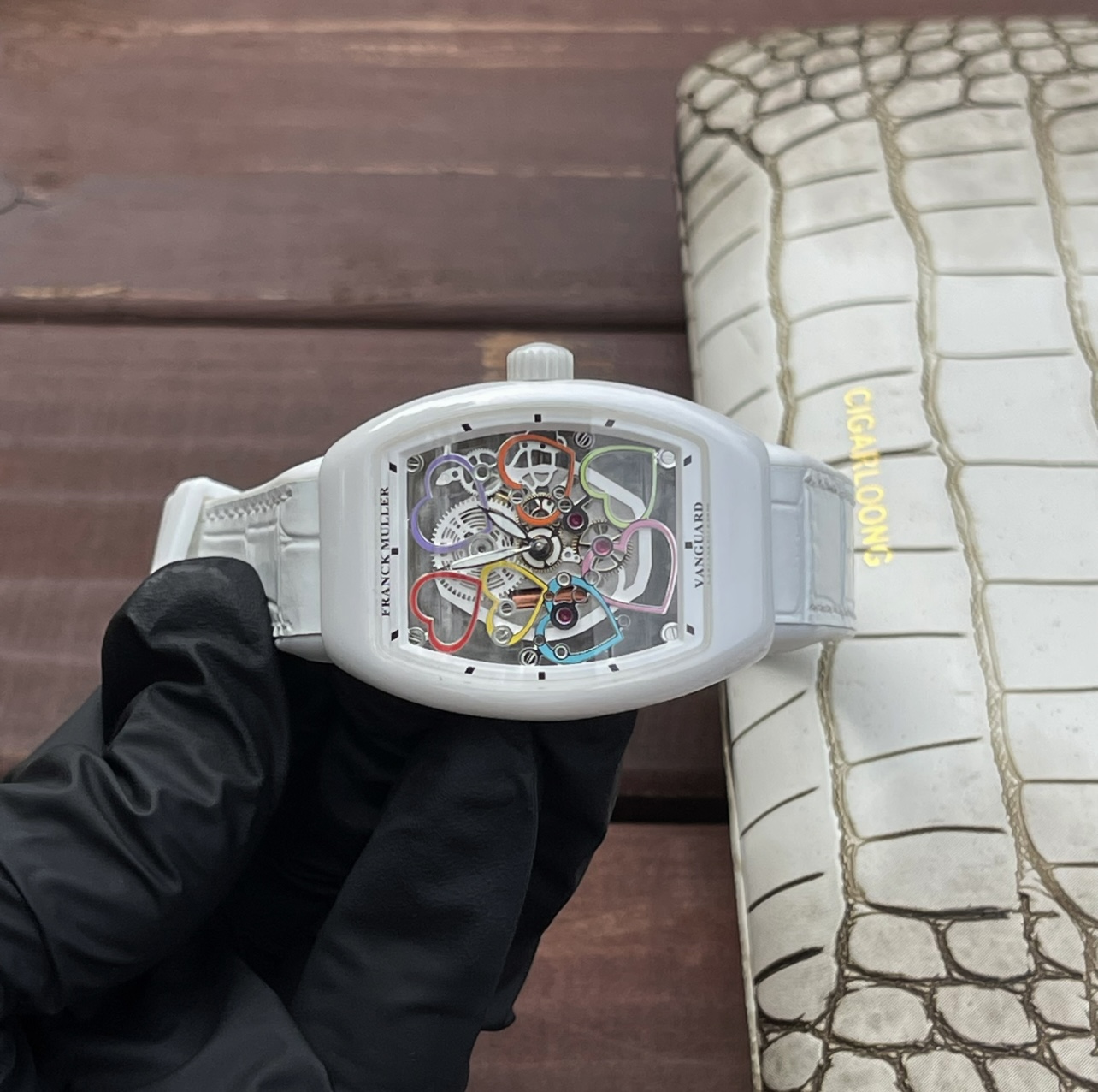 這款手錶是AAAAA 1:1 質量(非常棒). 使用了和原版一模一樣的材料. 商標部分也保持了和Franck Mulle一樣. 圖片拍攝是實物手錶拍攝, 您所收到的實物保證和我們圖片一模一樣.