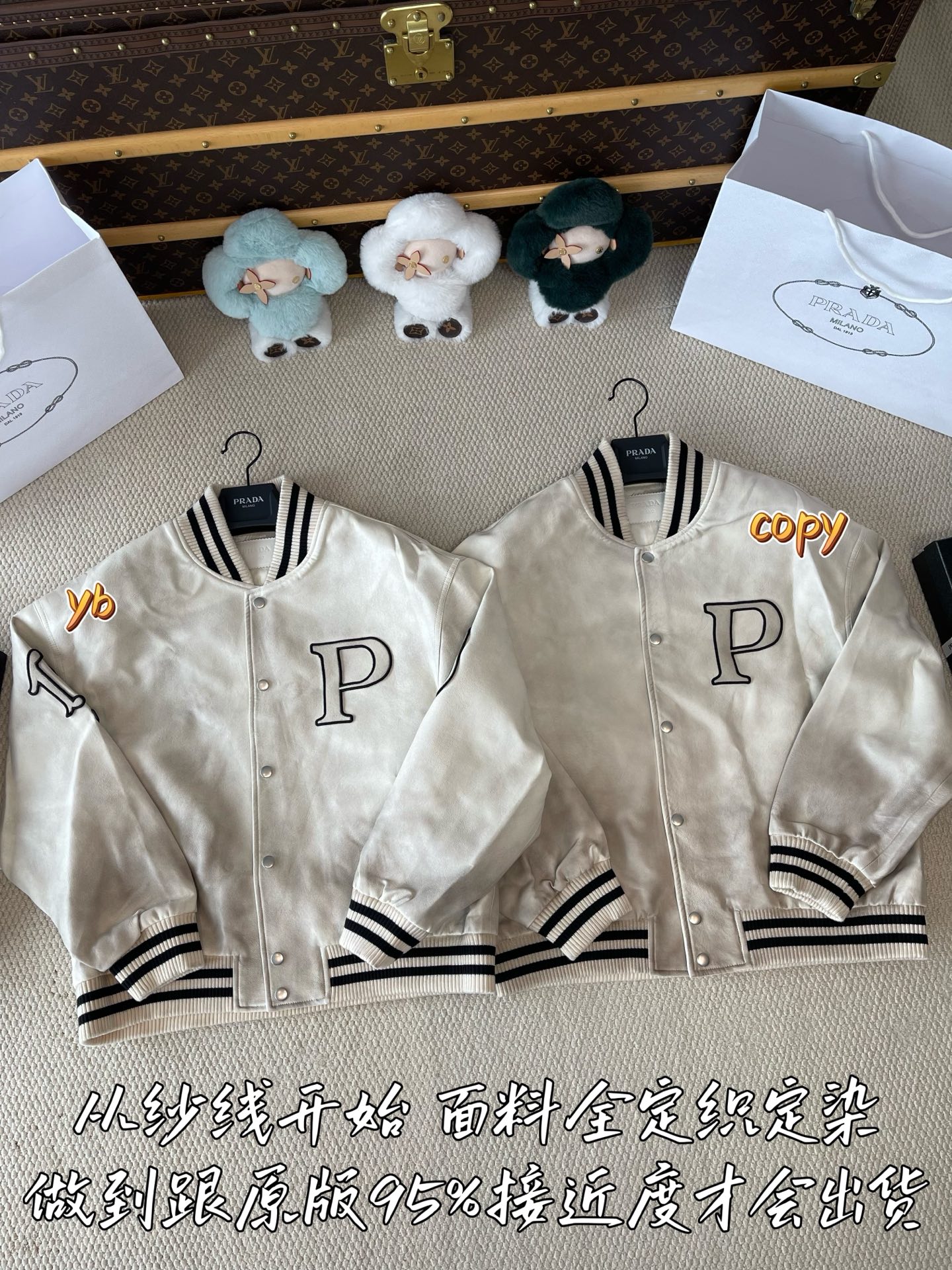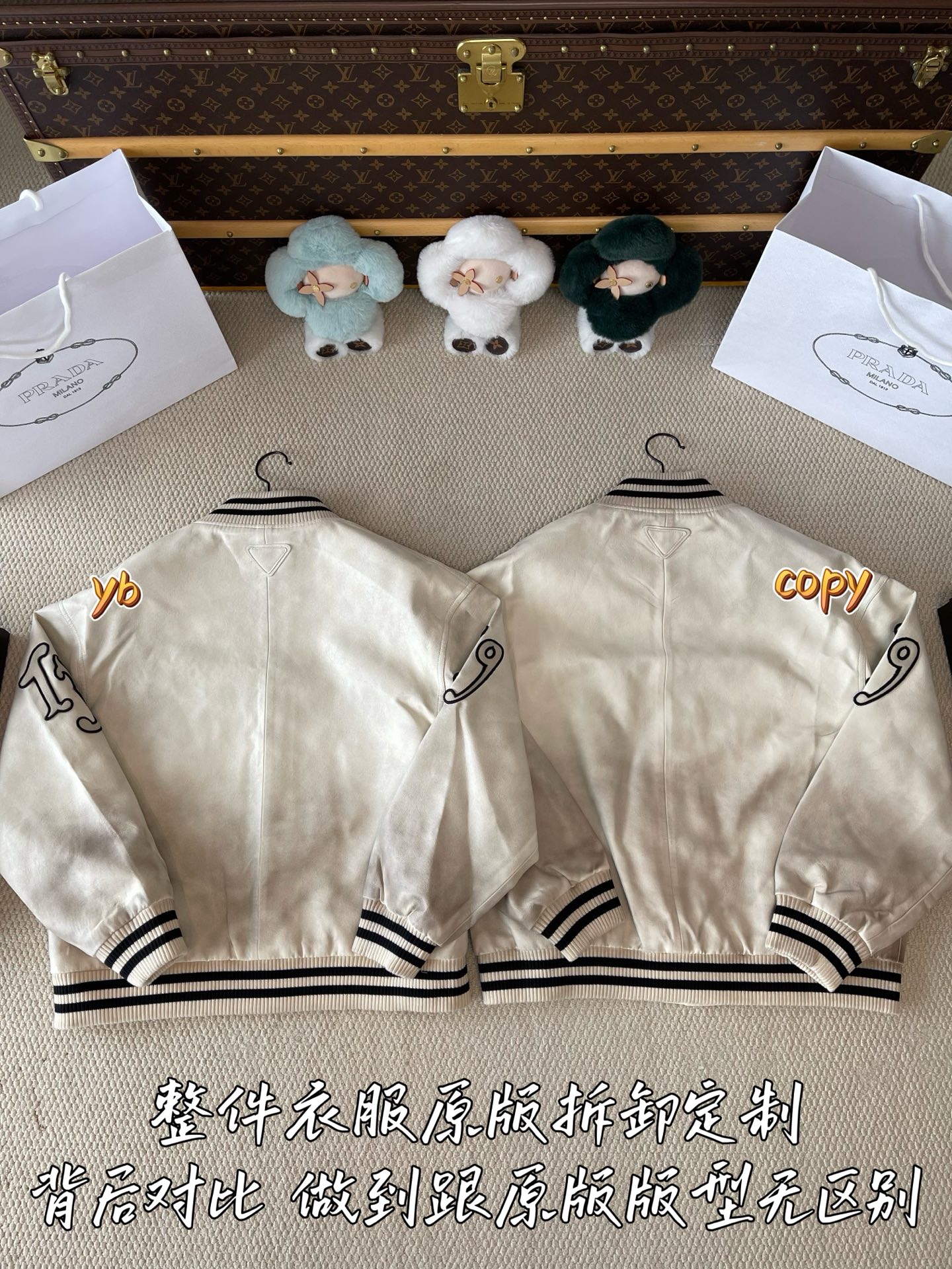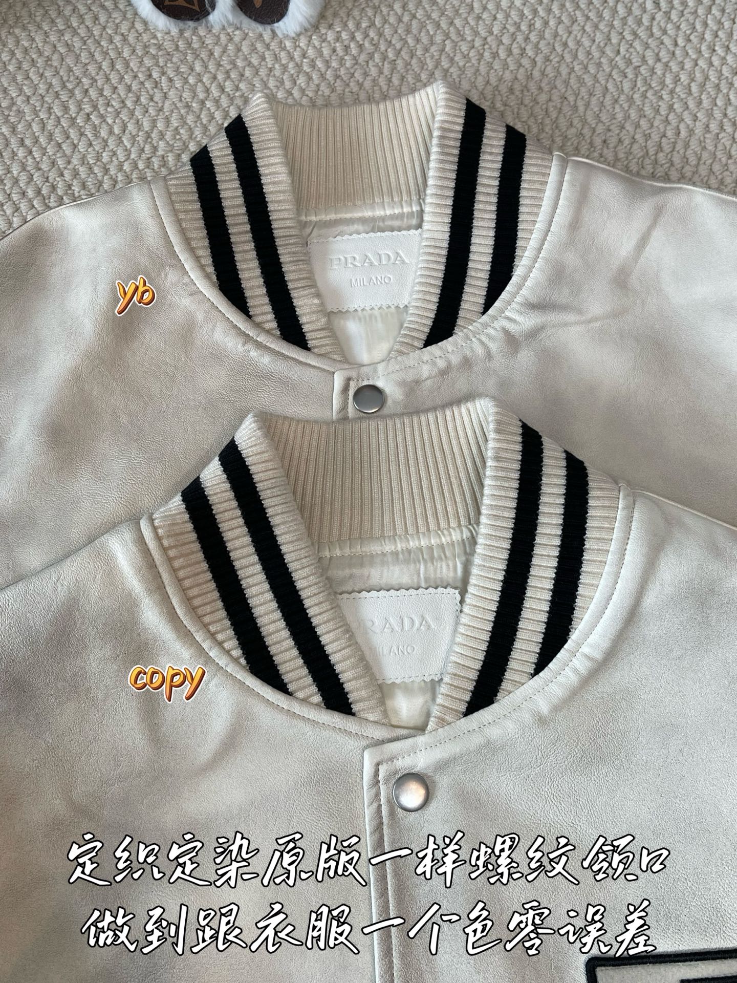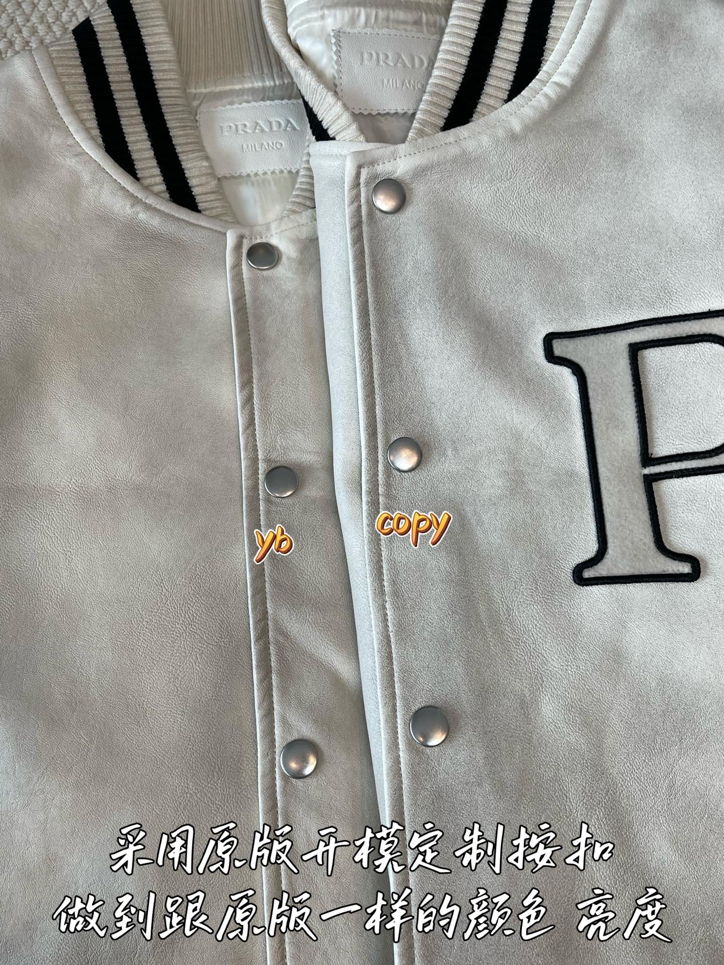 這款衣服是AAAAA 1:1 質量(非常棒). 使用了和原版一模一樣的材料. 商標部分也保持了和普拉達/Prada一樣. 圖片拍攝是實物衣服拍攝, 您所收到的實物保證和我們圖片一模一樣.
