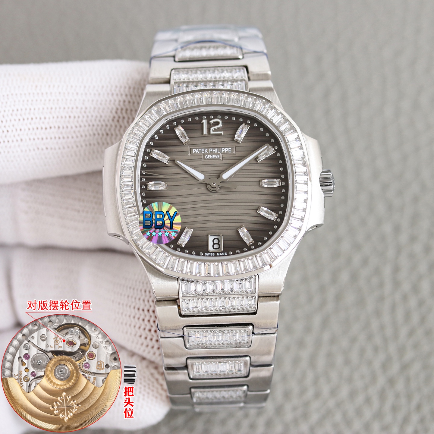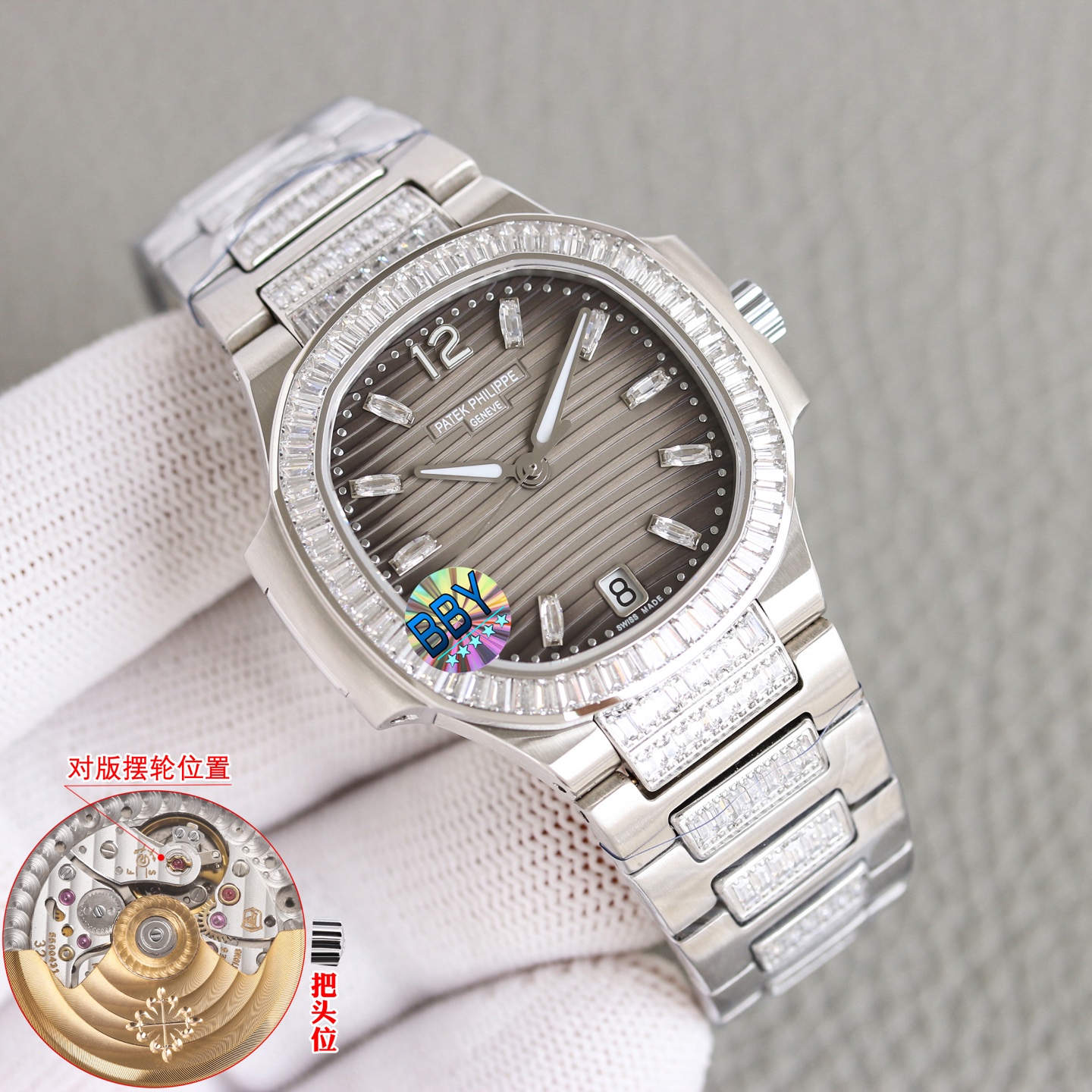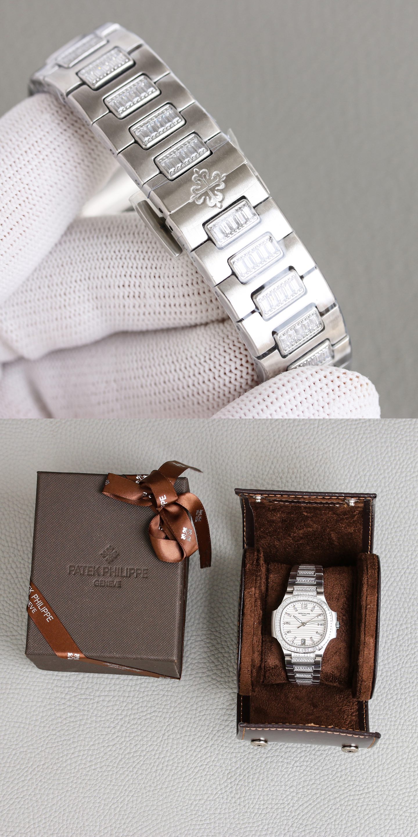 這款手錶是AAAAA 1:1 質量(非常棒). 使用了和原版一模一樣的材料. 商標部分也保持了和百達翡麗/Patek Philippe一樣. 圖片拍攝是實物手錶拍攝, 您所收到的實物保證和我們圖片一模一樣.