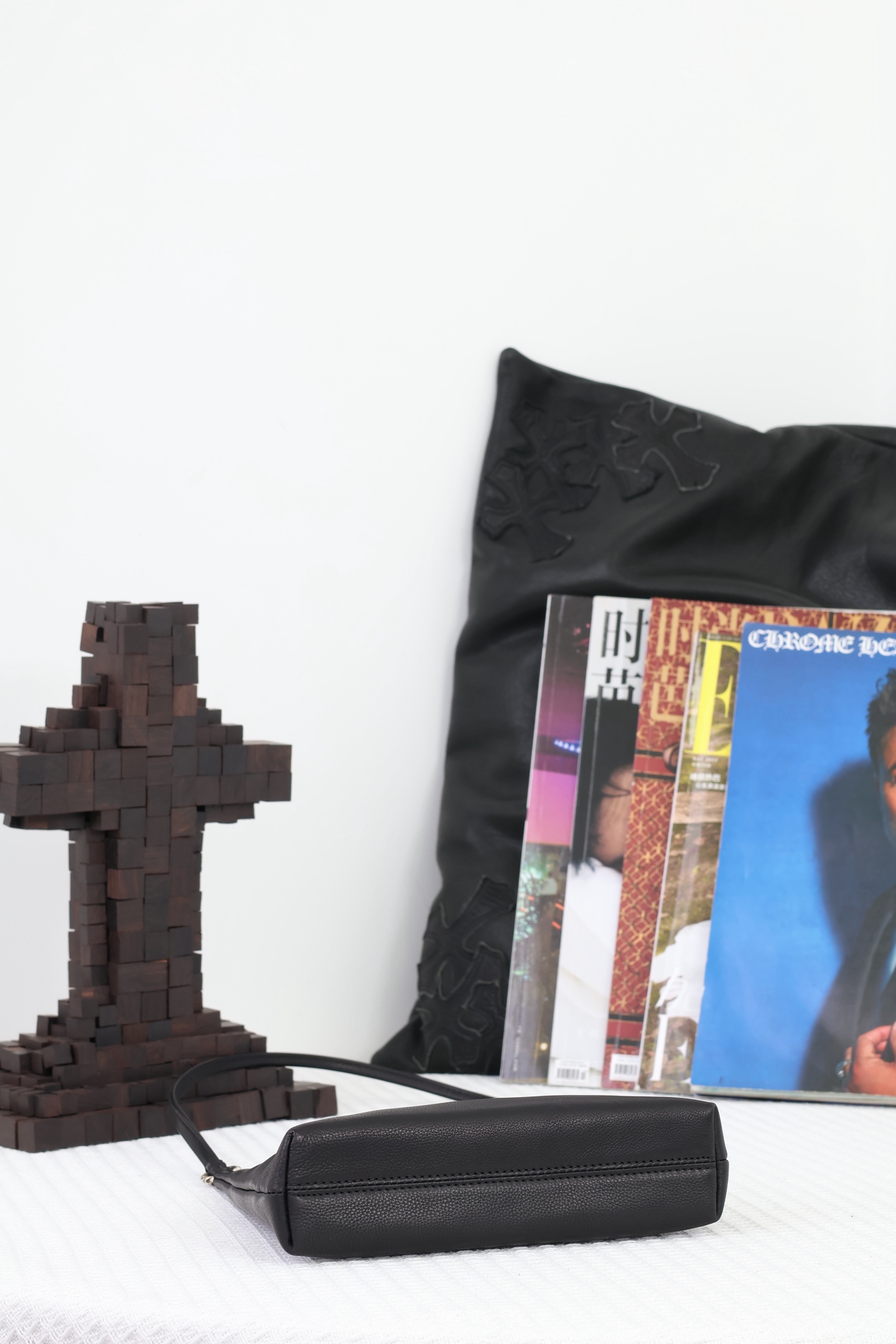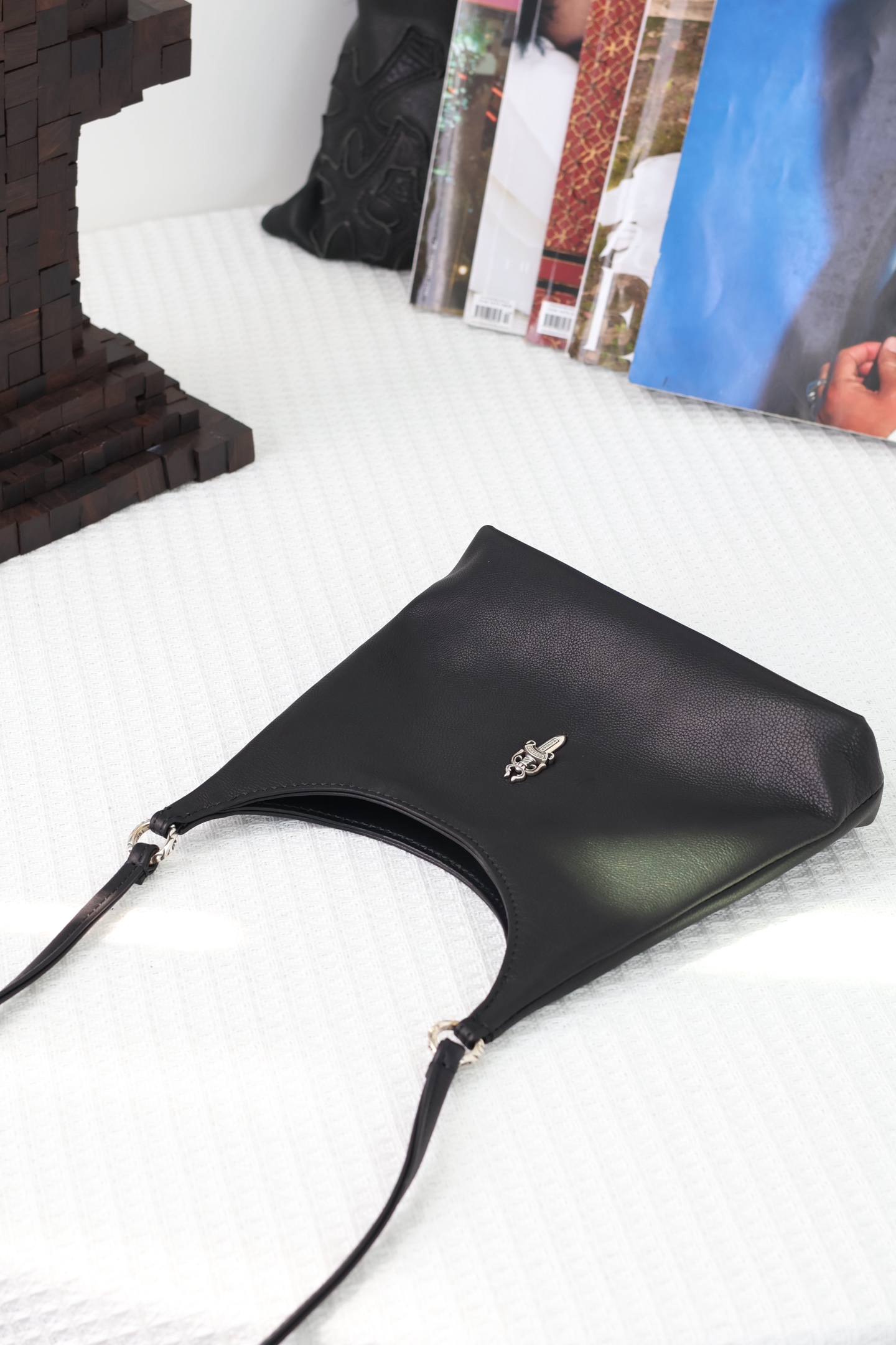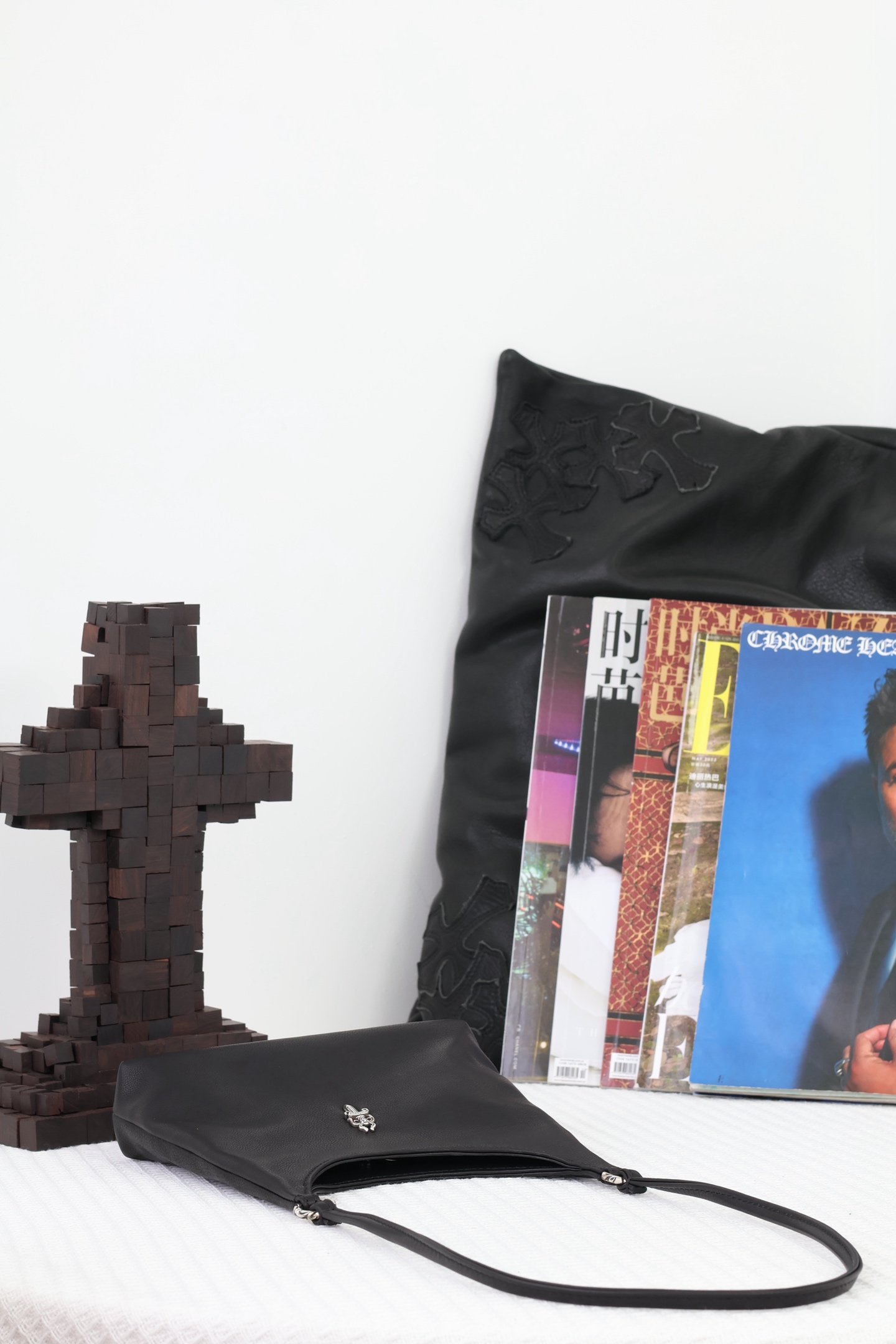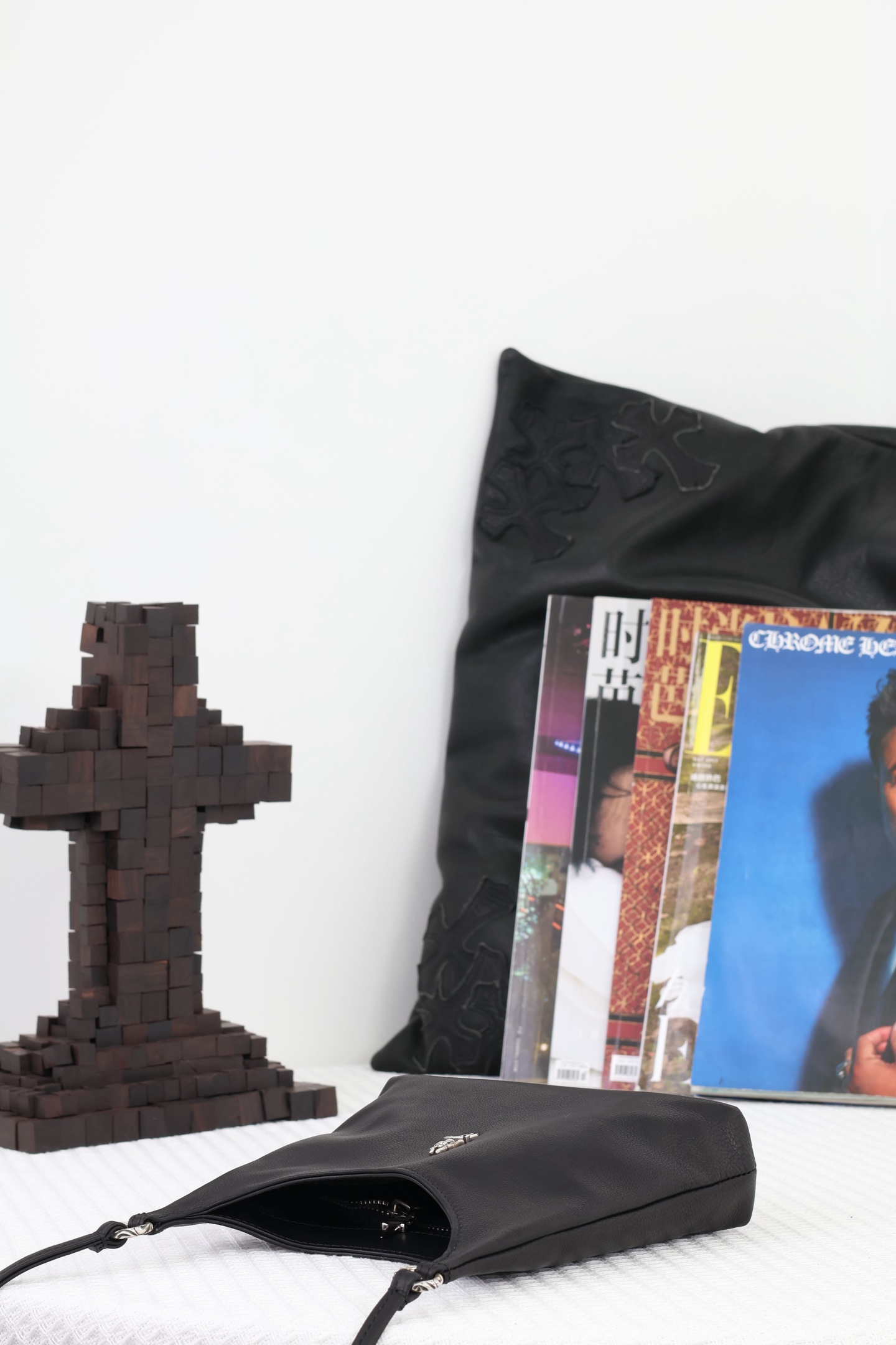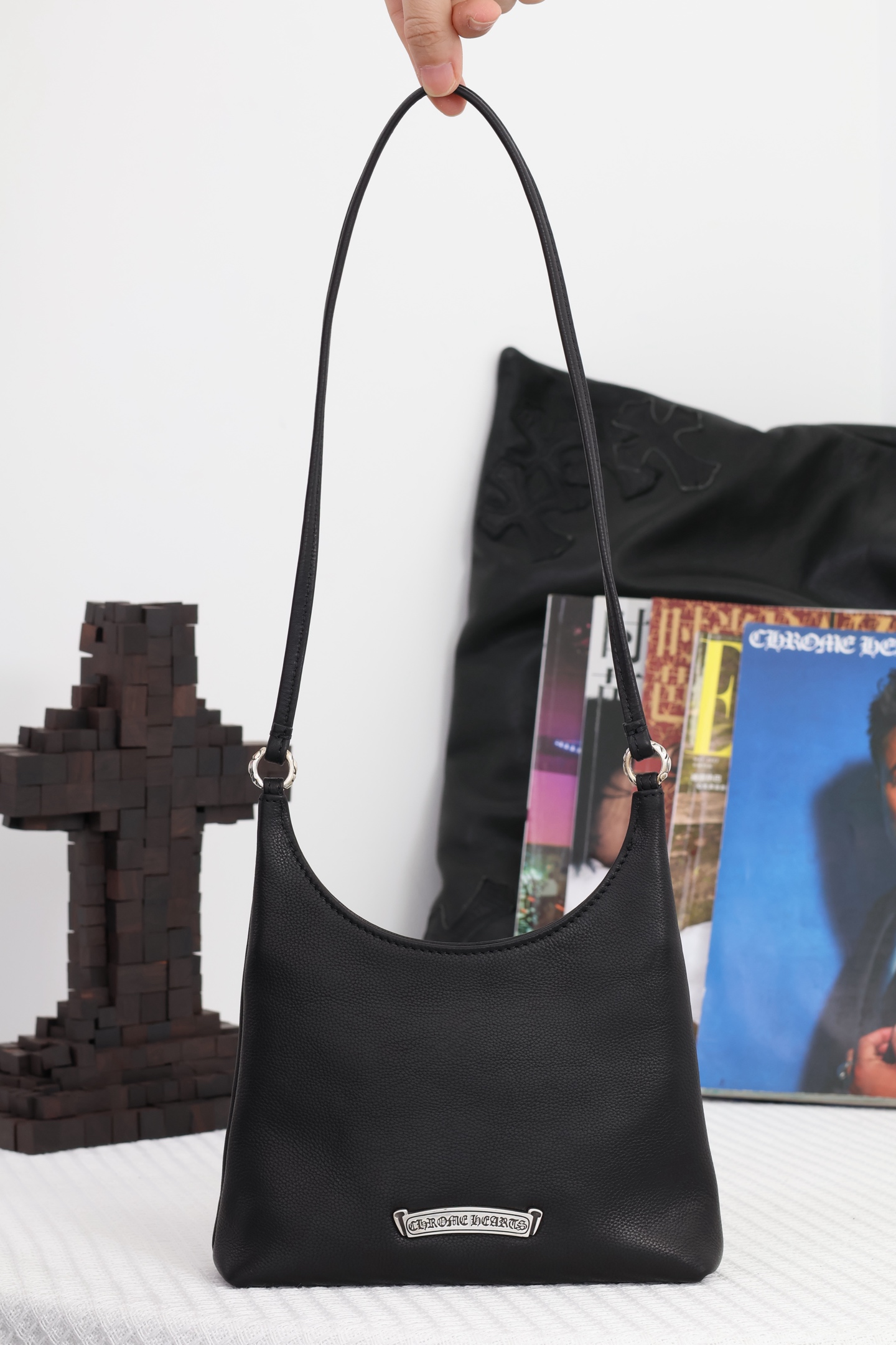 這款包包是AAAAA 1:1 質量(非常棒). 使用了和原版一模一樣的材料. 商標部分也保持了和鉻心/Chrome Hearts一樣. 圖片拍攝是實物包包拍攝, 您所收到的實物保證和我們圖片一模一樣.