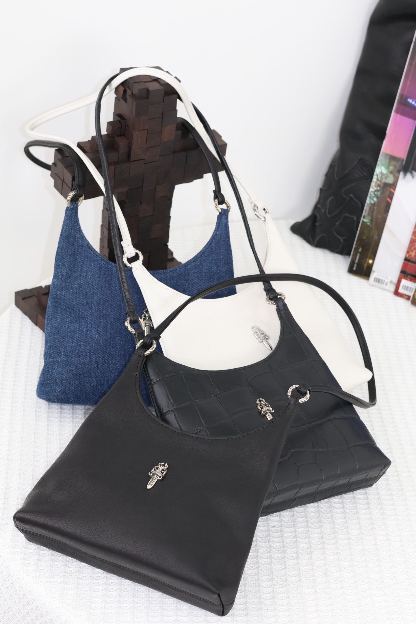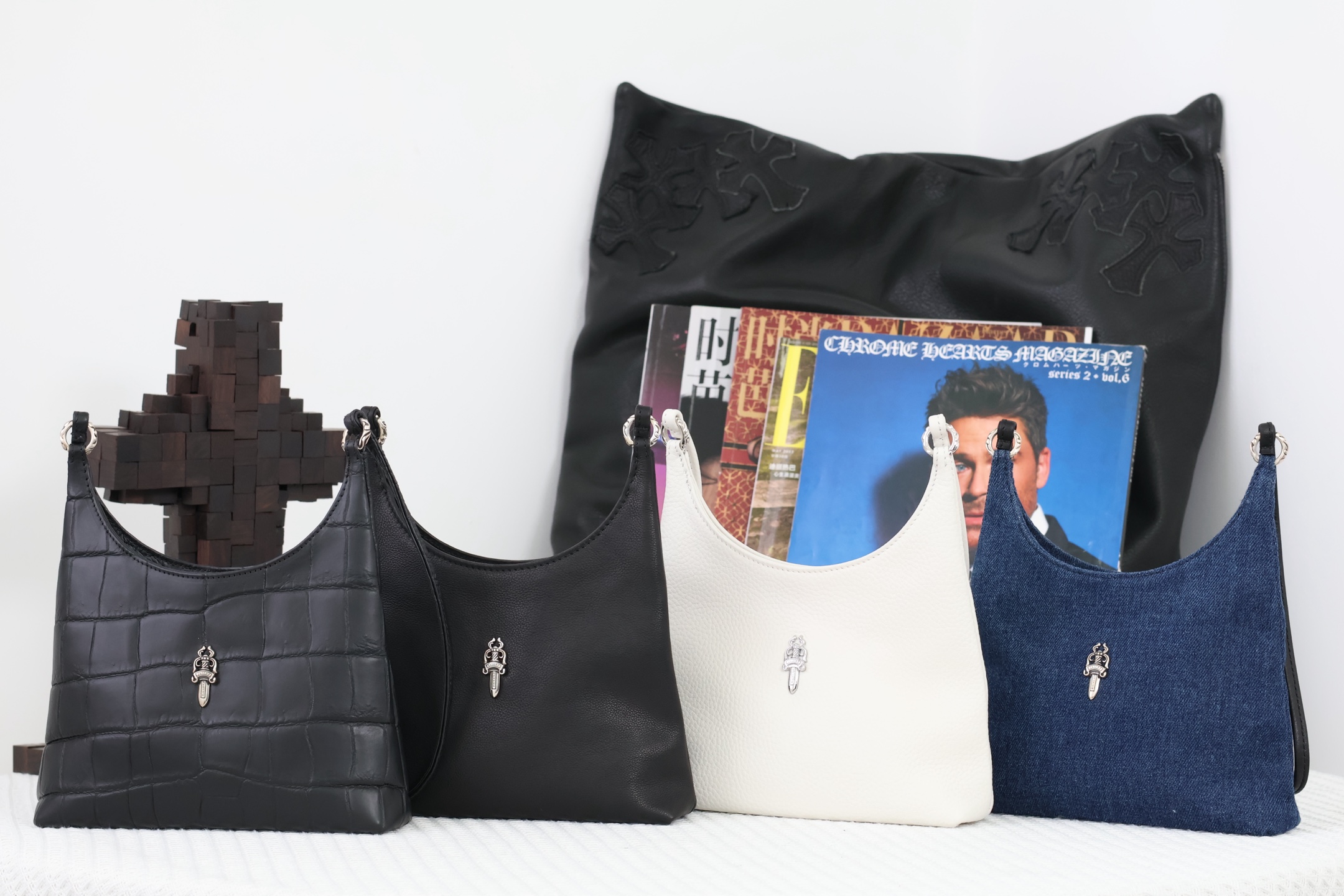 這款包包是AAAAA 1:1 質量(非常棒). 使用了和原版一模一樣的材料. 商標部分也保持了和鉻心/Chrome Hearts一樣. 圖片拍攝是實物包包拍攝, 您所收到的實物保證和我們圖片一模一樣.