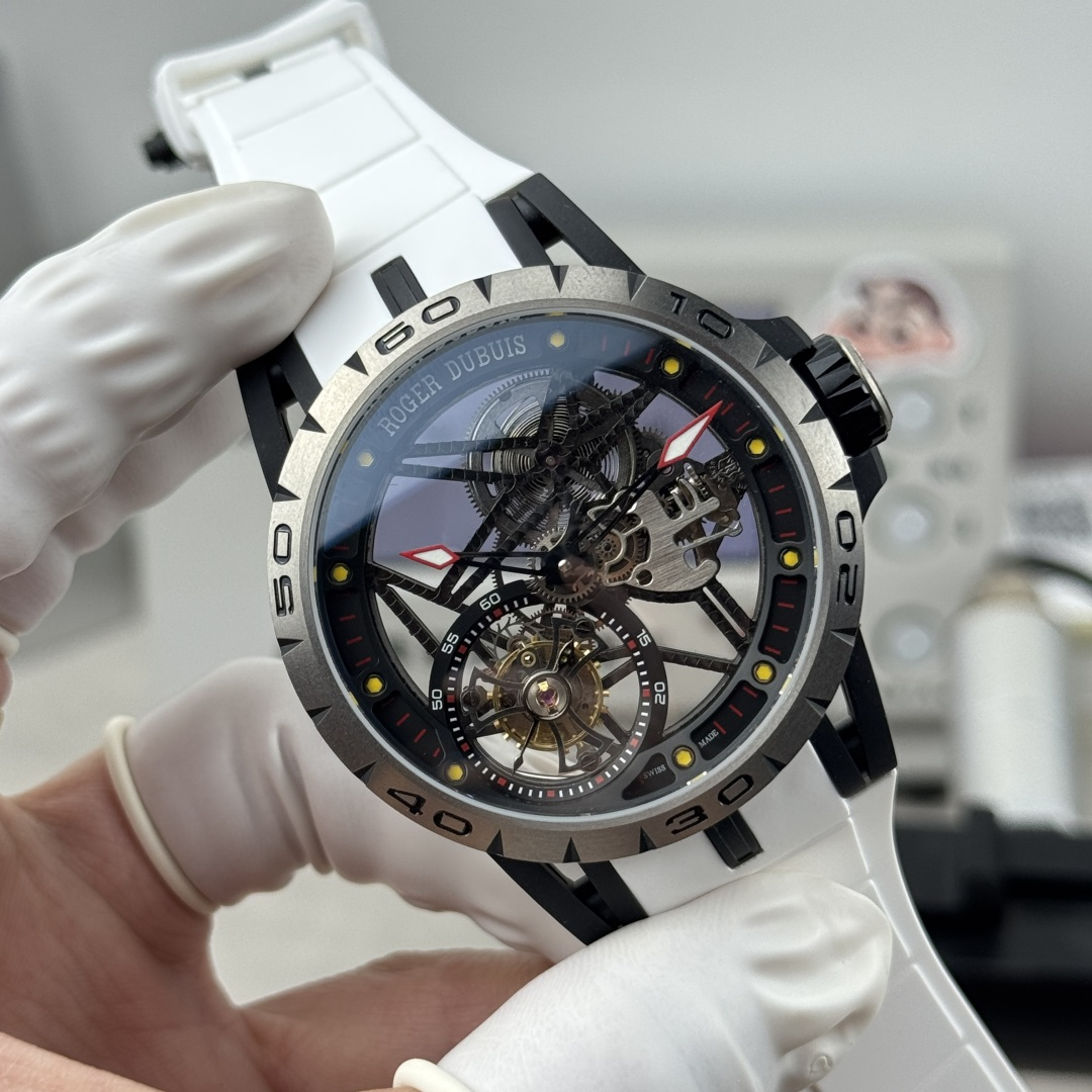 這款手錶是AAAAA 1:1 質量(非常棒). 使用了和原版一模一樣的材料. 商標部分也保持了和Roger Dubuis一樣. 圖片拍攝是實物手錶拍攝, 您所收到的實物保證和我們圖片一模一樣.
