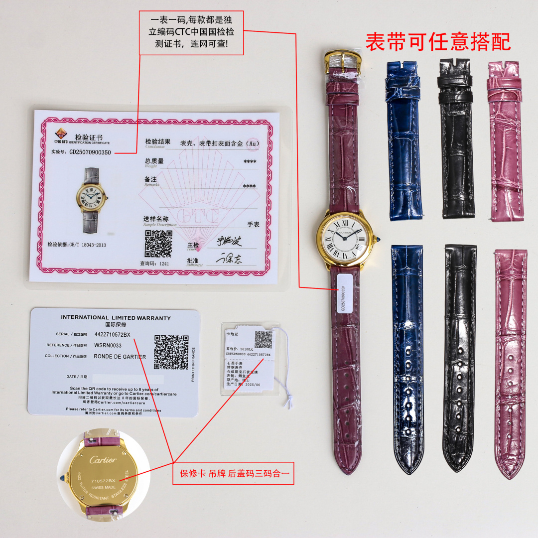 這款手錶是AAAAA 1:1 質量(非常棒). 使用了和原版一模一樣的材料. 商標部分也保持了和卡地亞/Cartier一樣. 圖片拍攝是實物手錶拍攝, 您所收到的實物保證和我們圖片一模一樣.