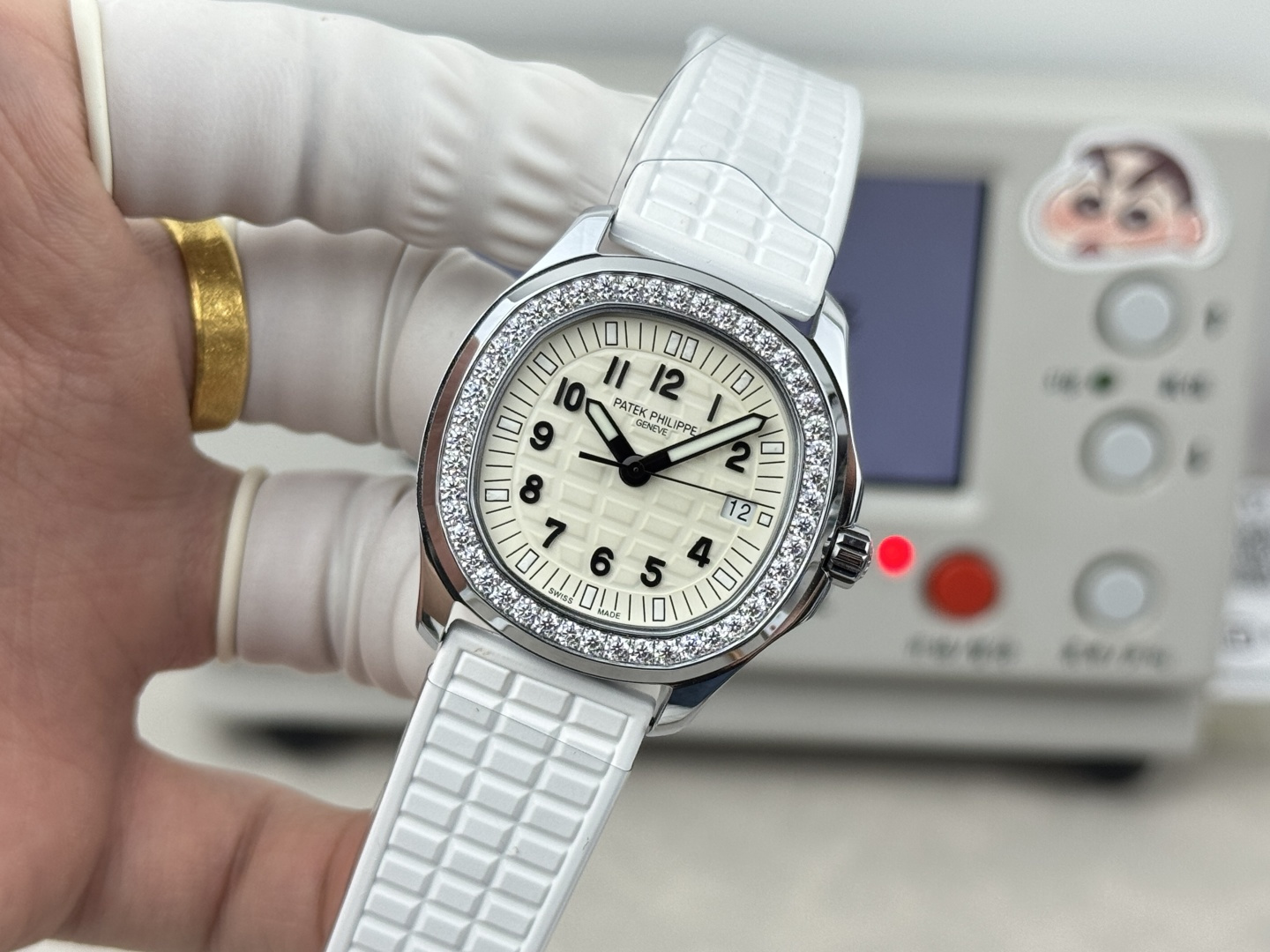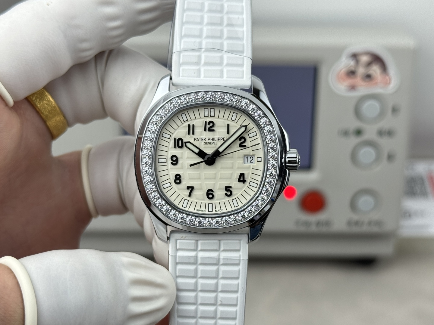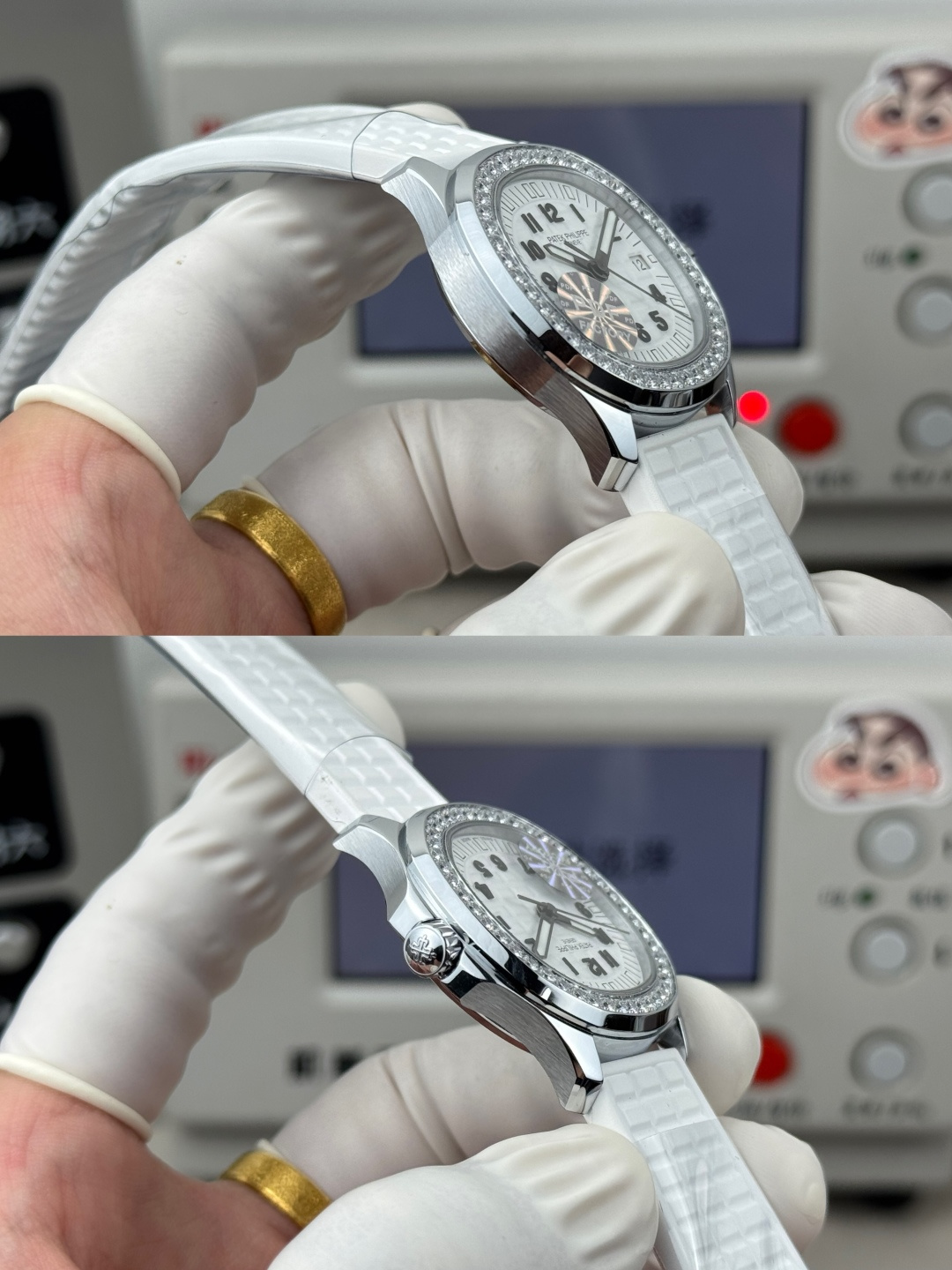 這款手錶是AAAAA 1:1 質量(非常棒). 使用了和原版一模一樣的材料. 商標部分也保持了和百達翡麗/Patek Philippe一樣. 圖片拍攝是實物手錶拍攝, 您所收到的實物保證和我們圖片一模一樣.