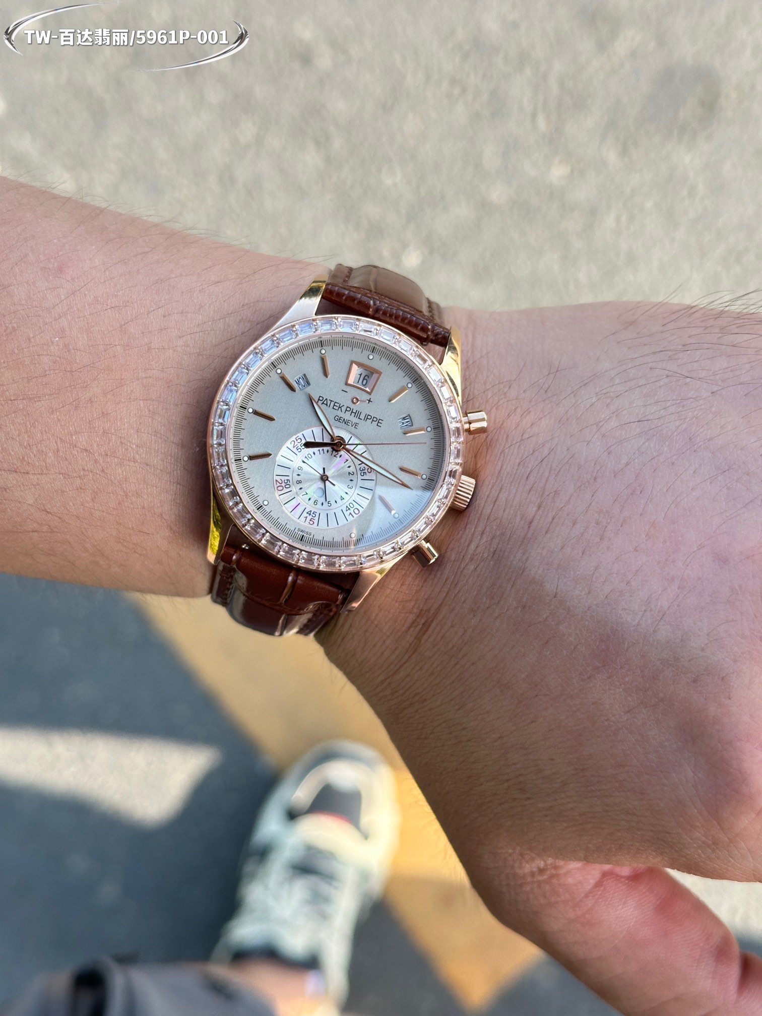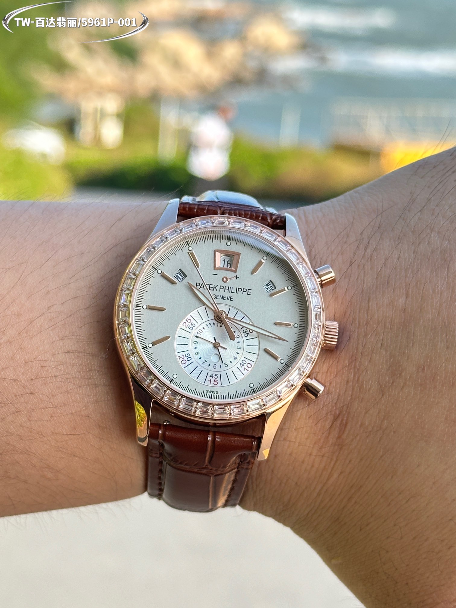 這款手錶是AAAAA 1:1 質量(非常棒). 使用了和原版一模一樣的材料. 商標部分也保持了和百達翡麗/Patek Philippe一樣. 圖片拍攝是實物手錶拍攝, 您所收到的實物保證和我們圖片一模一樣.