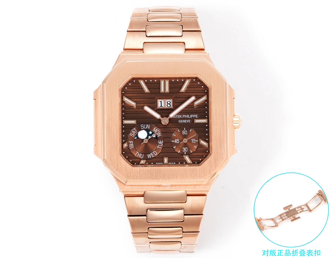 這款手錶是AAAAA 1:1 質量(非常棒). 使用了和原版一模一樣的材料. 商標部分也保持了和百達翡麗/Patek Philippe一樣. 圖片拍攝是實物手錶拍攝, 您所收到的實物保證和我們圖片一模一樣.