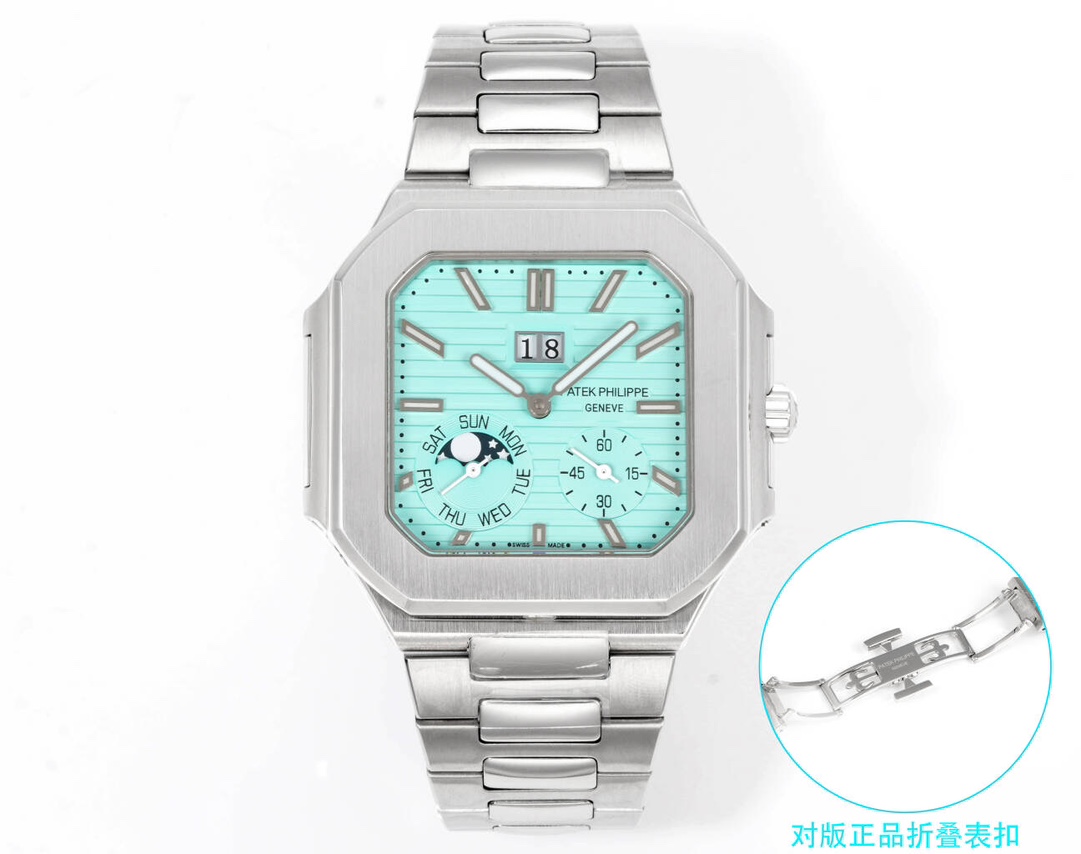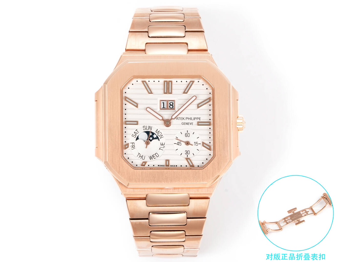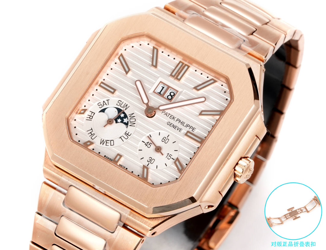 這款手錶是AAAAA 1:1 質量(非常棒). 使用了和原版一模一樣的材料. 商標部分也保持了和百達翡麗/Patek Philippe一樣. 圖片拍攝是實物手錶拍攝, 您所收到的實物保證和我們圖片一模一樣.