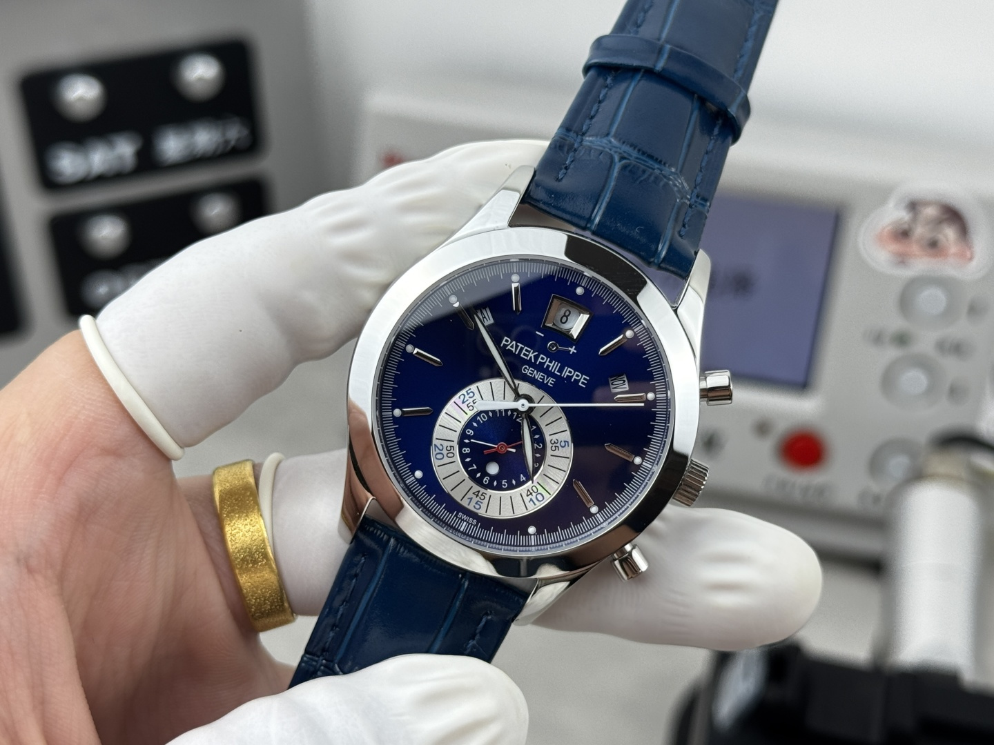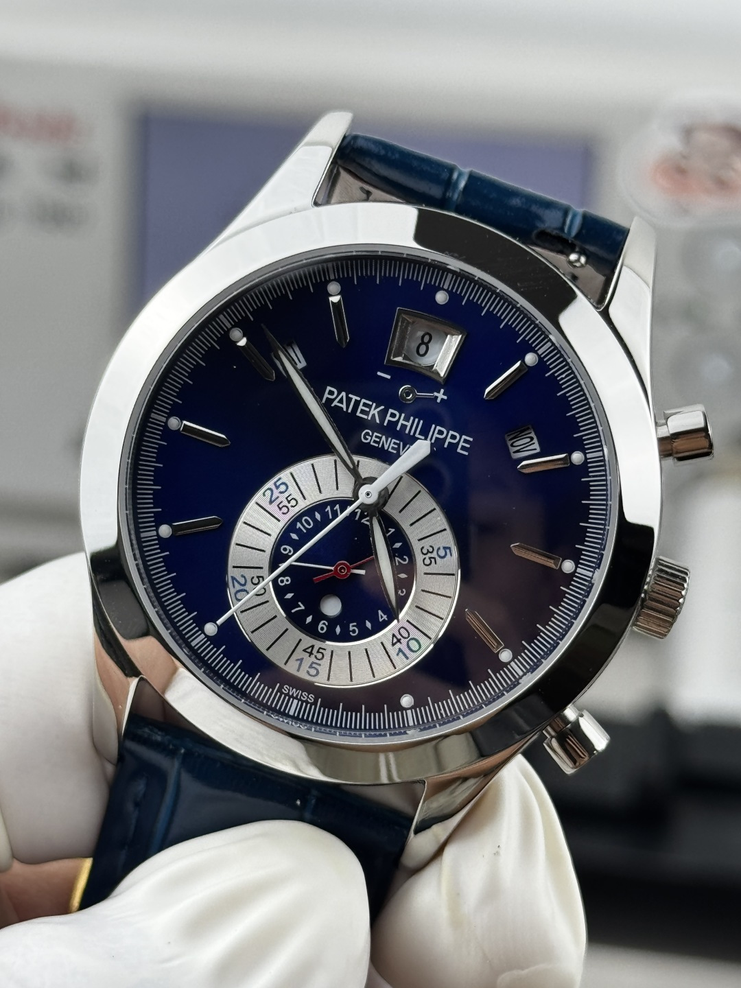 這款手錶是AAAAA 1:1 質量(非常棒). 使用了和原版一模一樣的材料. 商標部分也保持了和百達翡麗/Patek Philippe一樣. 圖片拍攝是實物手錶拍攝, 您所收到的實物保證和我們圖片一模一樣.