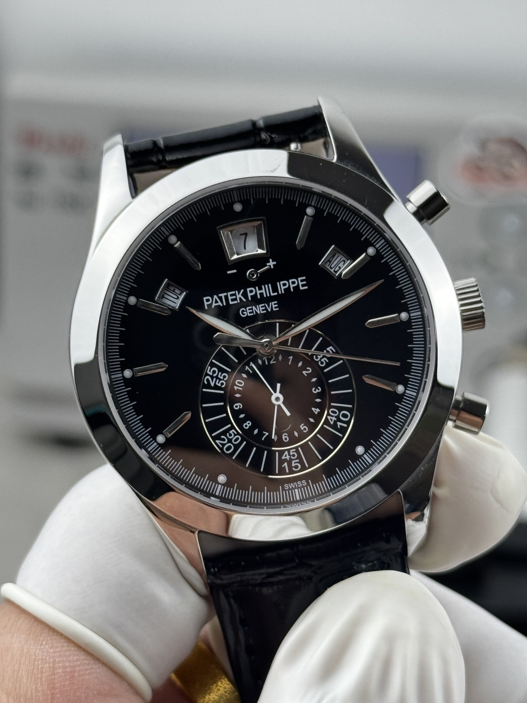 這款手錶是AAAAA 1:1 質量(非常棒). 使用了和原版一模一樣的材料. 商標部分也保持了和百達翡麗/Patek Philippe一樣. 圖片拍攝是實物手錶拍攝, 您所收到的實物保證和我們圖片一模一樣.