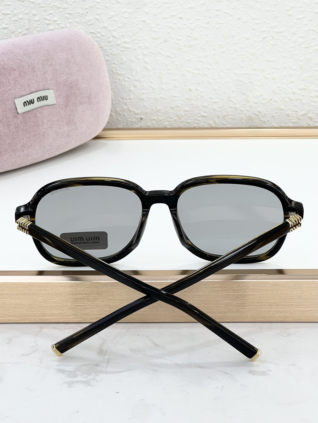這款太陽眼鏡是AAAAA 1:1 質量(非常棒). 使用了和原版一模一樣的材料. 商標部分也保持了和繆繆/Miu Miu一樣. 圖片拍攝是實物太陽眼鏡拍攝, 您所收到的實物保證和我們圖片一模一樣.