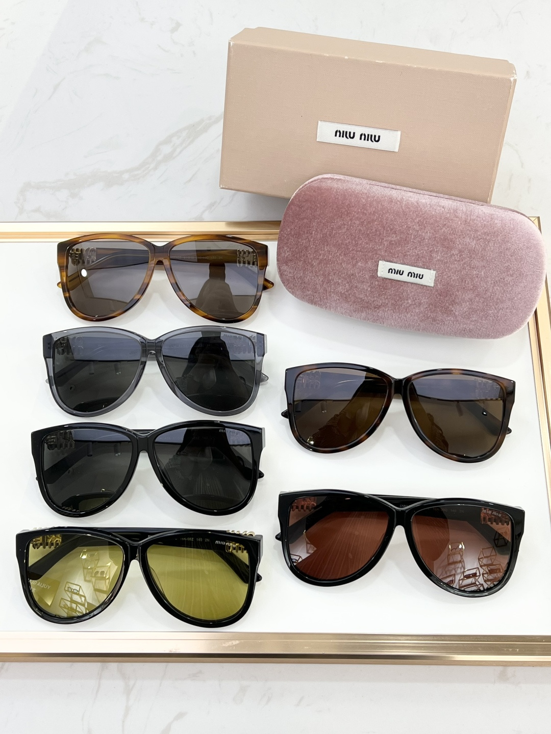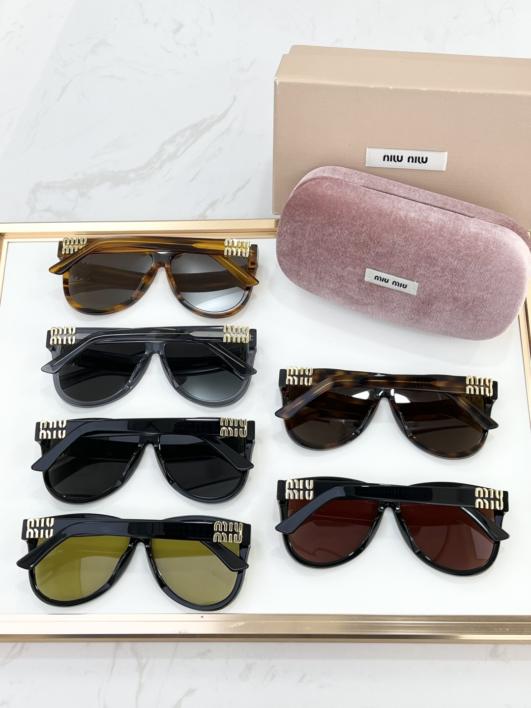 這款太陽眼鏡是AAAAA 1:1 質量(非常棒). 使用了和原版一模一樣的材料. 商標部分也保持了和繆繆/Miu Miu一樣. 圖片拍攝是實物太陽眼鏡拍攝, 您所收到的實物保證和我們圖片一模一樣.