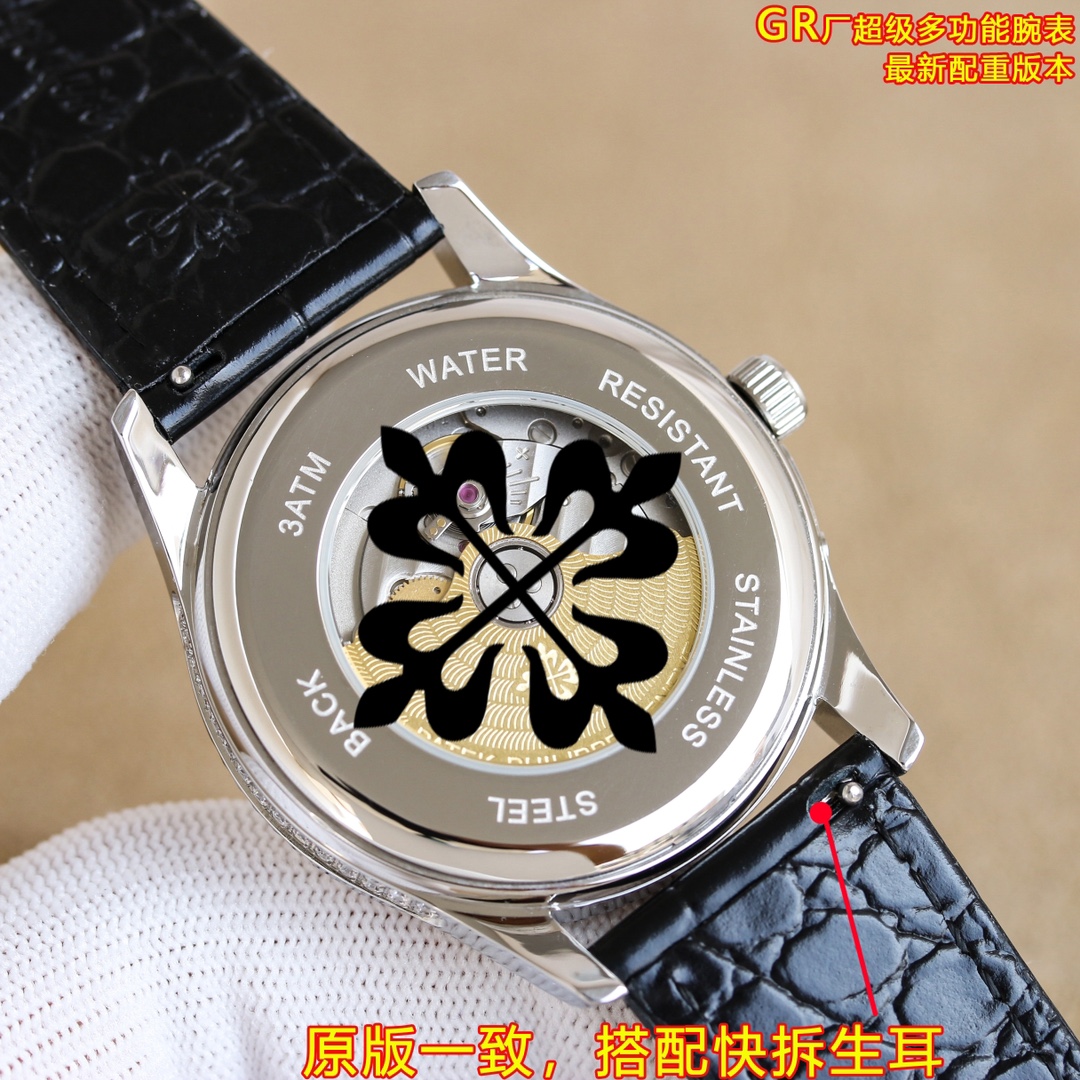 這款手錶是AAAAA 1:1 質量(非常棒). 使用了和原版一模一樣的材料. 商標部分也保持了和百達翡麗/Patek Philippe一樣. 圖片拍攝是實物手錶拍攝, 您所收到的實物保證和我們圖片一模一樣.