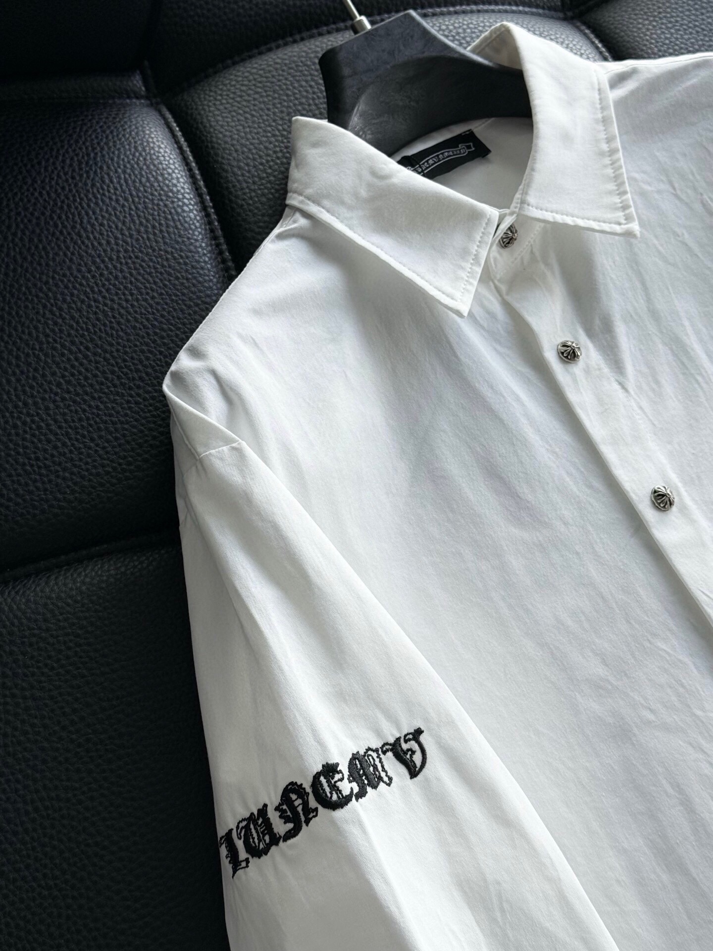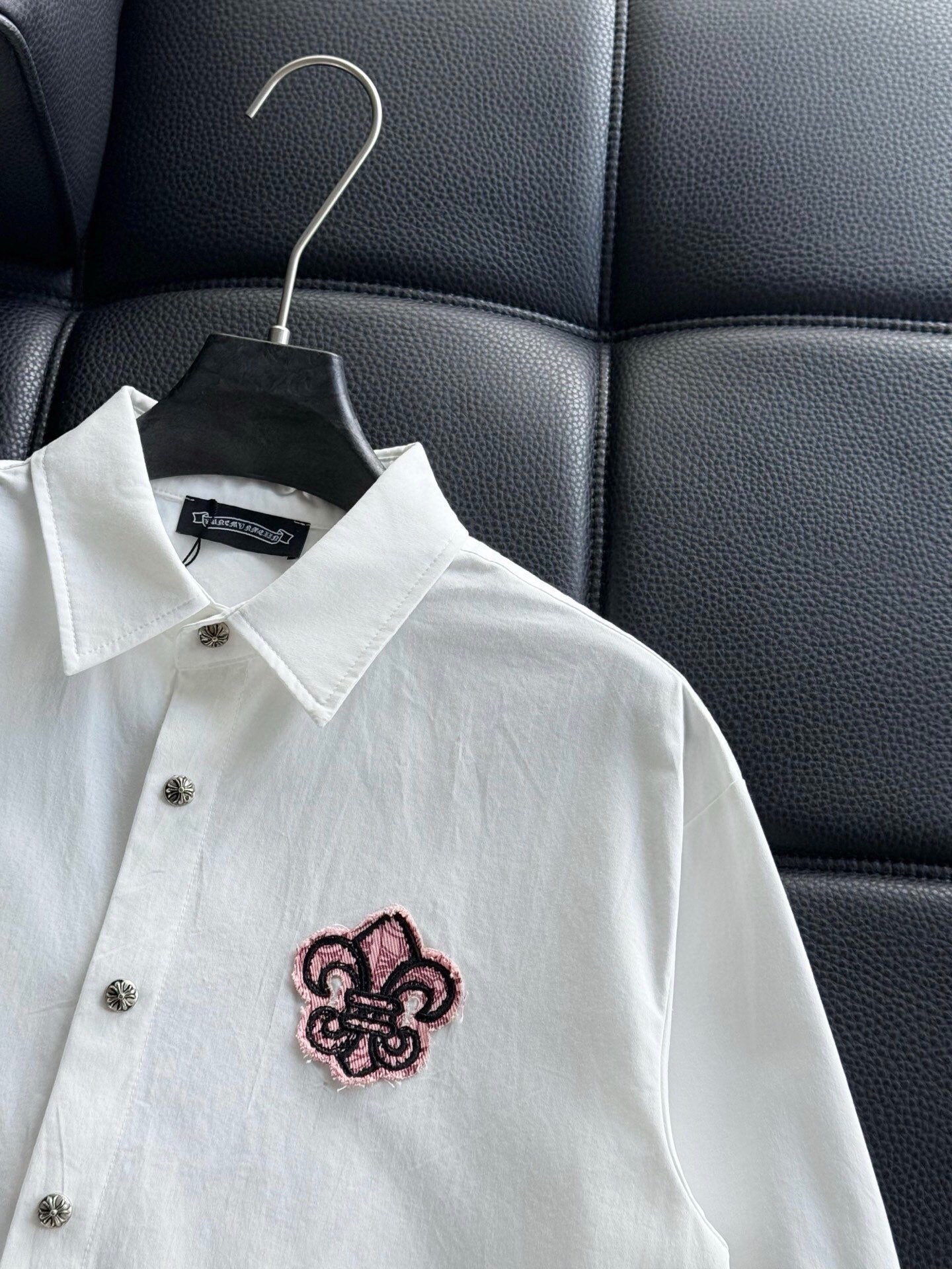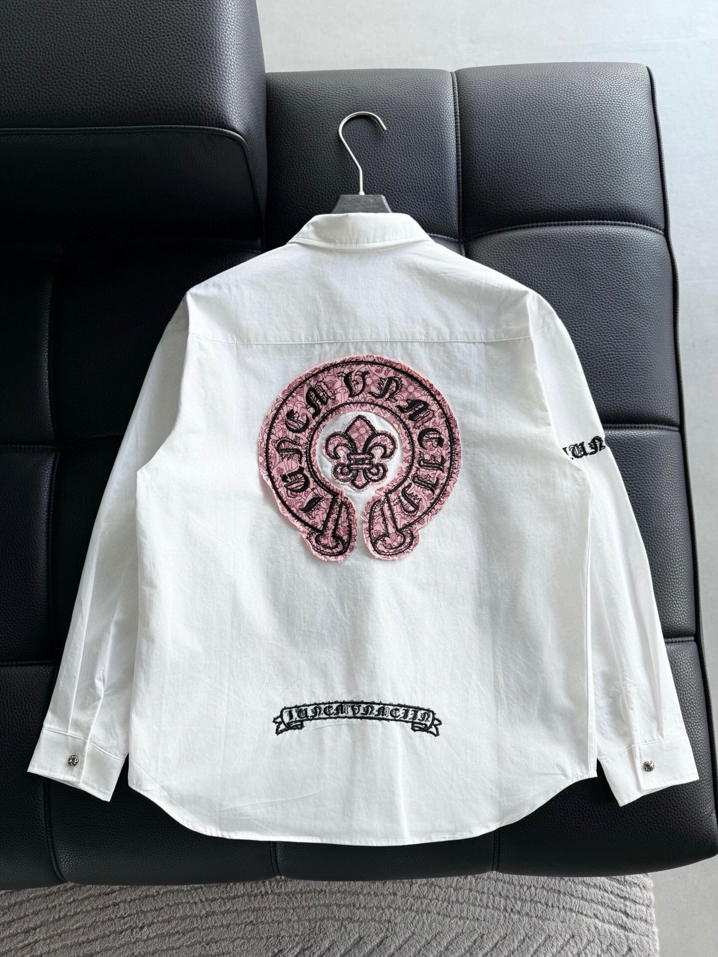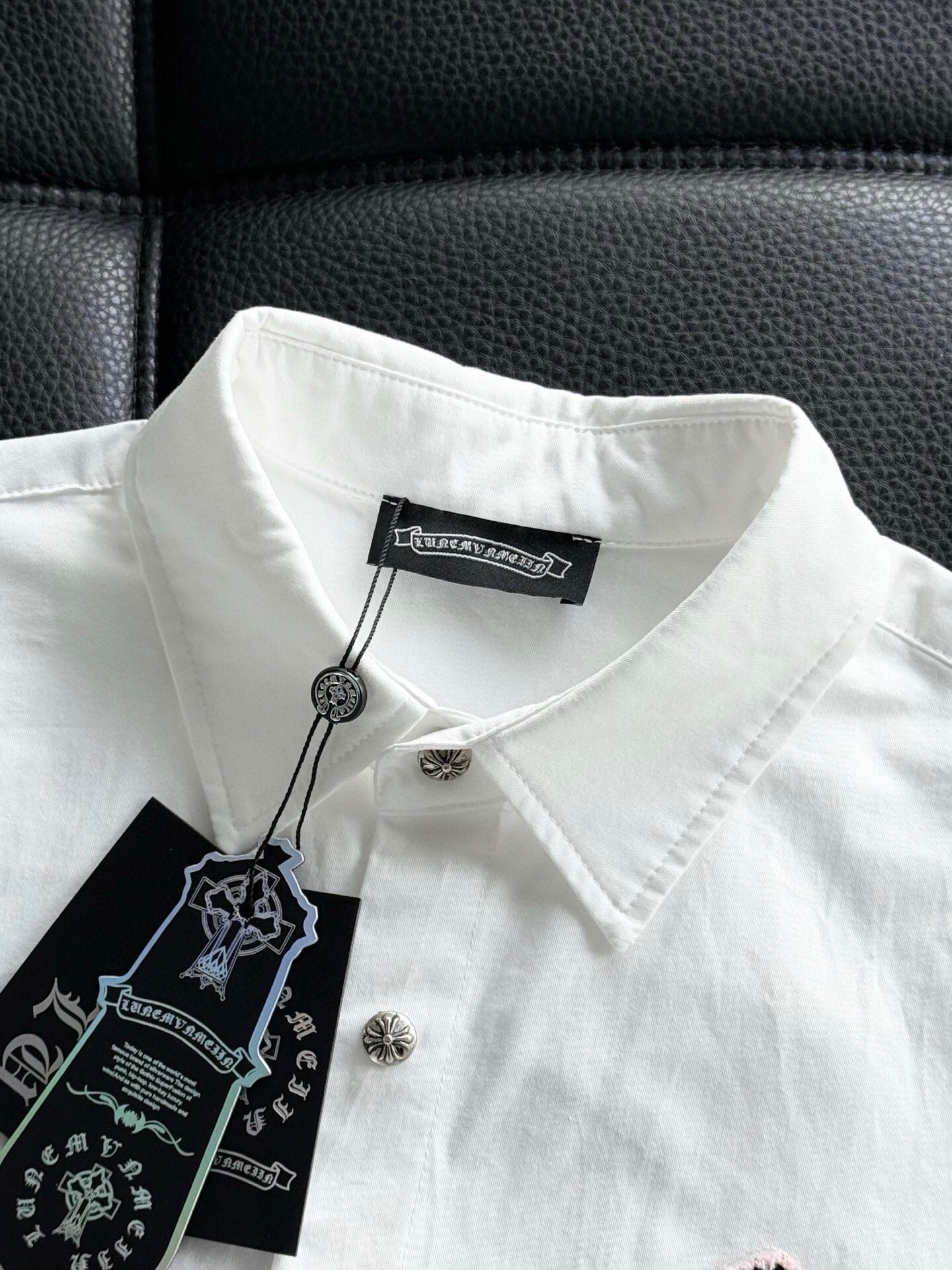 這款衣服是AAAAA 1:1 質量(非常棒). 使用了和原版一模一樣的材料. 商標部分也保持了和鉻心/Chrome Hearts一樣. 圖片拍攝是實物衣服拍攝, 您所收到的實物保證和我們圖片一模一樣.