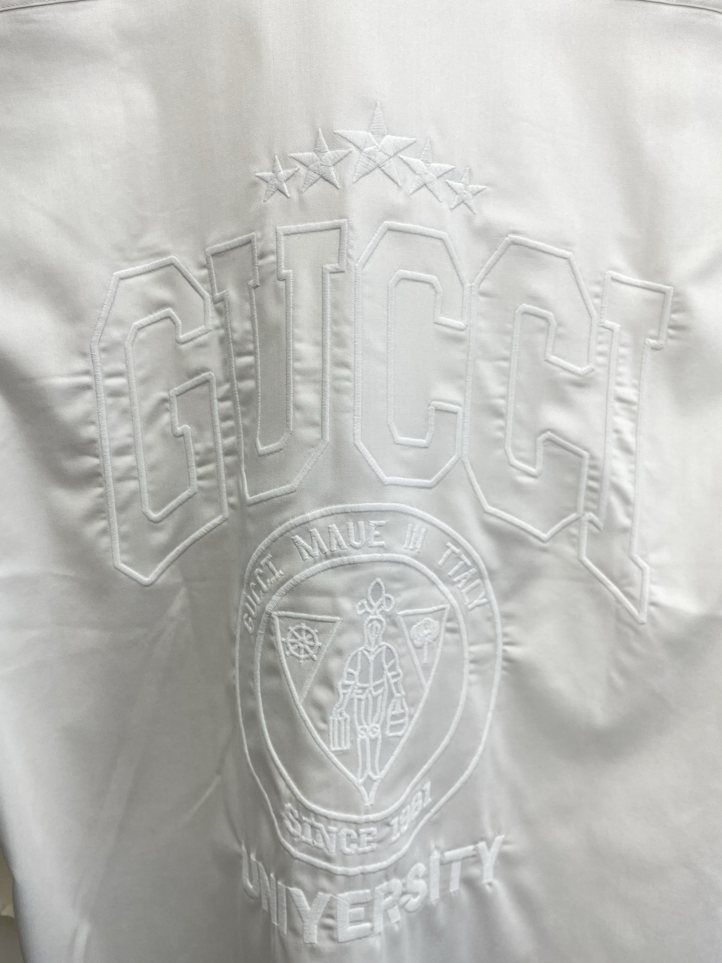 這款衣服是AAAAA 1:1 質量(非常棒). 使用了和原版一模一樣的材料. 商標部分也保持了和古奇/Gucci一樣. 圖片拍攝是實物衣服拍攝, 您所收到的實物保證和我們圖片一模一樣.