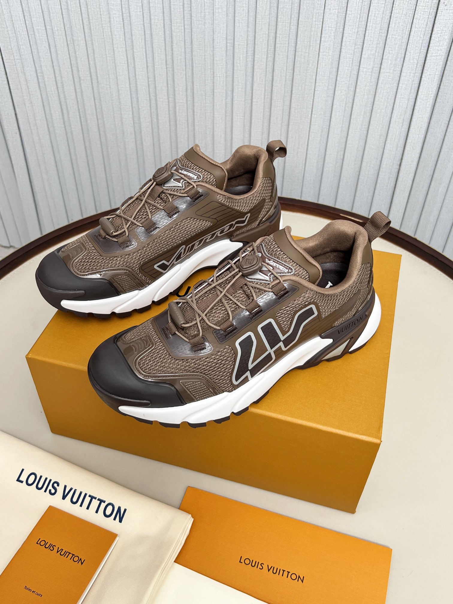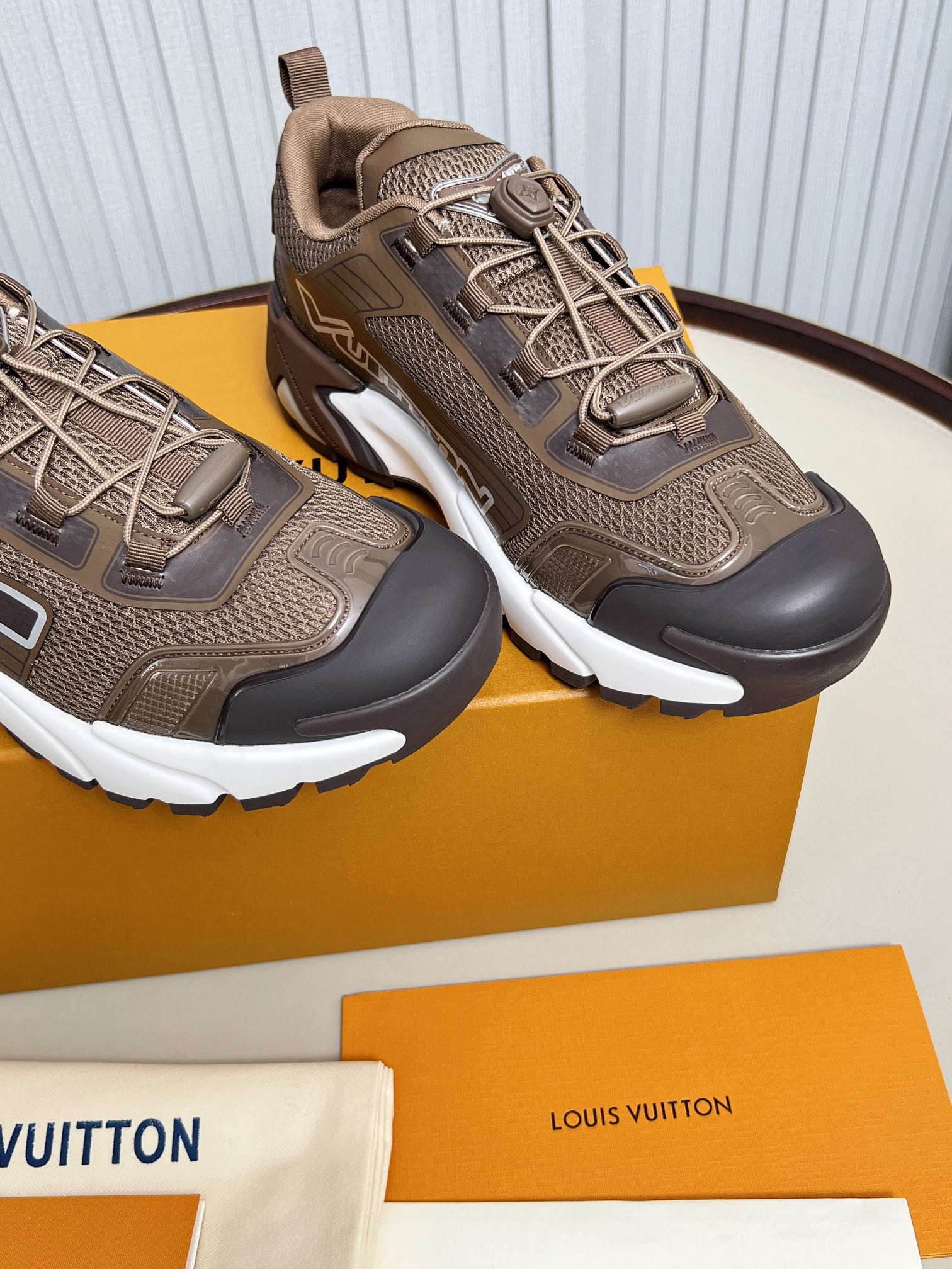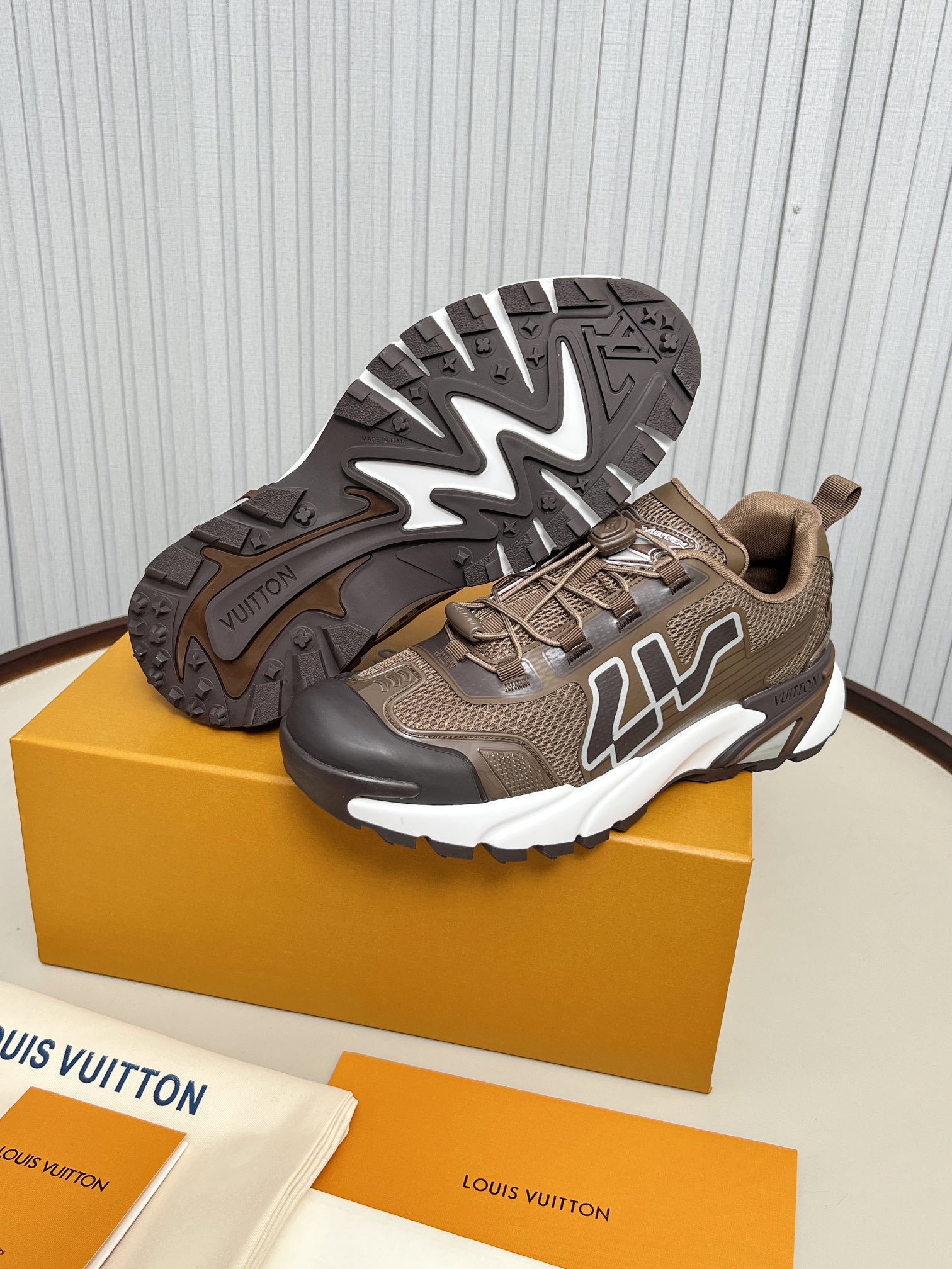 這款鞋子是AAAAA 1:1 質量(非常棒). 使用了和原版一模一樣的材料. 商標部分也保持了和路易威登/Louis Vuitton一樣. 圖片拍攝是實物鞋子拍攝, 您所收到的實物保證和我們圖片一模一樣.