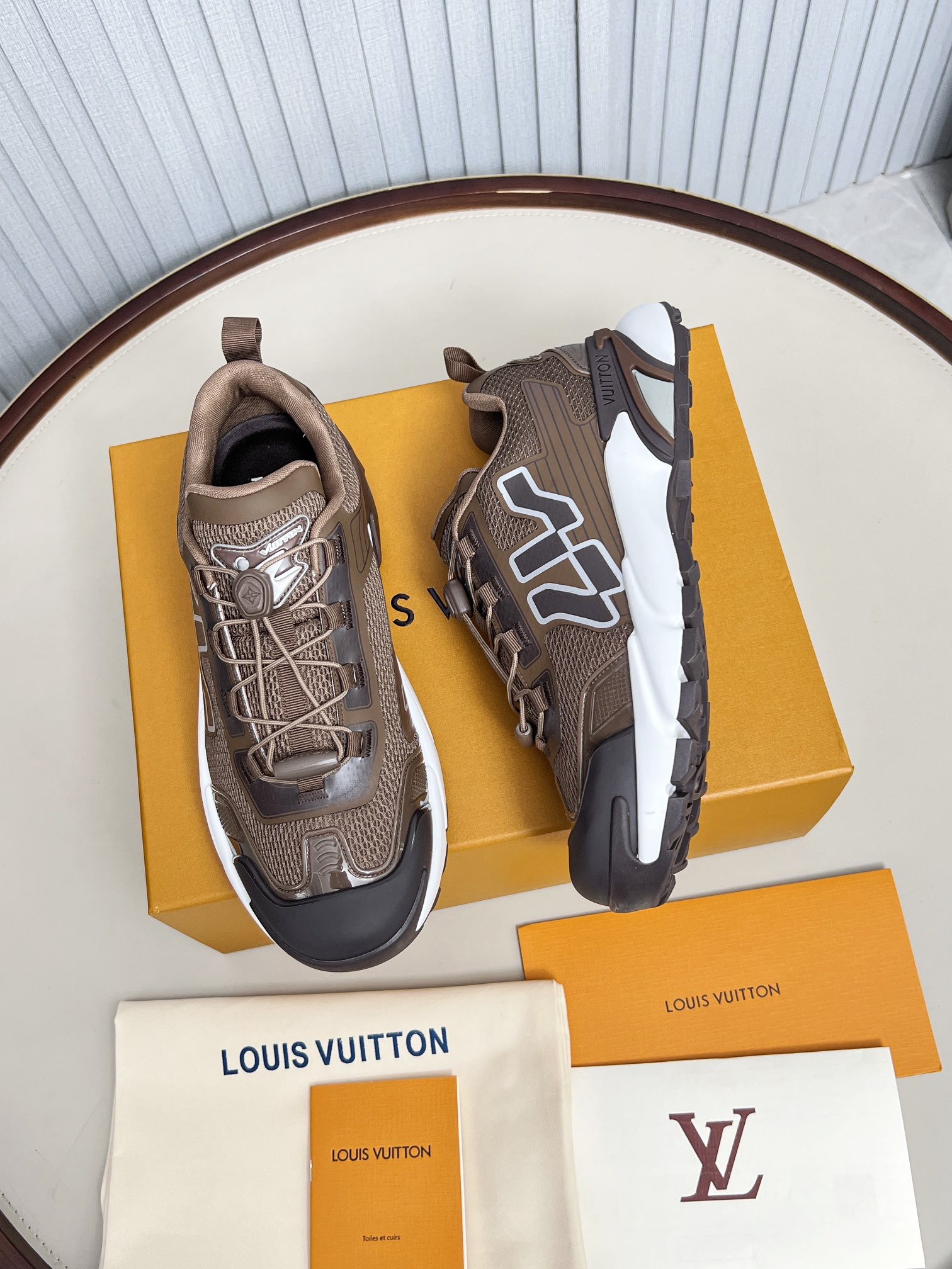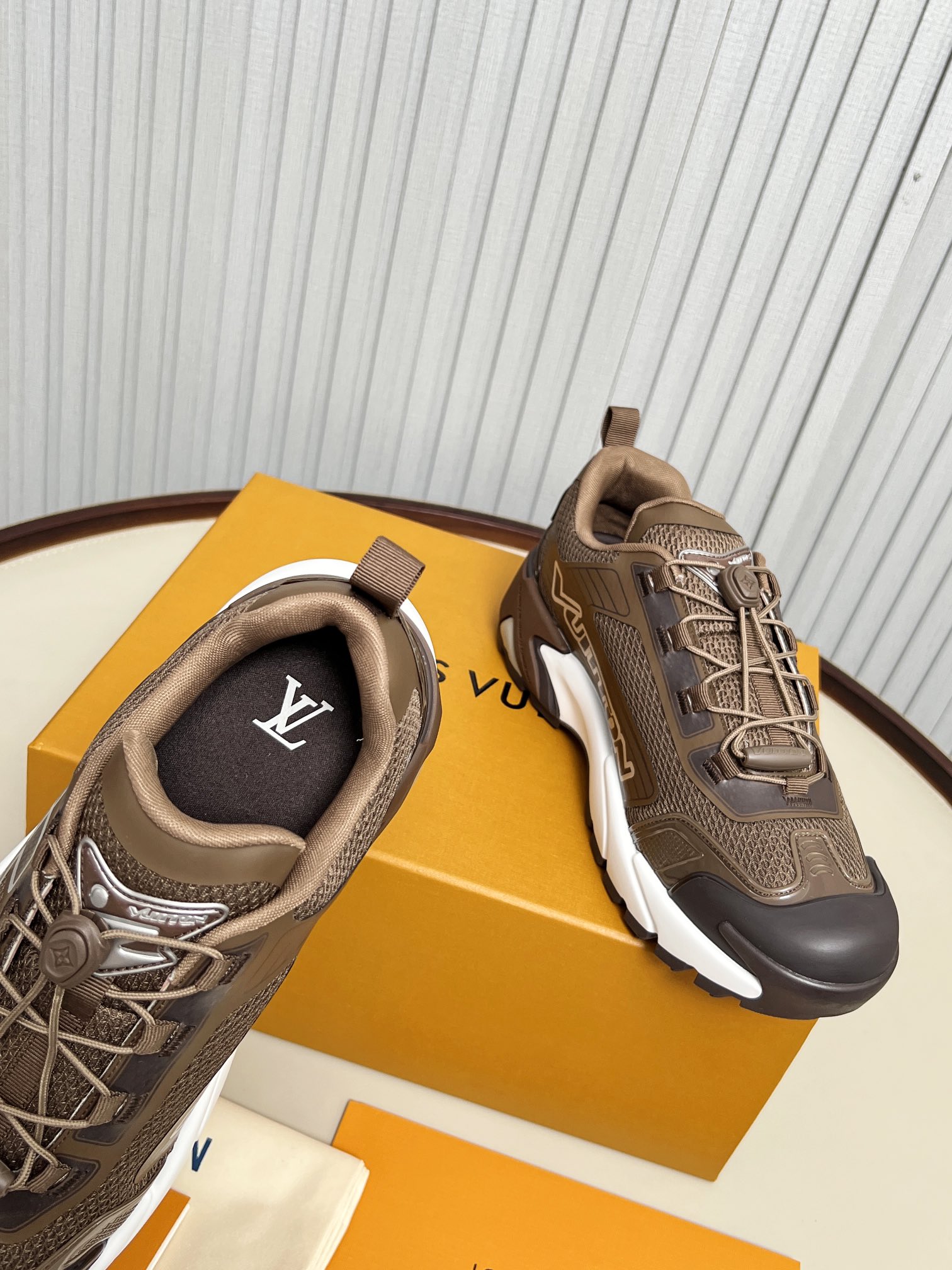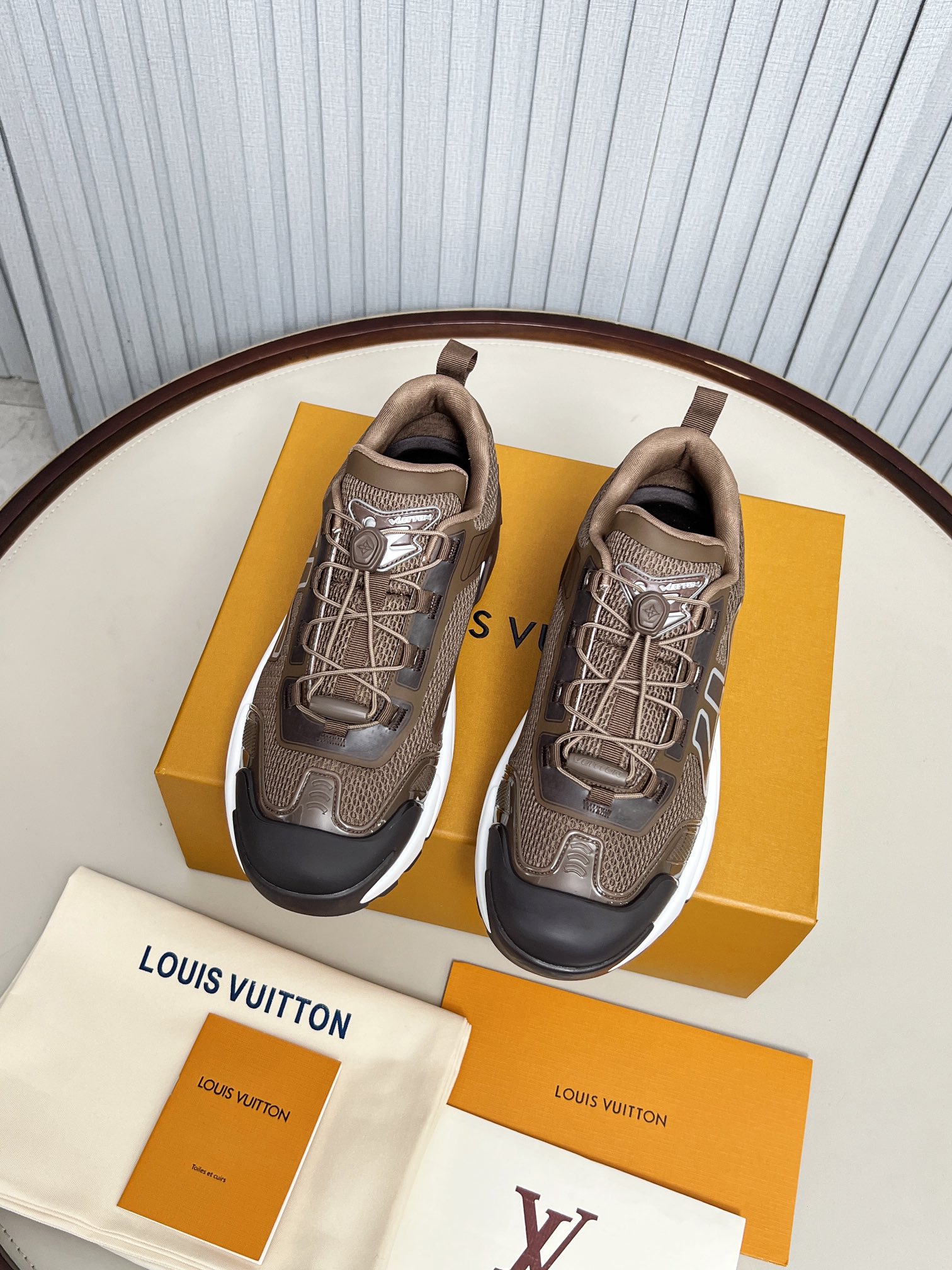 這款鞋子是AAAAA 1:1 質量(非常棒). 使用了和原版一模一樣的材料. 商標部分也保持了和路易威登/Louis Vuitton一樣. 圖片拍攝是實物鞋子拍攝, 您所收到的實物保證和我們圖片一模一樣.