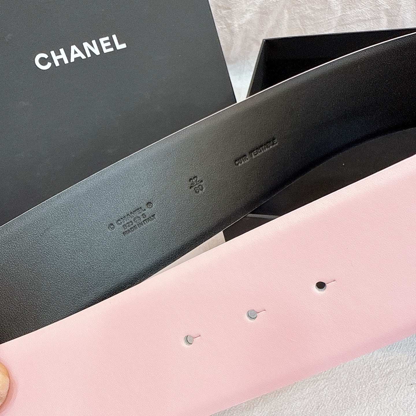 這款皮帶是AAAAA 1:1 質量(非常棒). 使用了和原版一模一樣的材料. 商標部分也保持了和香奈兒/Chanel一樣. 圖片拍攝是實物皮帶拍攝, 您所收到的實物保證和我們圖片一模一樣.