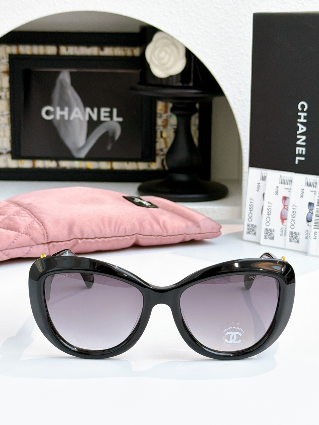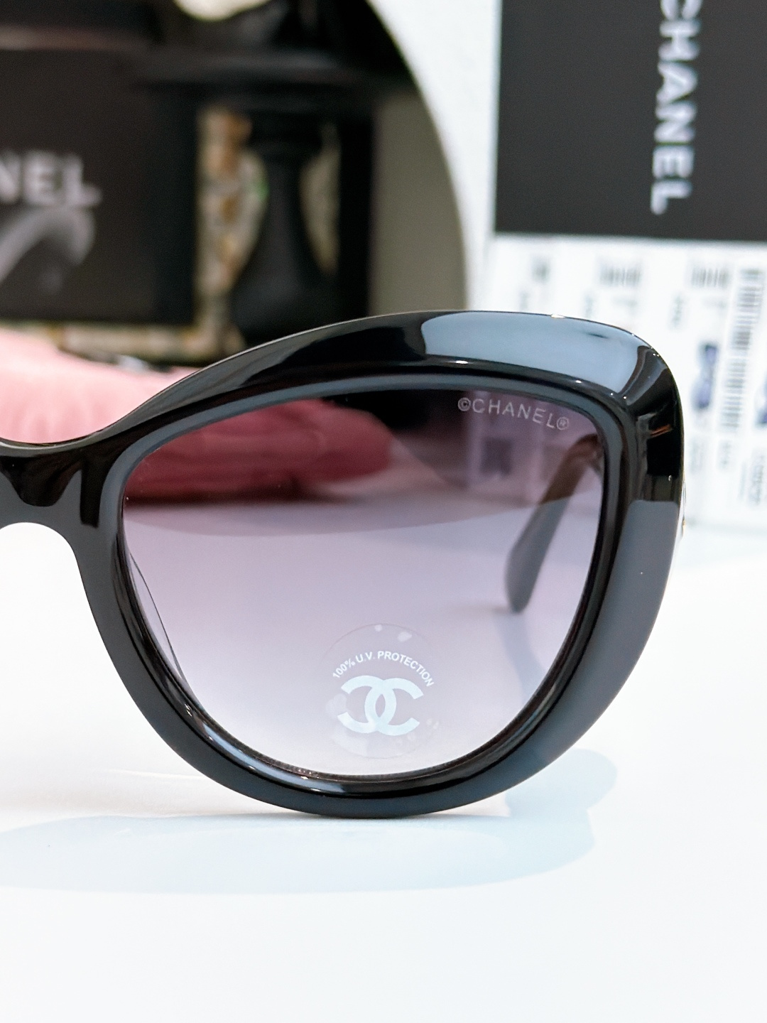 這款太陽眼鏡是AAAAA 1:1 質量(非常棒). 使用了和原版一模一樣的材料. 商標部分也保持了和香奈兒/Chanel一樣. 圖片拍攝是實物太陽眼鏡拍攝, 您所收到的實物保證和我們圖片一模一樣.