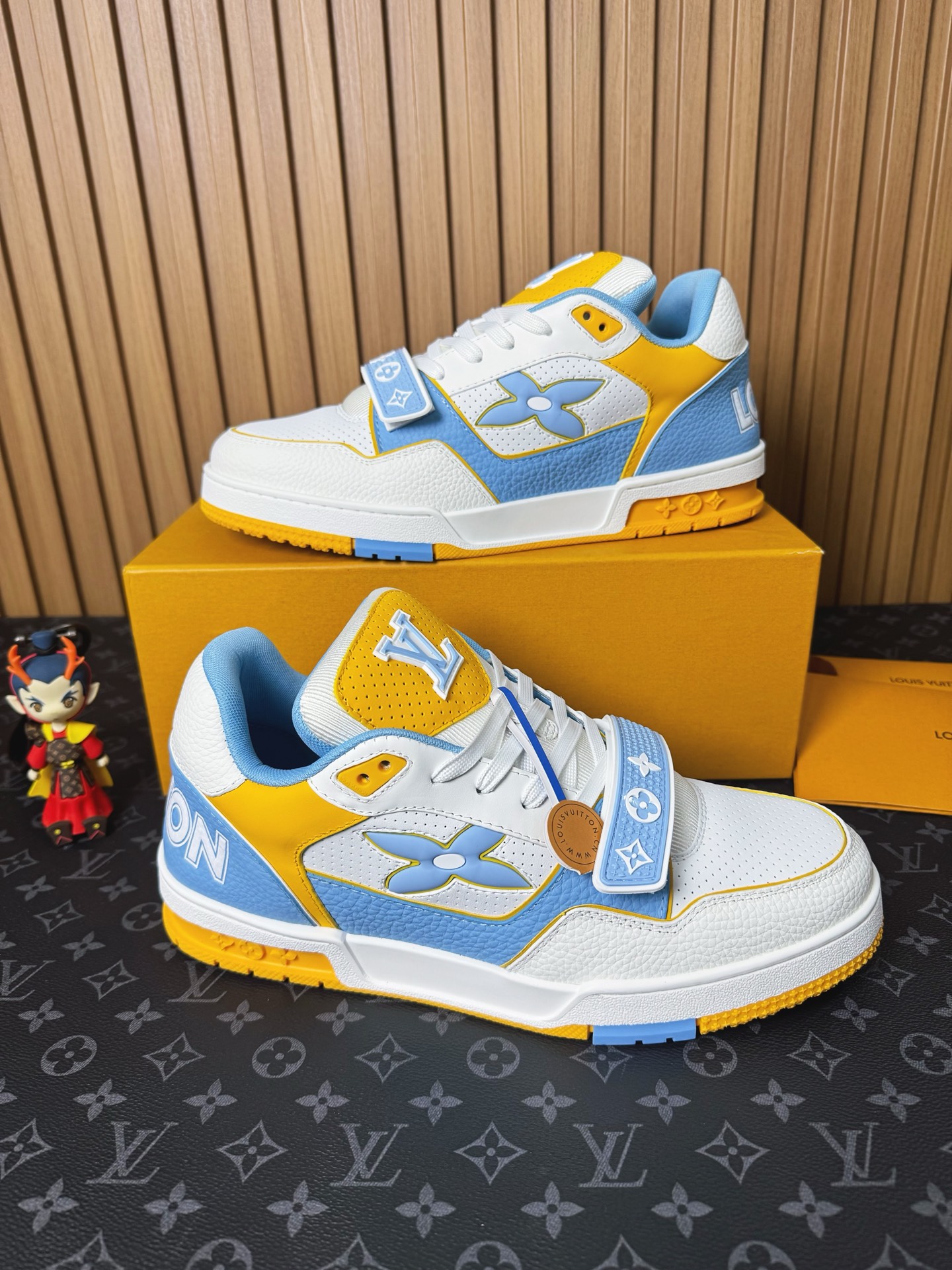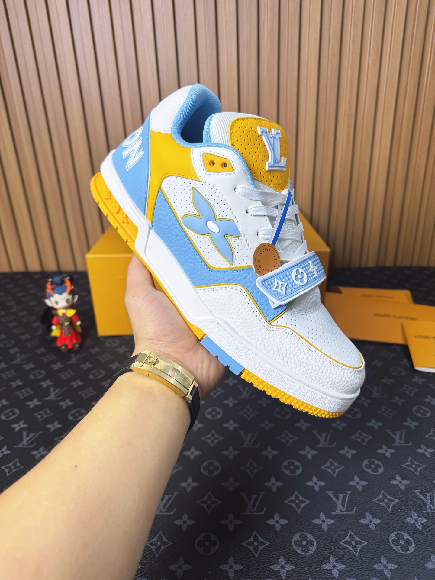 這款鞋子是AAAAA 1:1 質量(非常棒). 使用了和原版一模一樣的材料. 商標部分也保持了和路易威登/Louis Vuitton一樣. 圖片拍攝是實物鞋子拍攝, 您所收到的實物保證和我們圖片一模一樣.