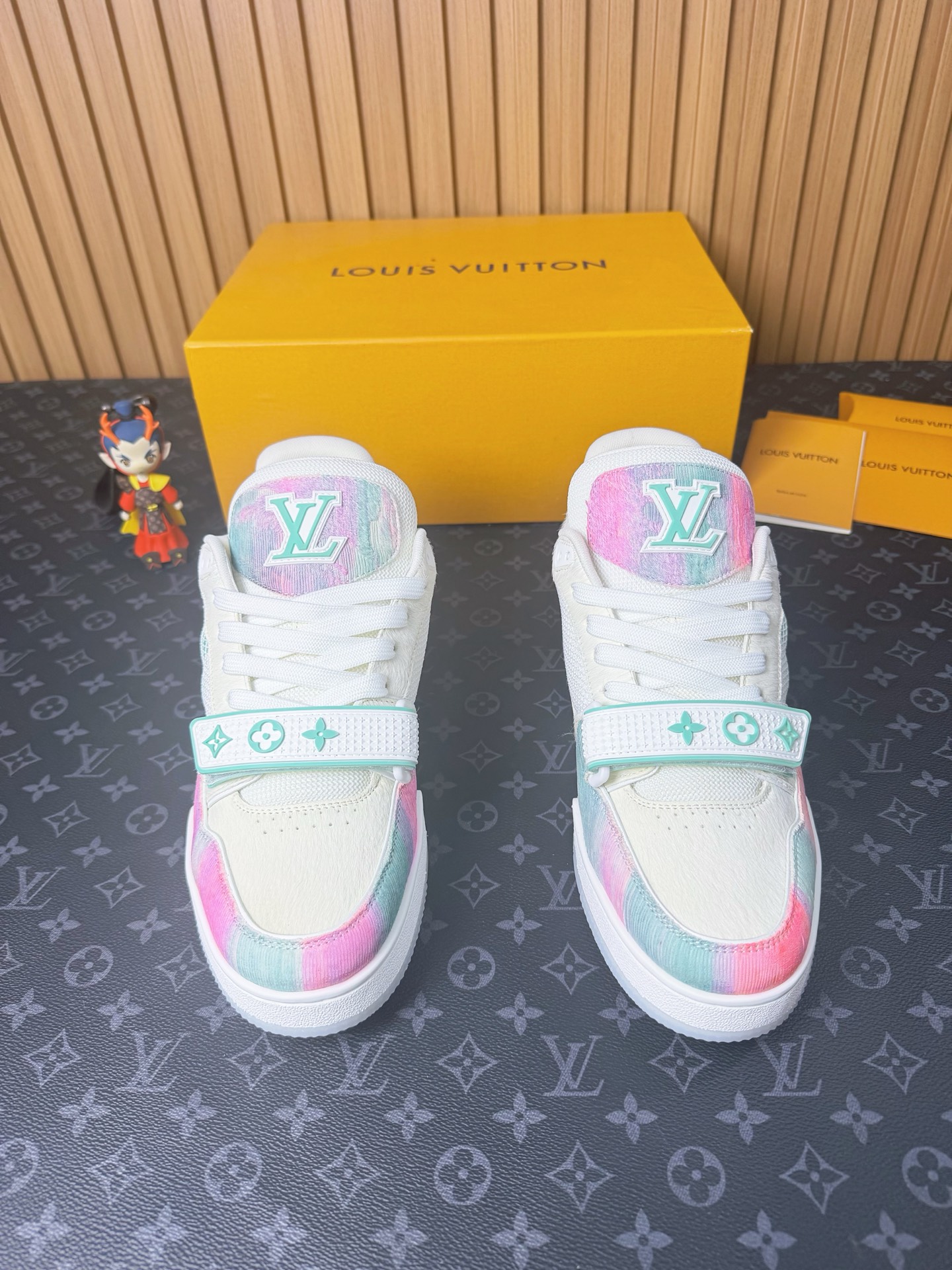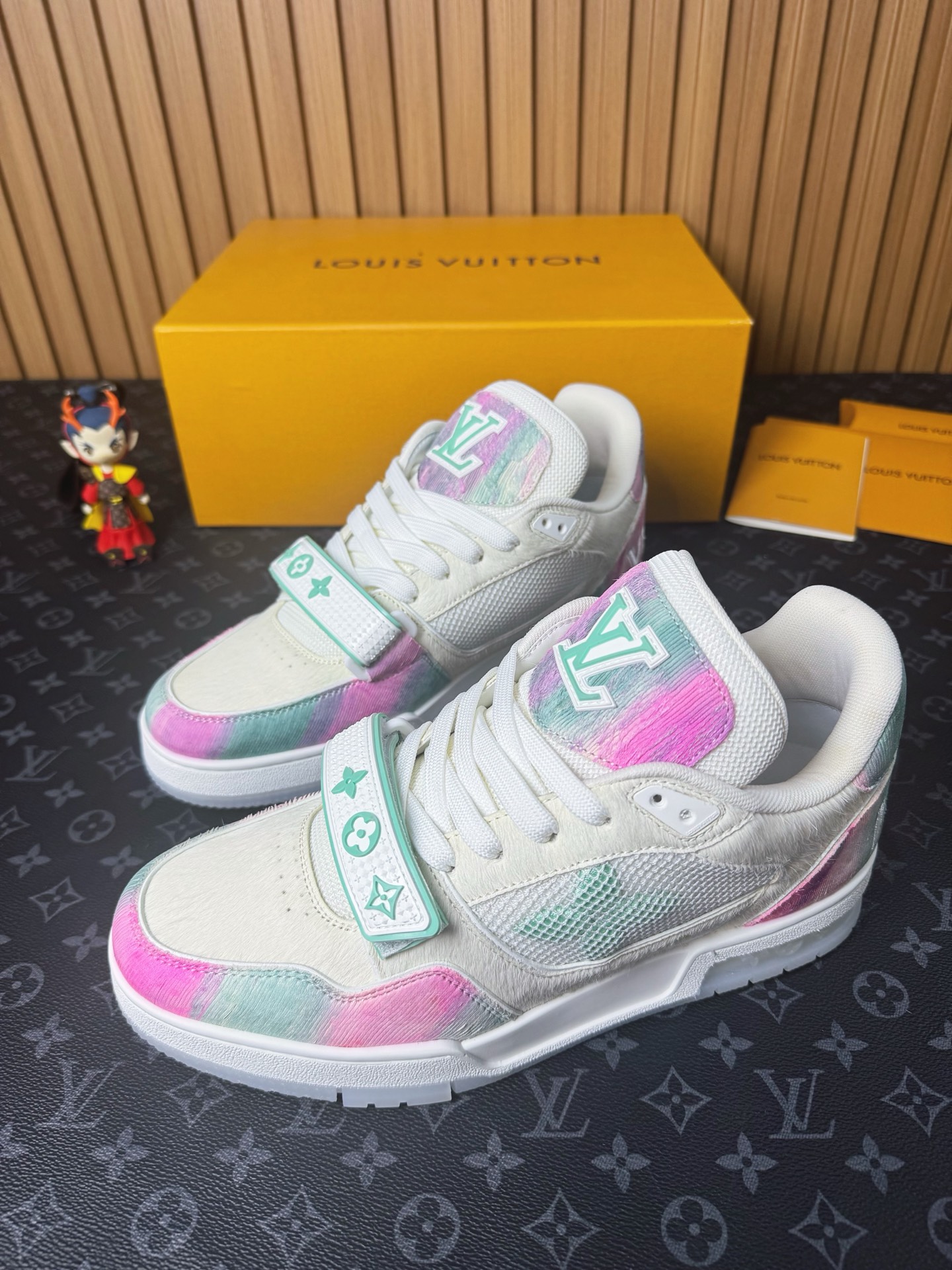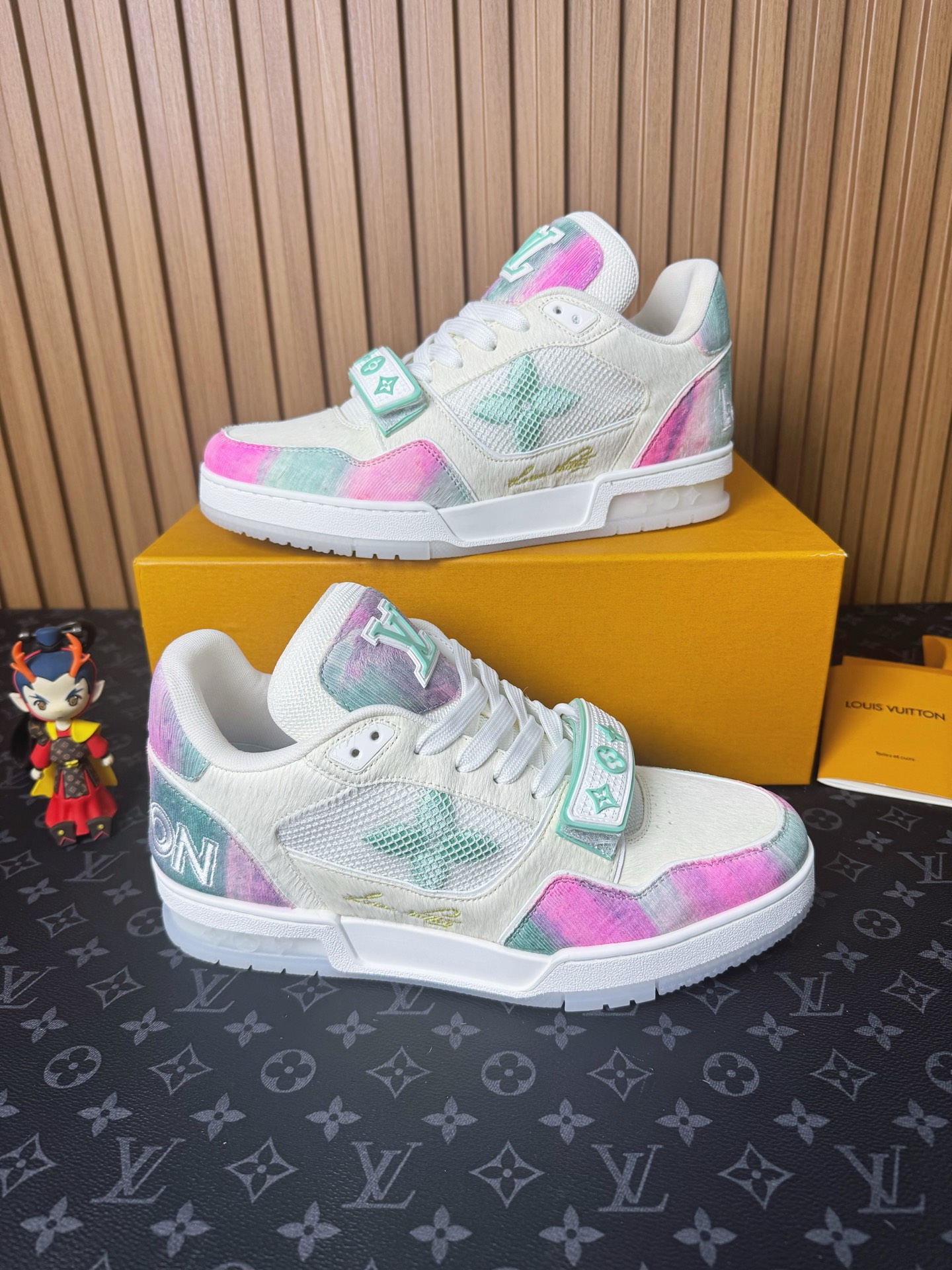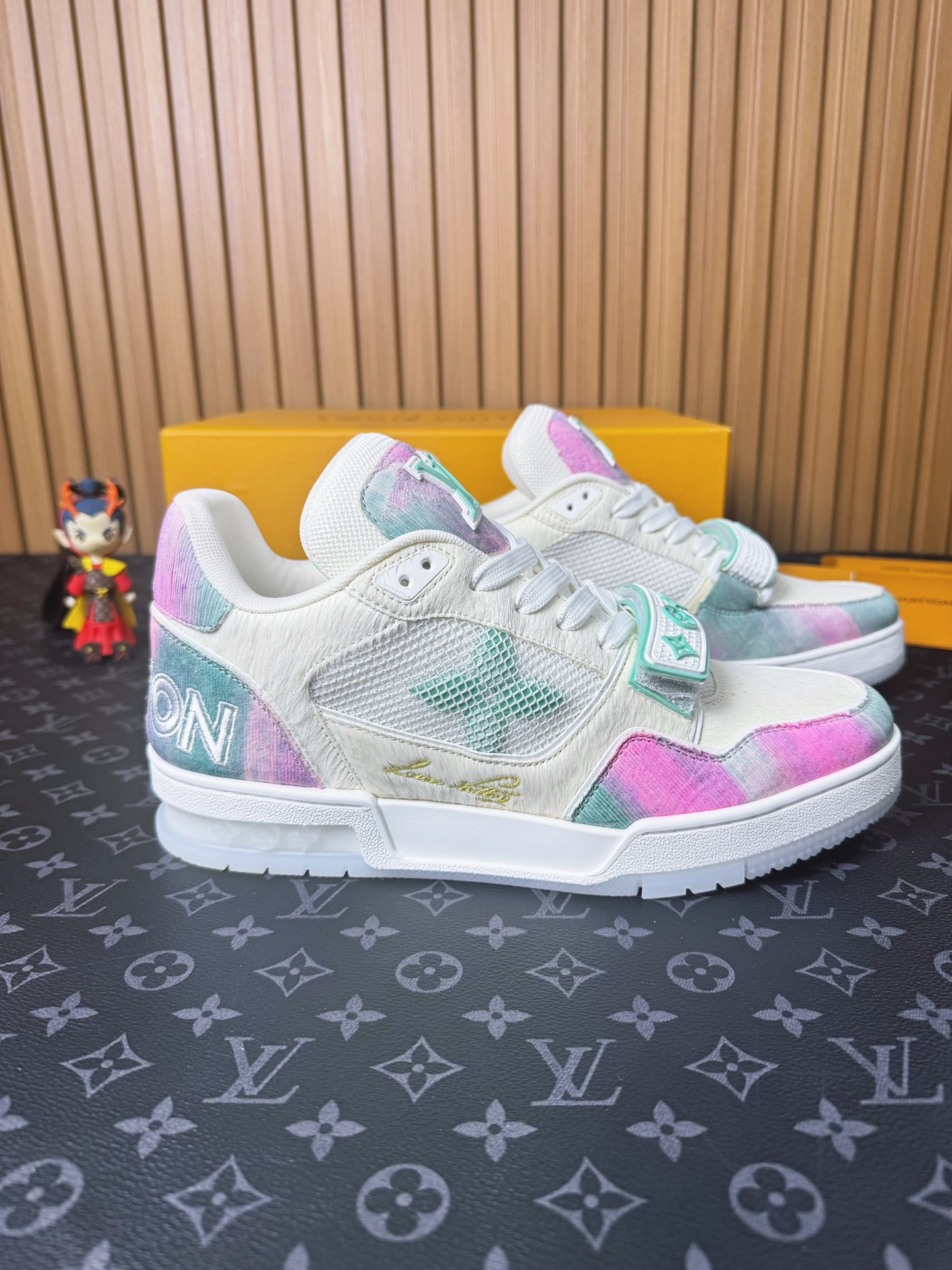 這款鞋子是AAAAA 1:1 質量(非常棒). 使用了和原版一模一樣的材料. 商標部分也保持了和路易威登/Louis Vuitton一樣. 圖片拍攝是實物鞋子拍攝, 您所收到的實物保證和我們圖片一模一樣.