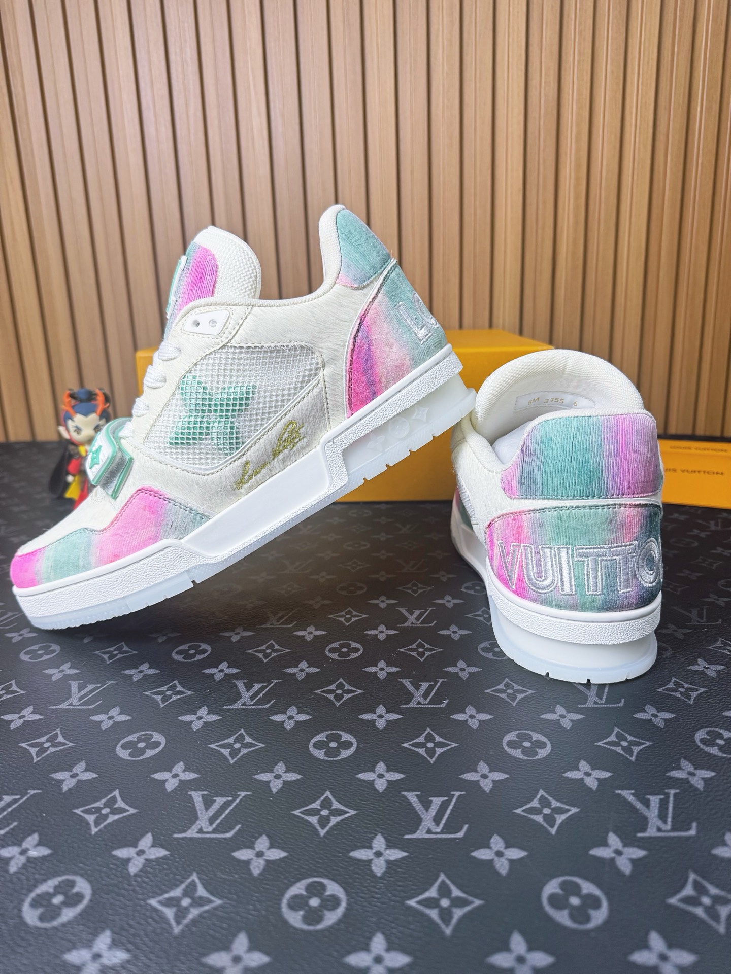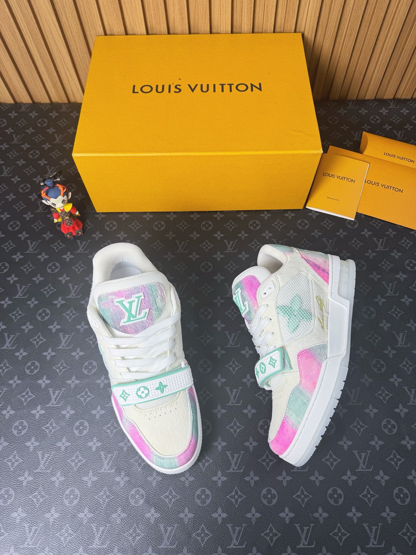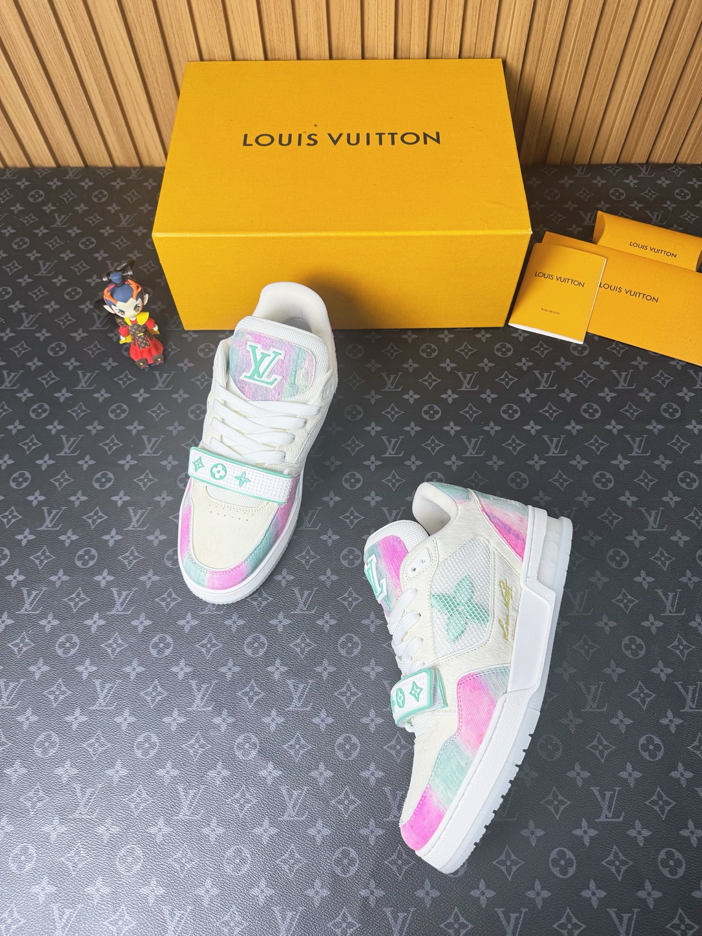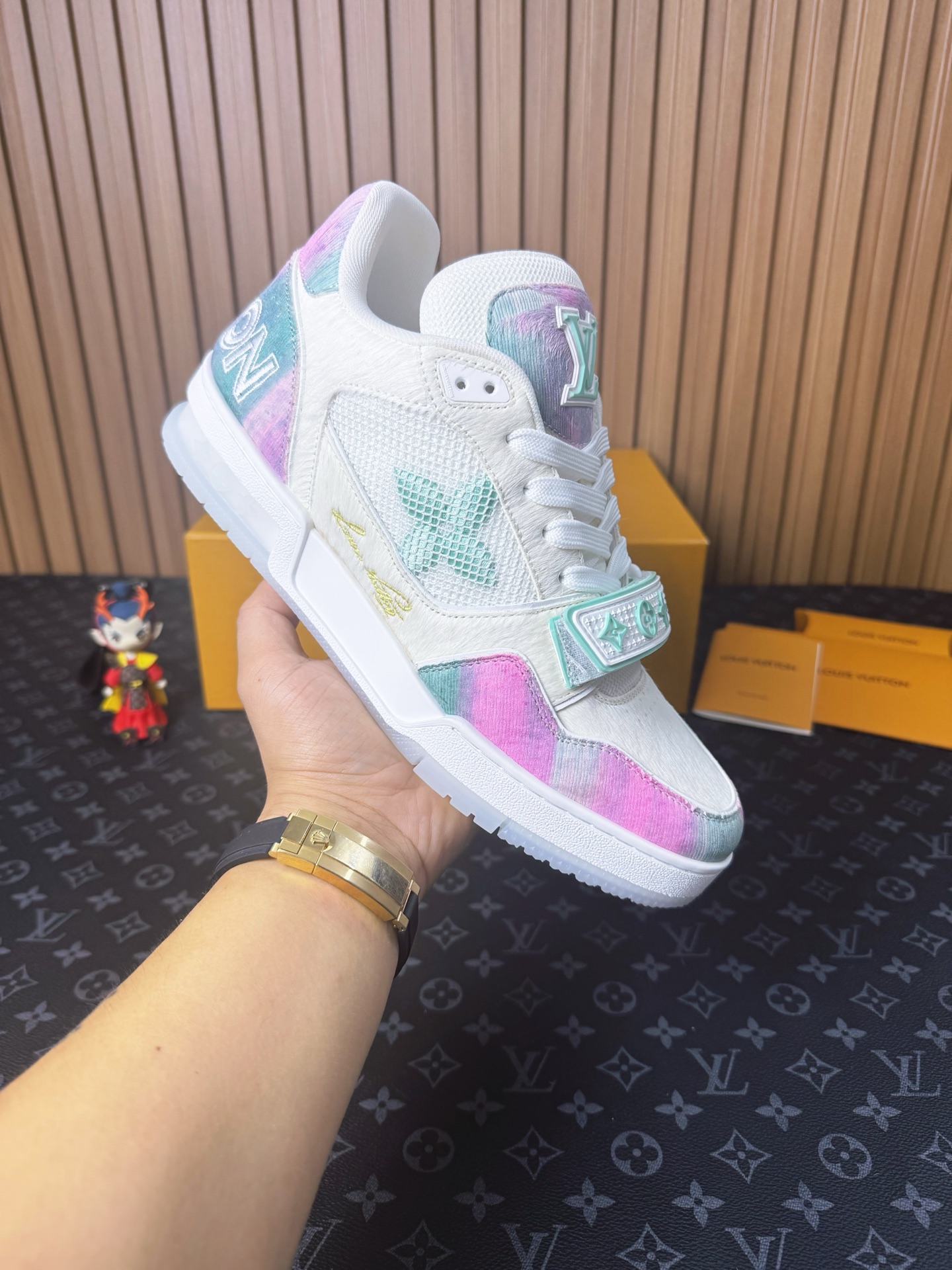 這款鞋子是AAAAA 1:1 質量(非常棒). 使用了和原版一模一樣的材料. 商標部分也保持了和路易威登/Louis Vuitton一樣. 圖片拍攝是實物鞋子拍攝, 您所收到的實物保證和我們圖片一模一樣.