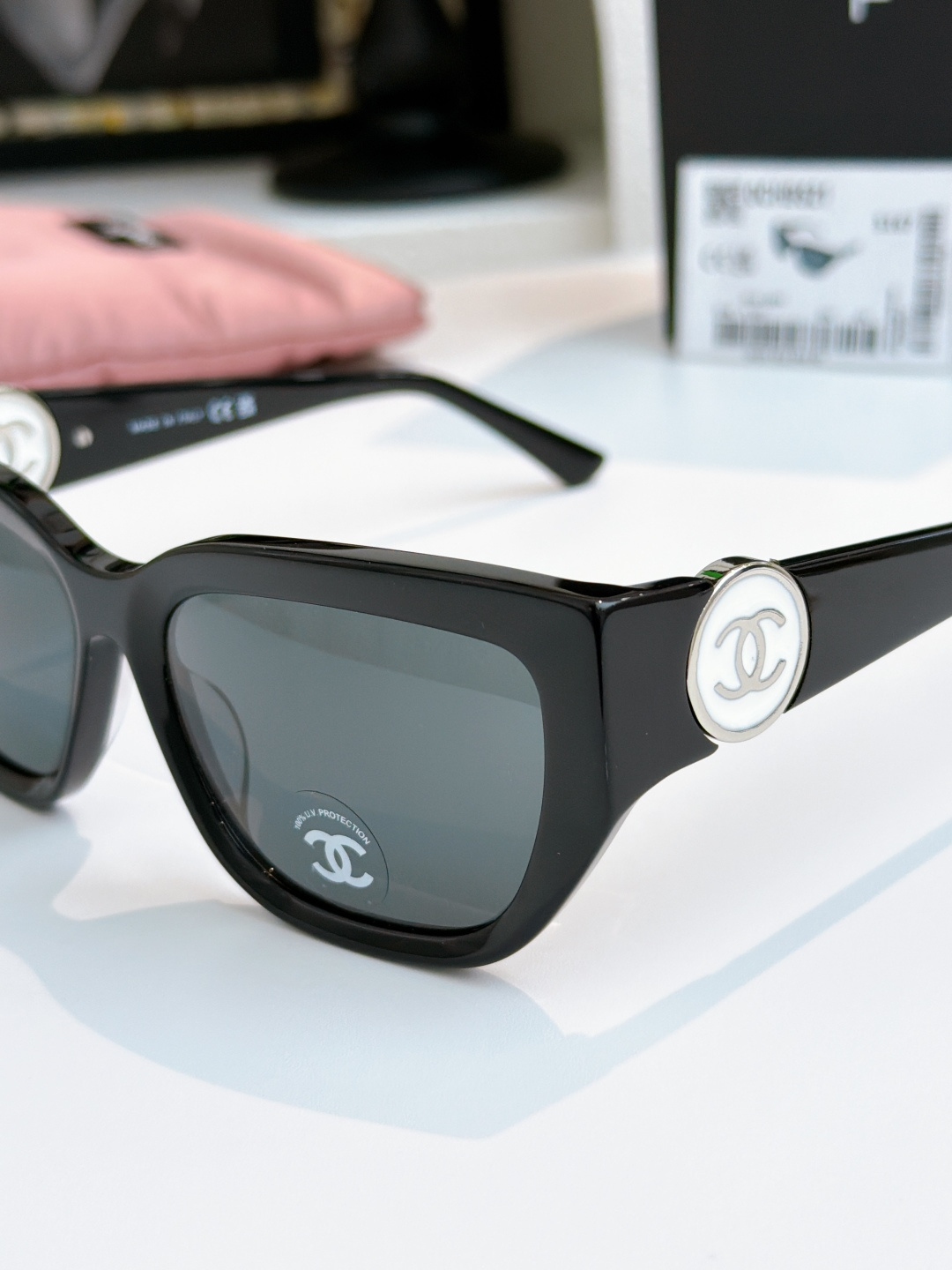 這款太陽眼鏡是AAAAA 1:1 質量(非常棒). 使用了和原版一模一樣的材料. 商標部分也保持了和香奈兒/Chanel一樣. 圖片拍攝是實物太陽眼鏡拍攝, 您所收到的實物保證和我們圖片一模一樣.