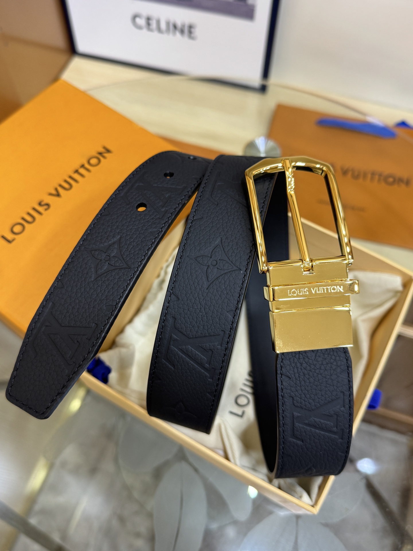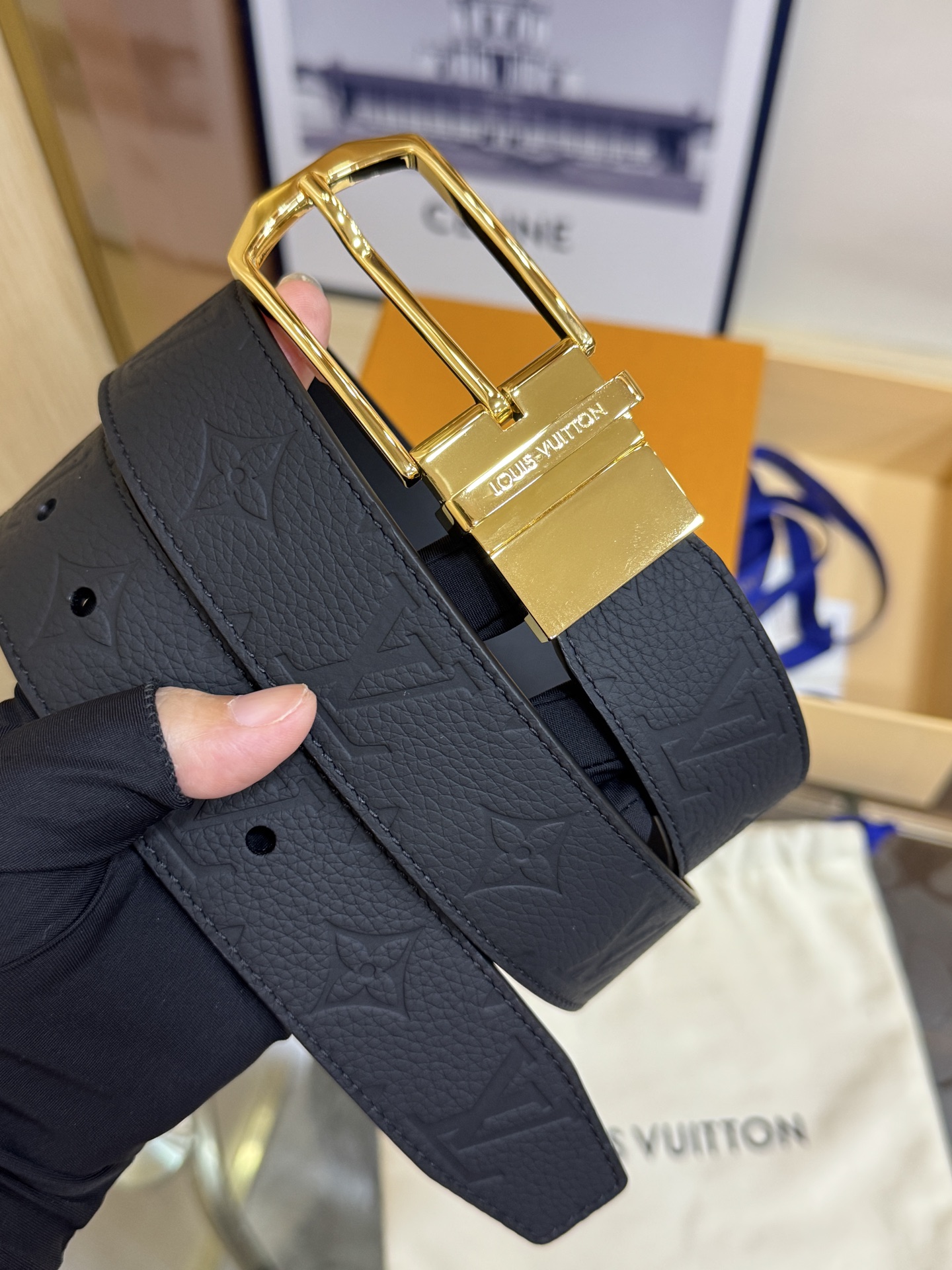 這款皮帶是AAAAA 1:1 質量(非常棒). 使用了和原版一模一樣的材料. 商標部分也保持了和路易威登/Louis Vuitton一樣. 圖片拍攝是實物皮帶拍攝, 您所收到的實物保證和我們圖片一模一樣.