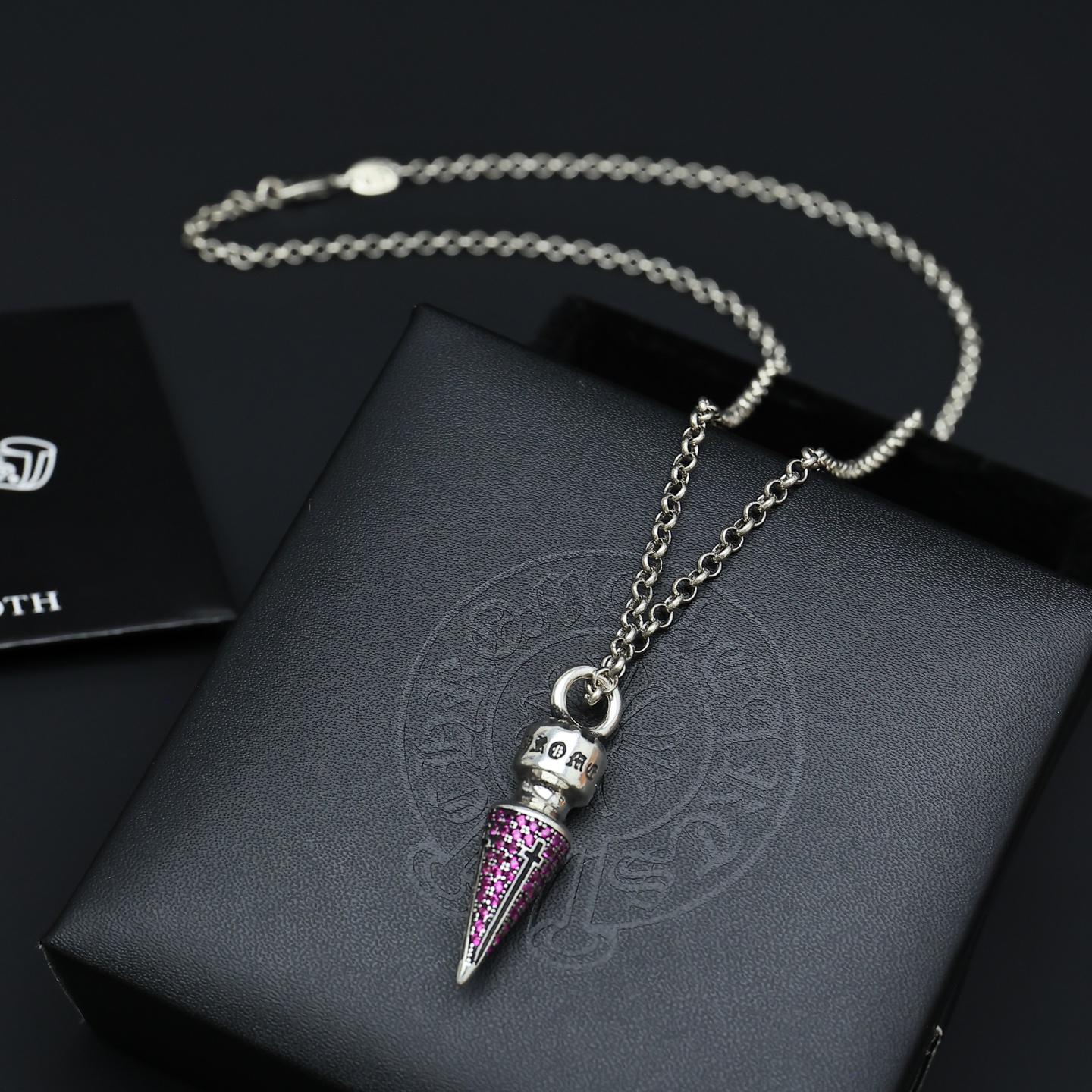 這款首飾是AAAAA 1:1 質量(非常棒). 使用了和原版一模一樣的材料. 商標部分也保持了和鉻心/Chrome Hearts一樣. 圖片拍攝是實物首飾拍攝, 您所收到的實物保證和我們圖片一模一樣.