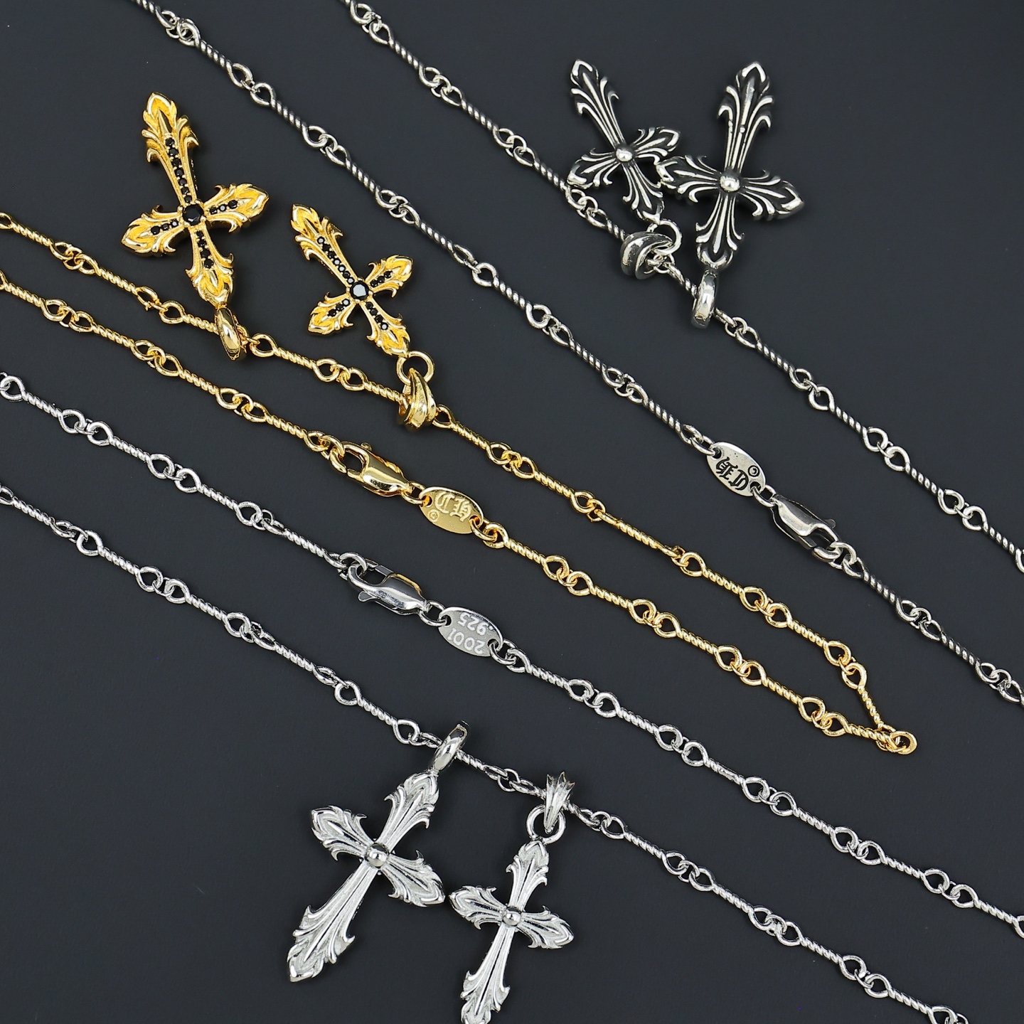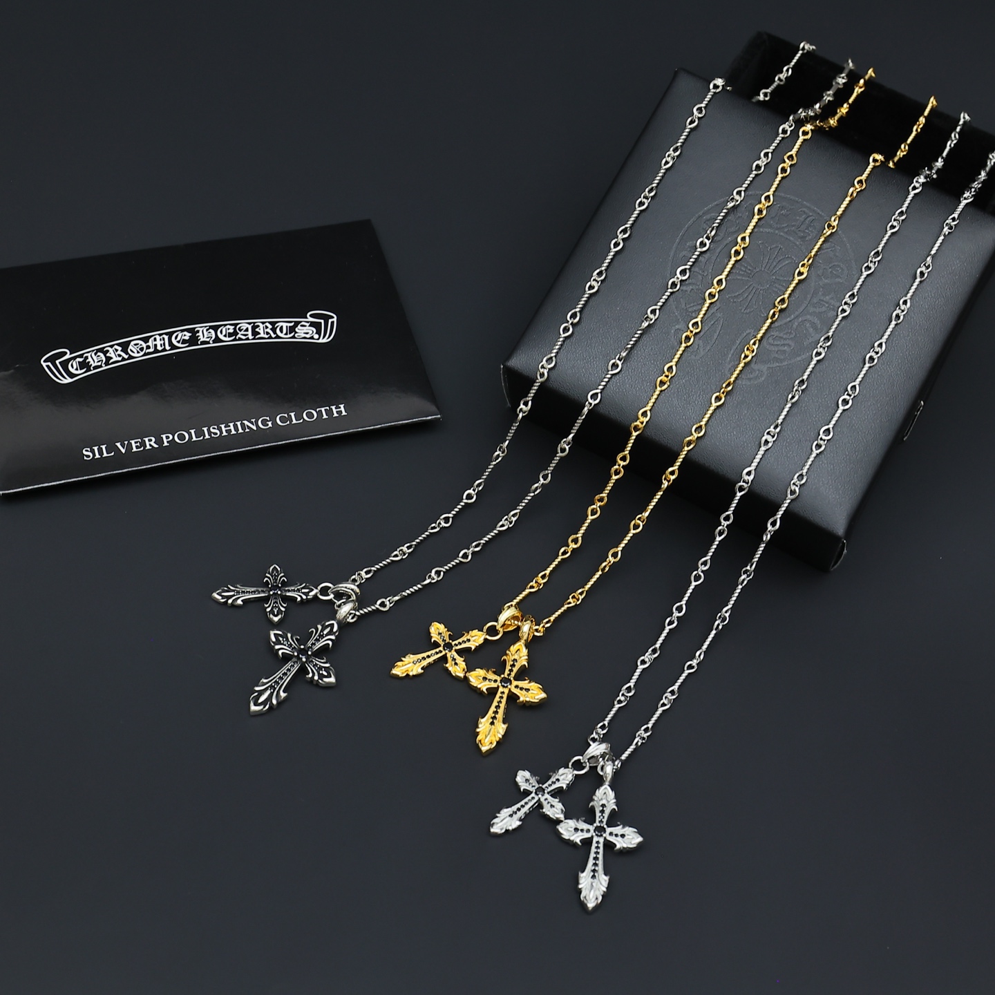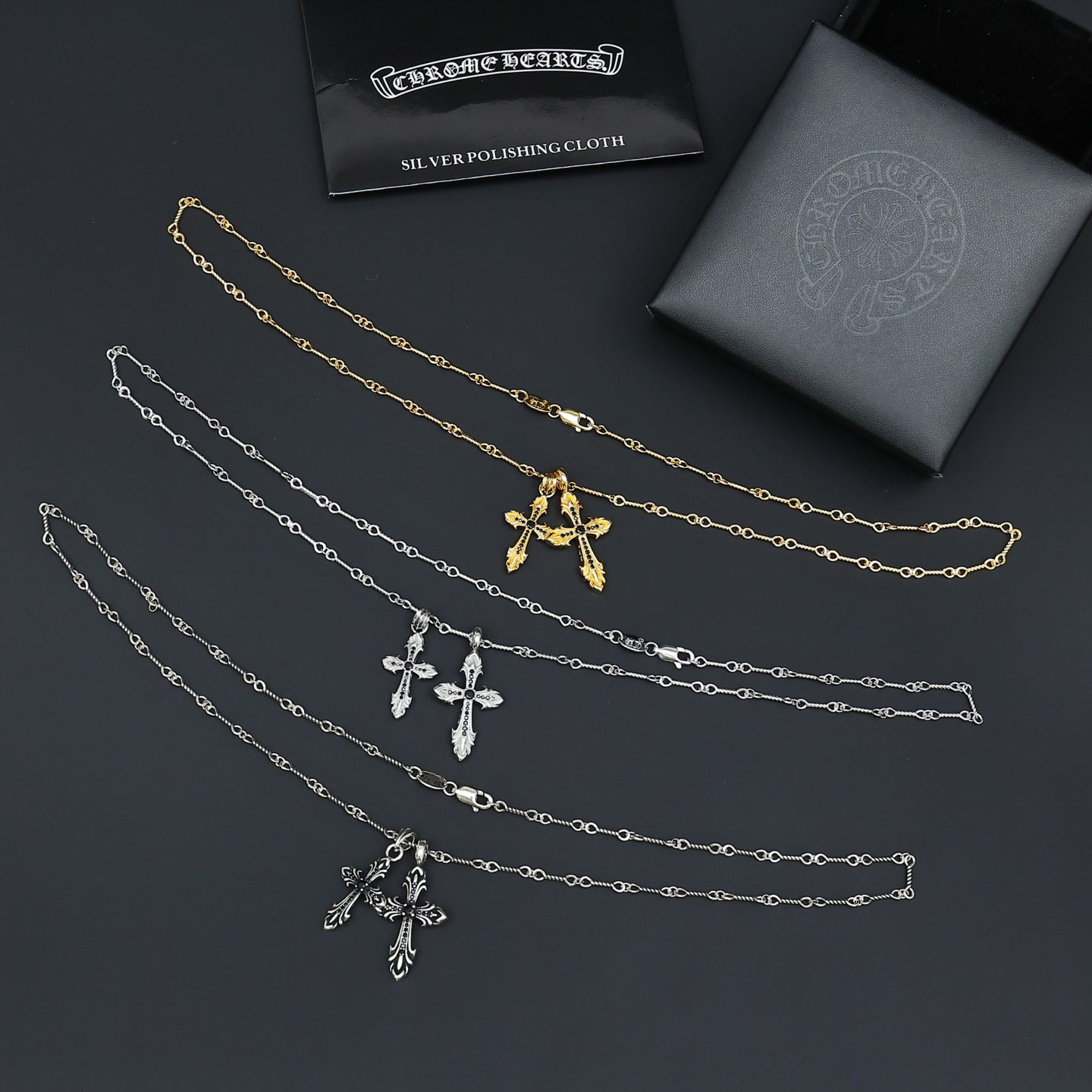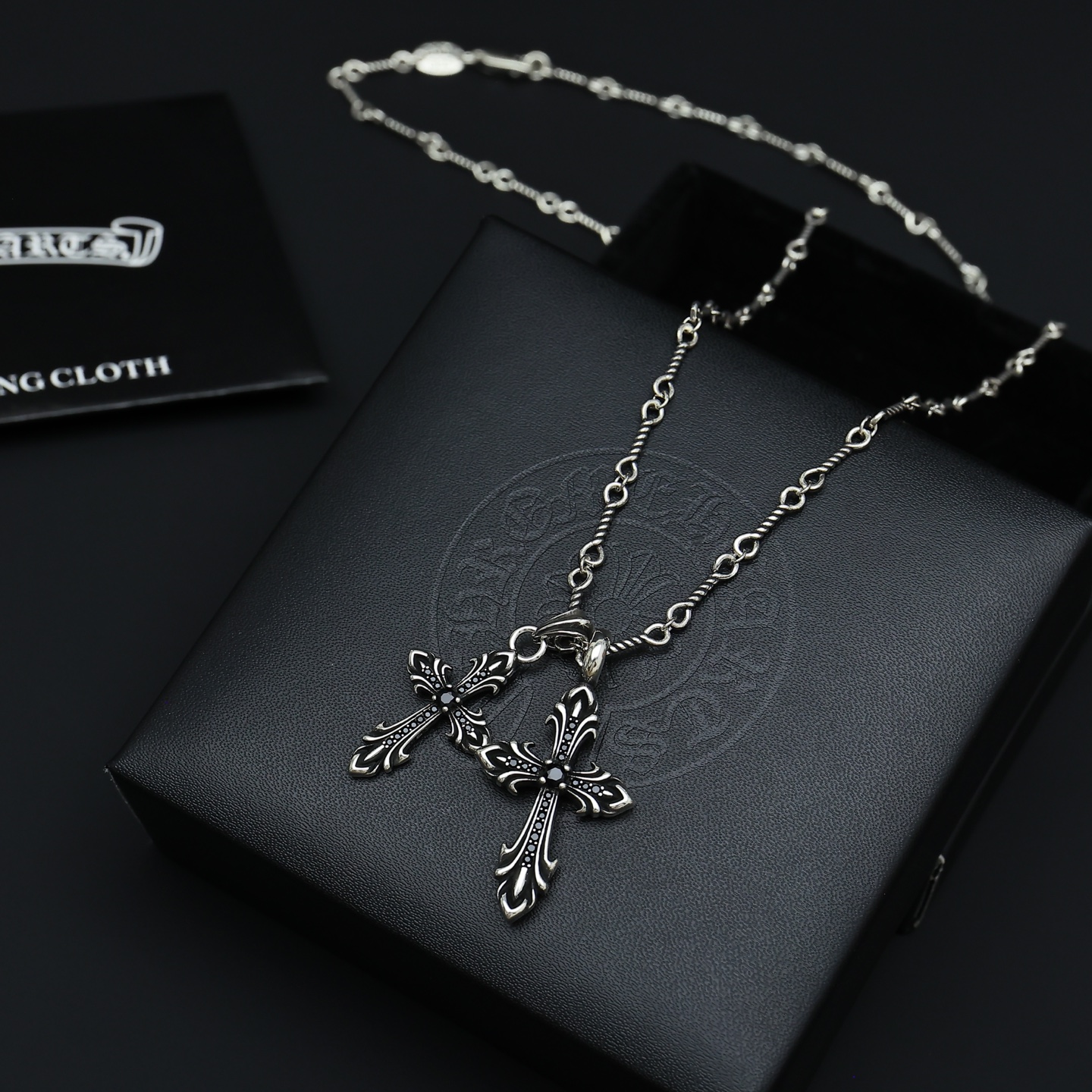 這款首飾是AAAAA 1:1 質量(非常棒). 使用了和原版一模一樣的材料. 商標部分也保持了和鉻心/Chrome Hearts一樣. 圖片拍攝是實物首飾拍攝, 您所收到的實物保證和我們圖片一模一樣.