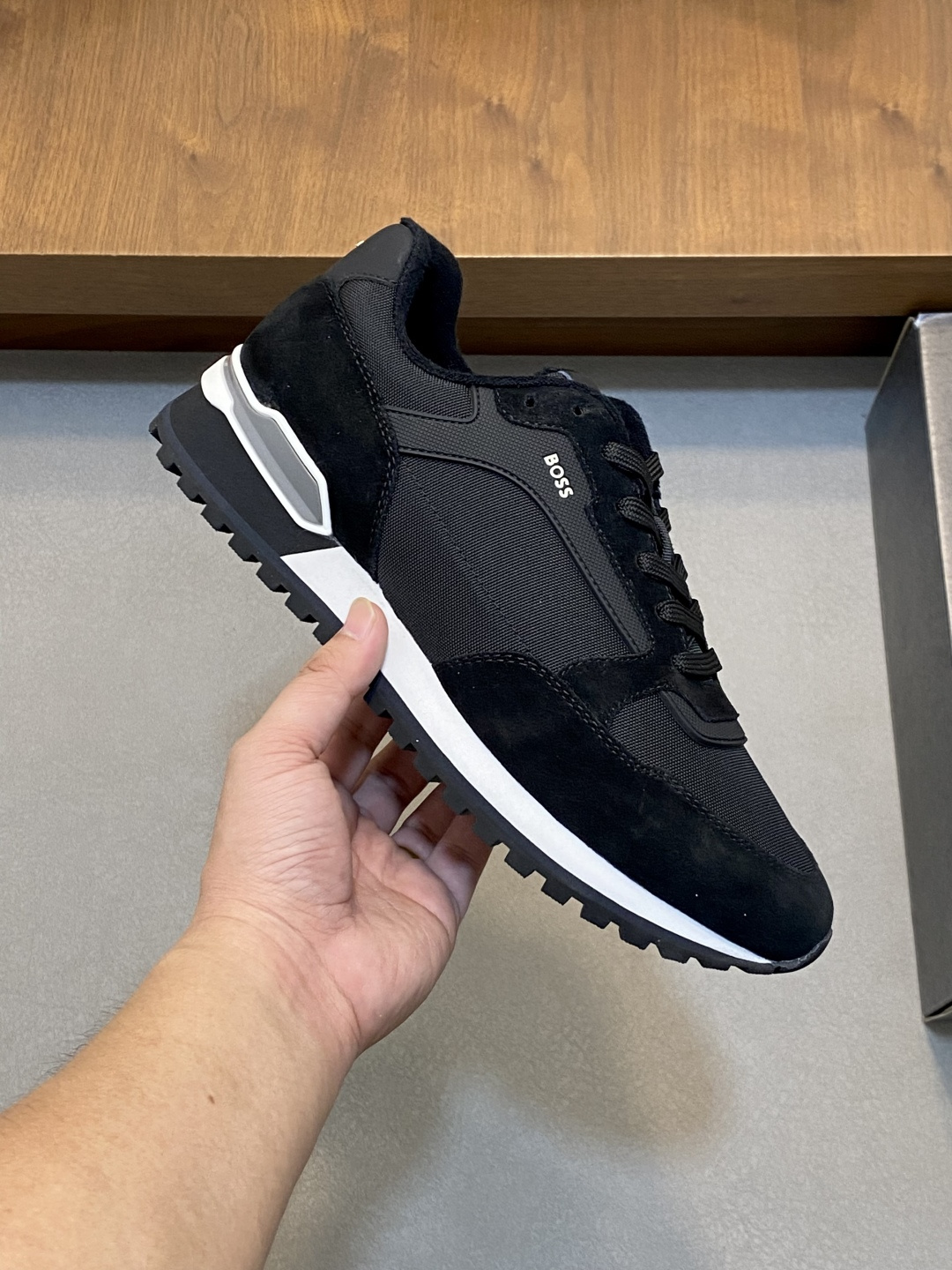這款鞋子是AAAAA 1:1 質量(非常棒). 使用了和原版一模一樣的材料. 商標部分也保持了和BOSS一樣. 圖片拍攝是實物鞋子拍攝, 您所收到的實物保證和我們圖片一模一樣.