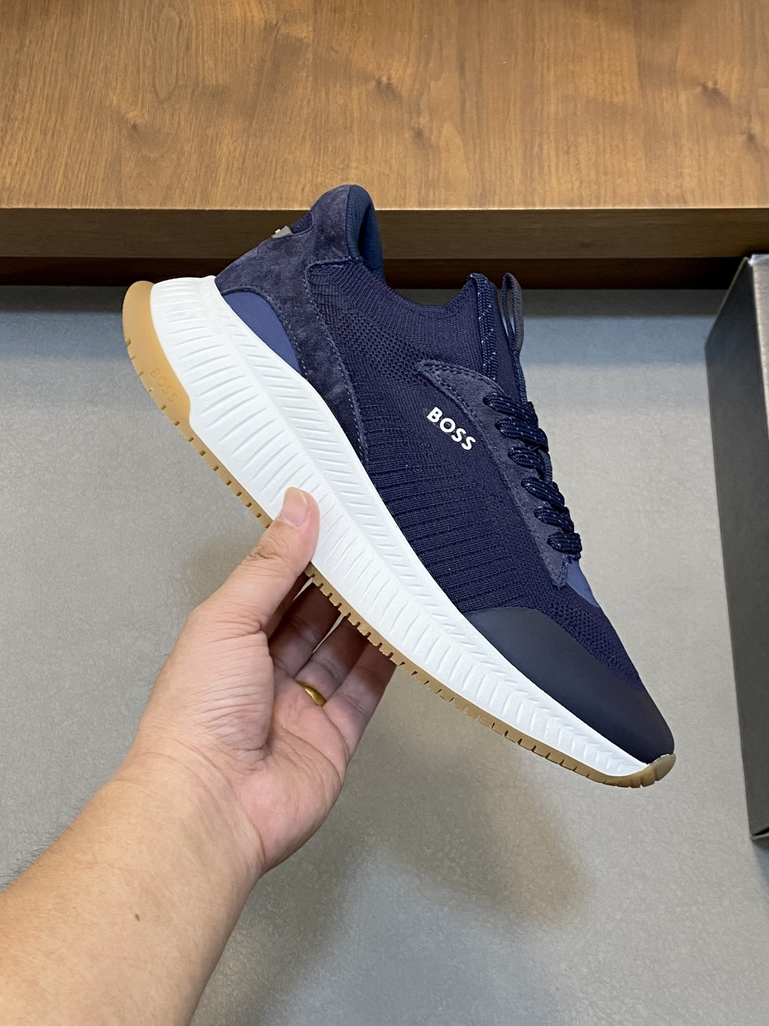 這款鞋子是AAAAA 1:1 質量(非常棒). 使用了和原版一模一樣的材料. 商標部分也保持了和BOSS一樣. 圖片拍攝是實物鞋子拍攝, 您所收到的實物保證和我們圖片一模一樣.
