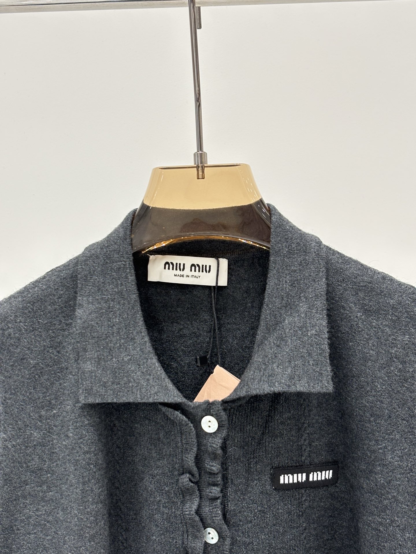 這款衣服是AAAAA 1:1 質量(非常棒). 使用了和原版一模一樣的材料. 商標部分也保持了和繆繆/Miu Miu一樣. 圖片拍攝是實物衣服拍攝, 您所收到的實物保證和我們圖片一模一樣.