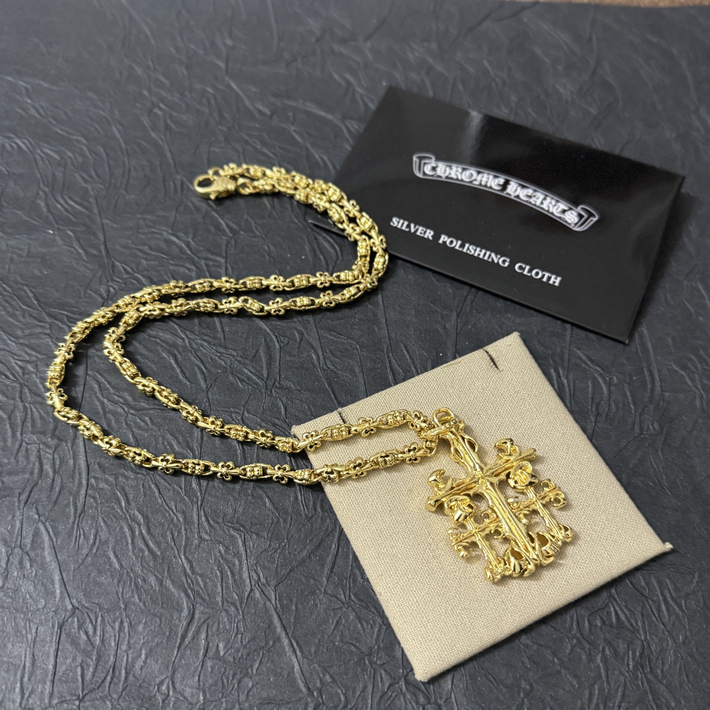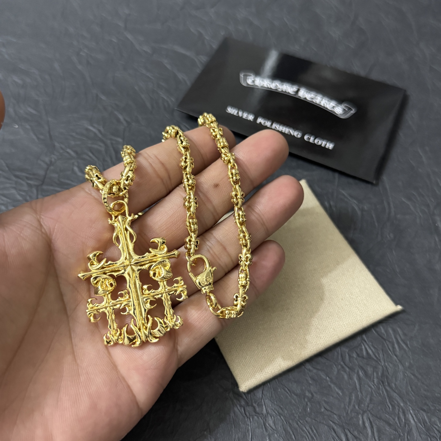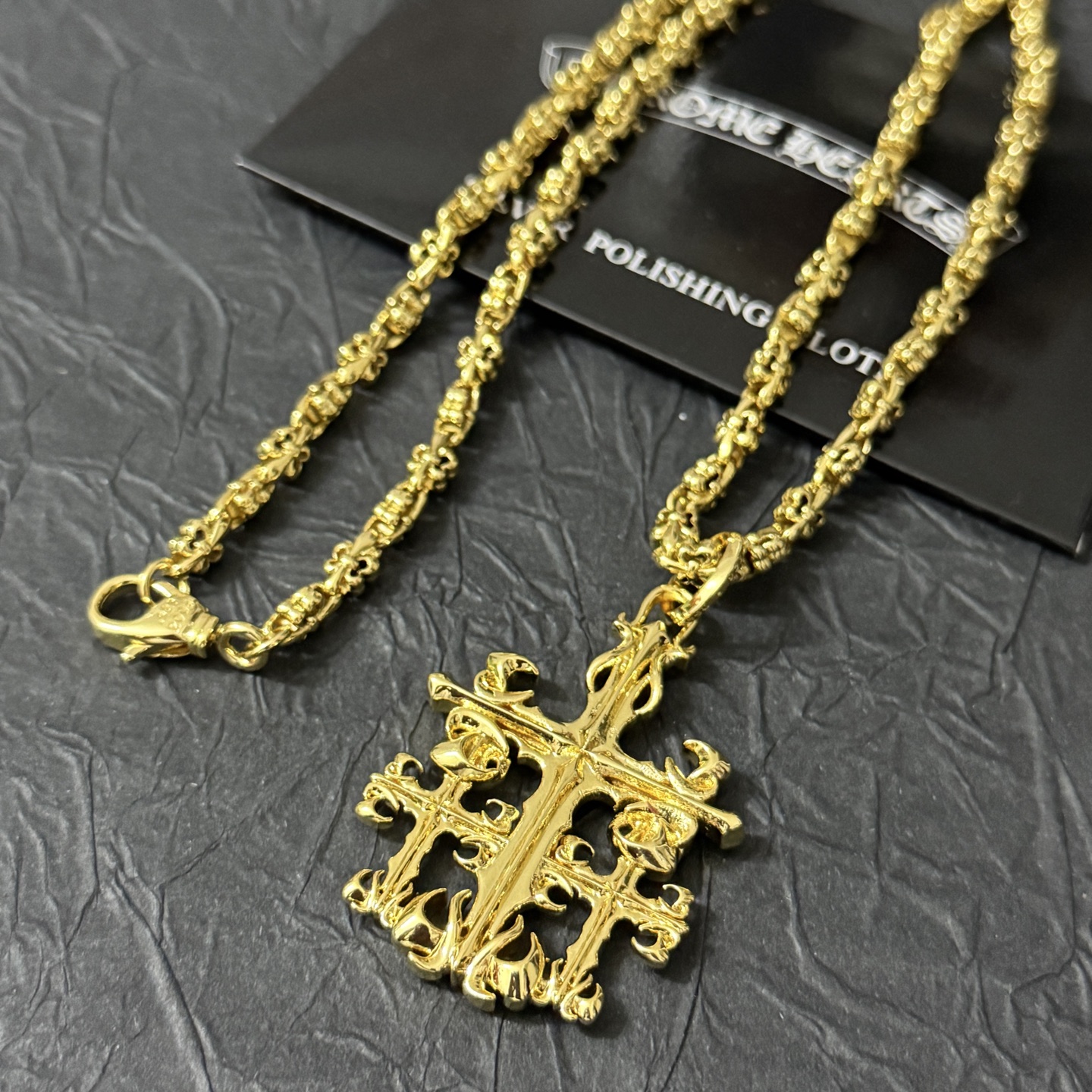 這款首飾是AAAAA 1:1 質量(非常棒). 使用了和原版一模一樣的材料. 商標部分也保持了和鉻心/Chrome Hearts一樣. 圖片拍攝是實物首飾拍攝, 您所收到的實物保證和我們圖片一模一樣.