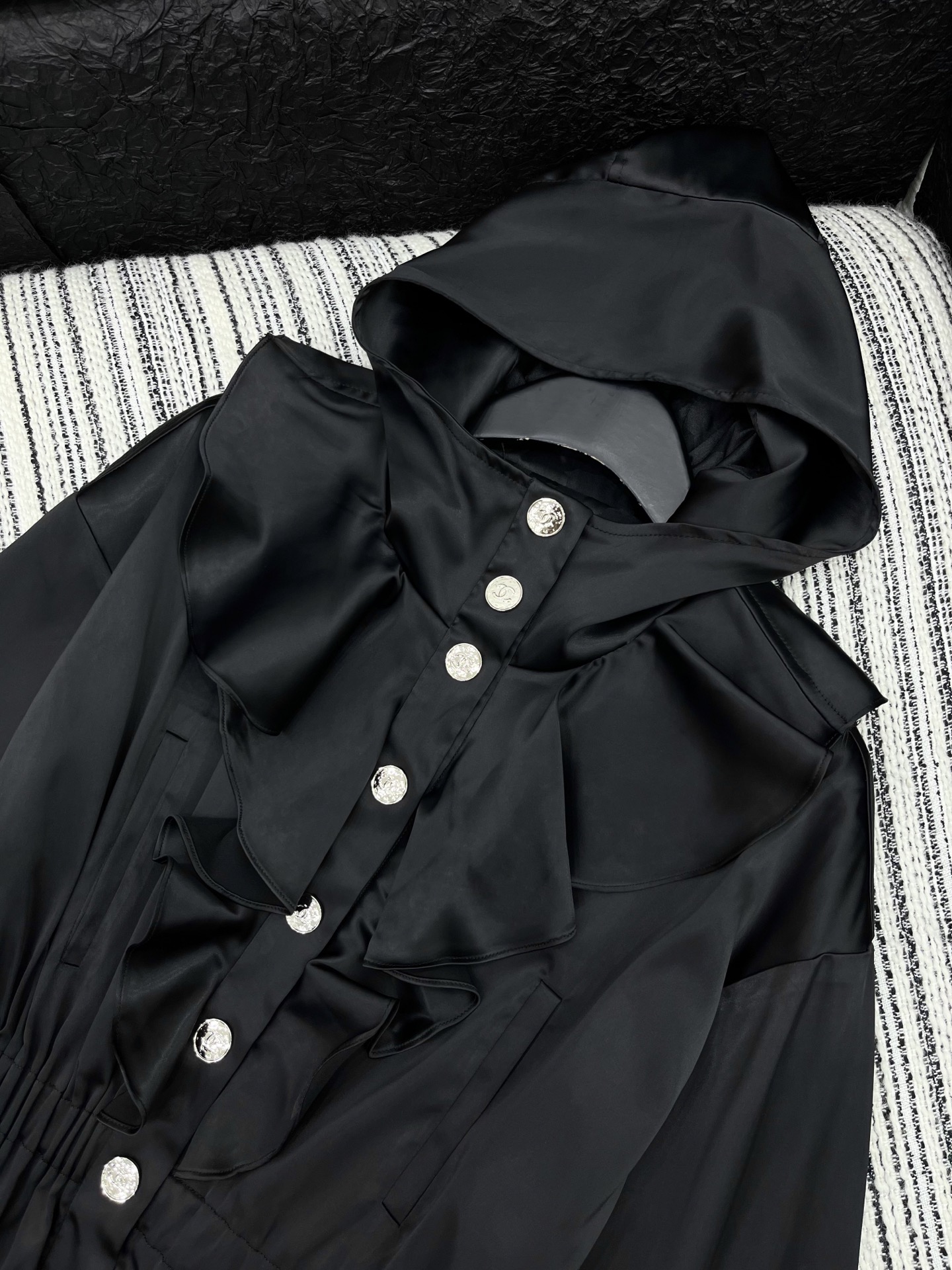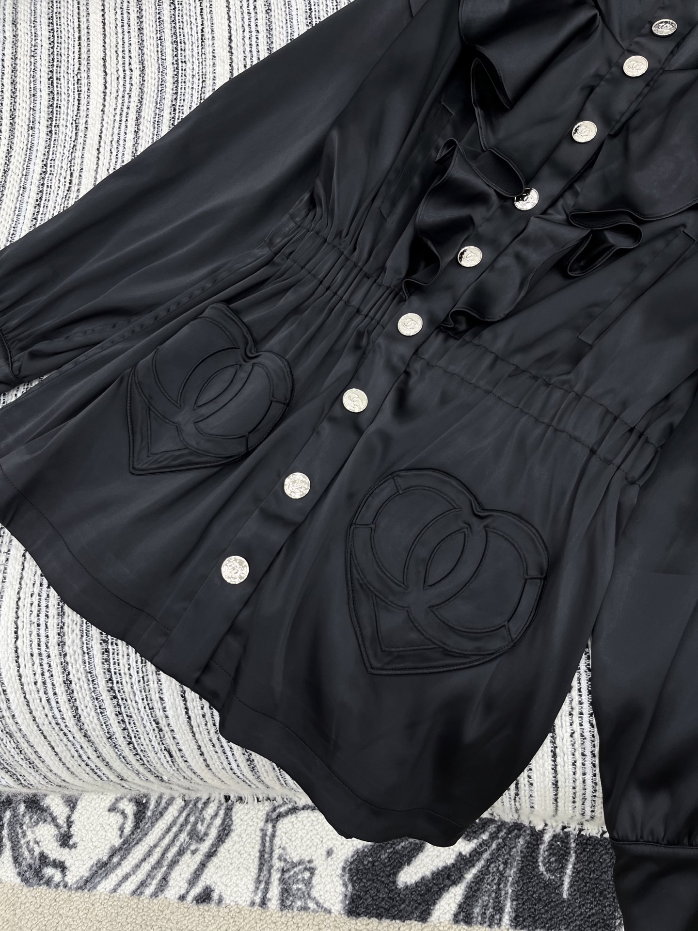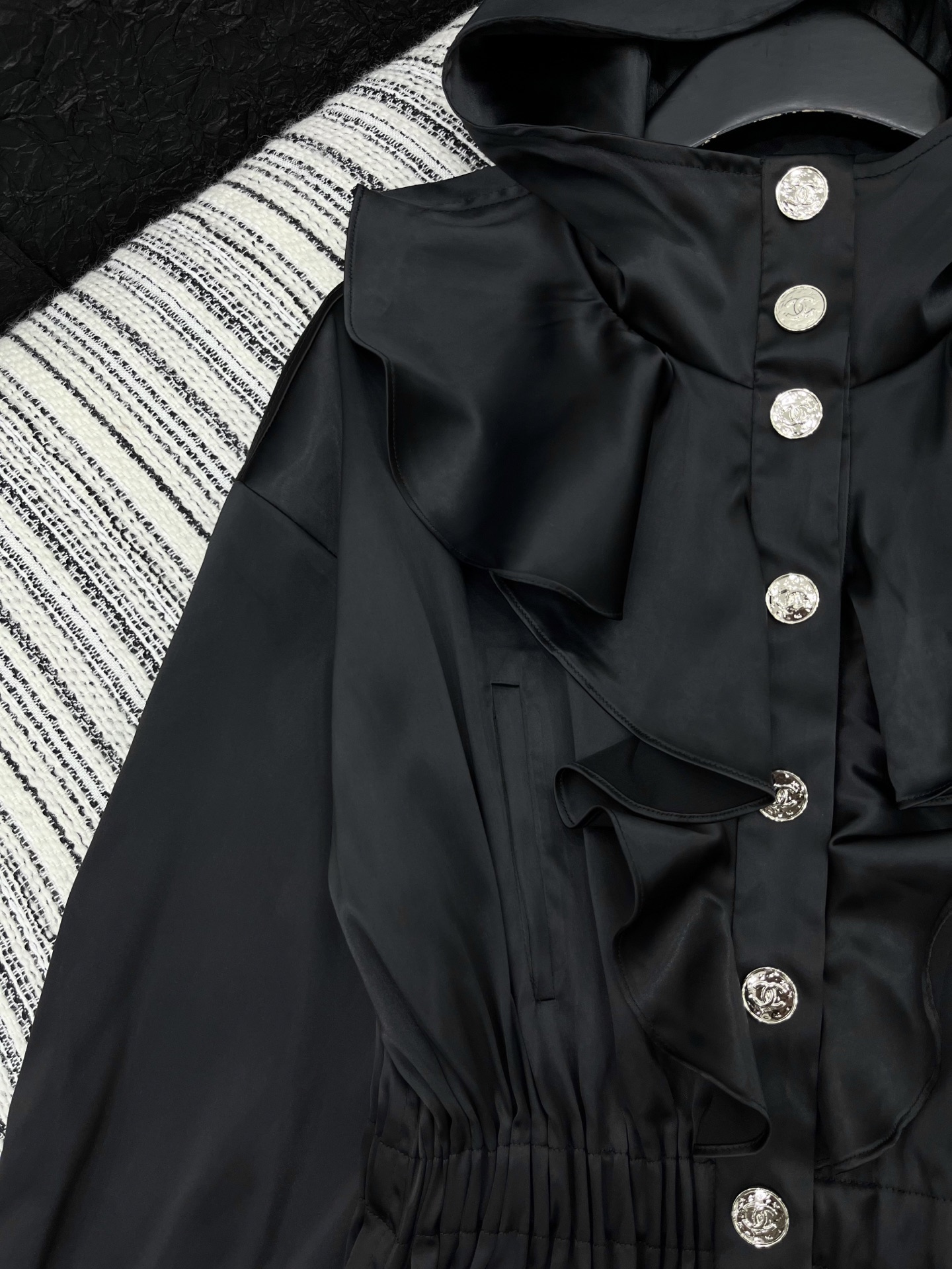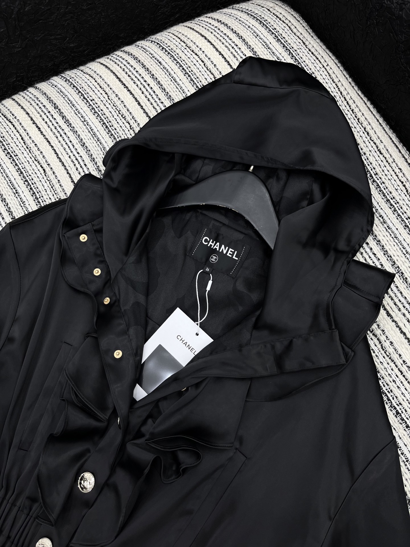 這款衣服是AAAAA 1:1 質量(非常棒). 使用了和原版一模一樣的材料. 商標部分也保持了和香奈兒/Chanel一樣. 圖片拍攝是實物衣服拍攝, 您所收到的實物保證和我們圖片一模一樣.
