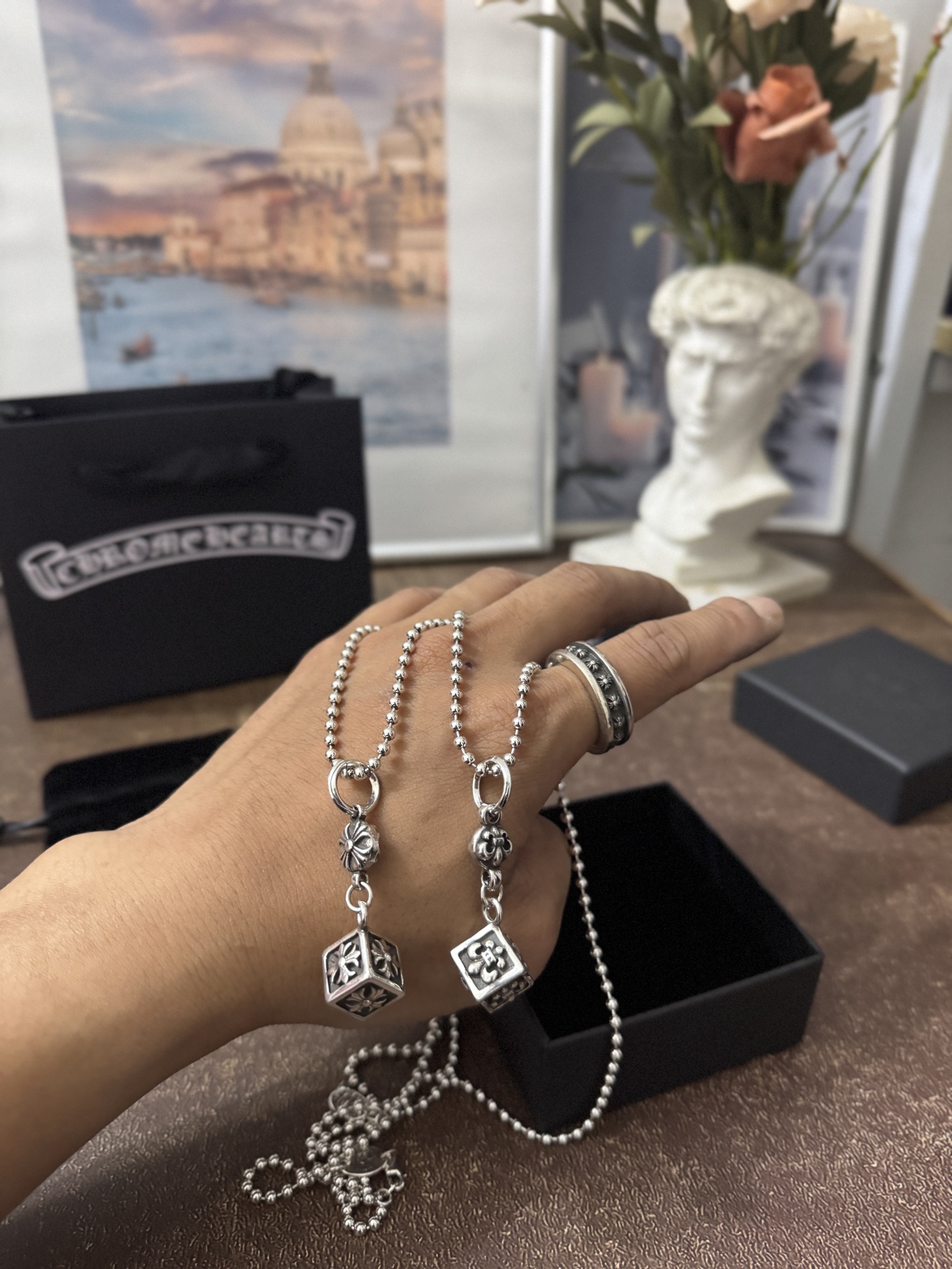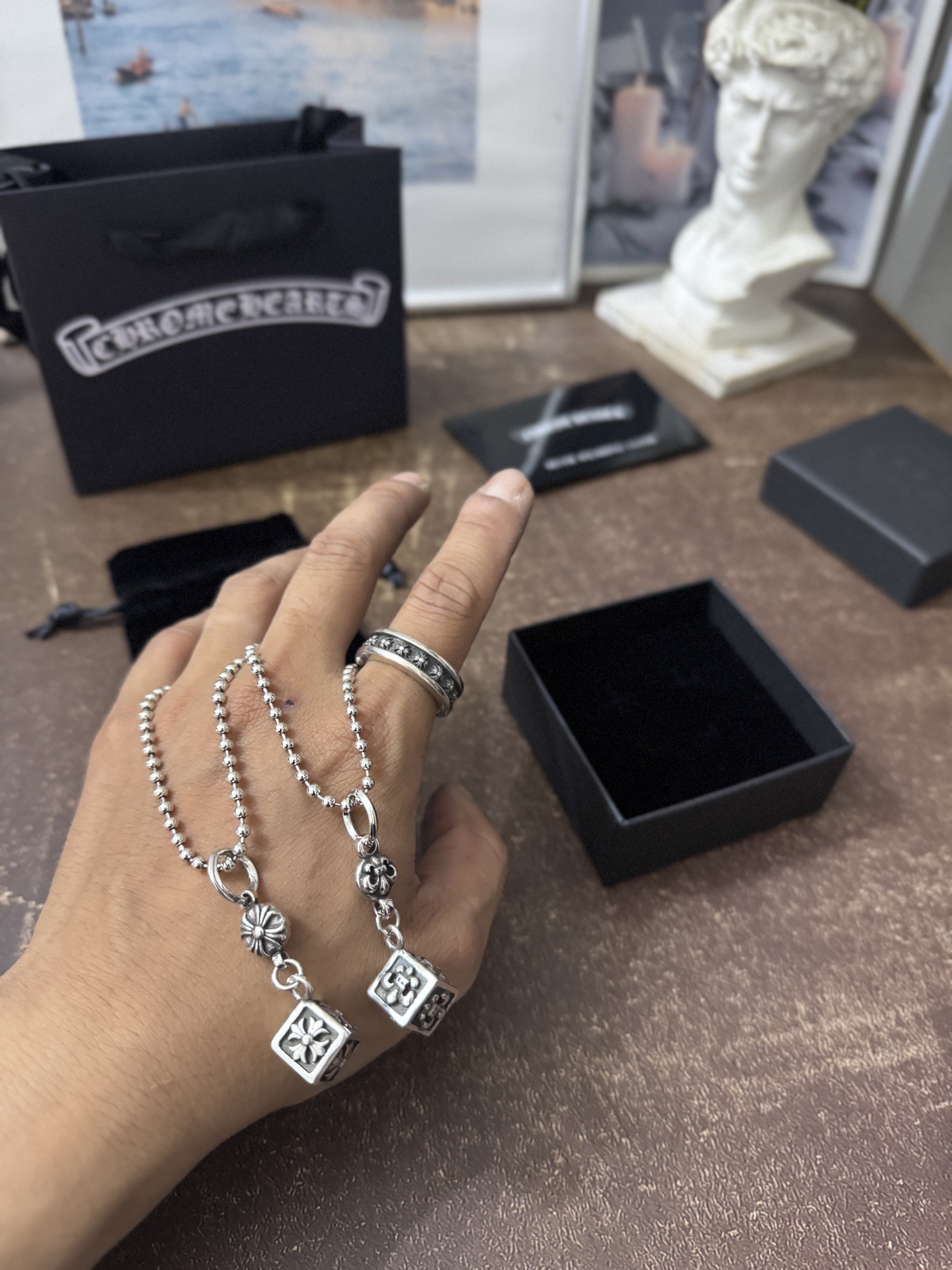 這款首飾是AAAAA 1:1 質量(非常棒). 使用了和原版一模一樣的材料. 商標部分也保持了和鉻心/Chrome Hearts一樣. 圖片拍攝是實物首飾拍攝, 您所收到的實物保證和我們圖片一模一樣.