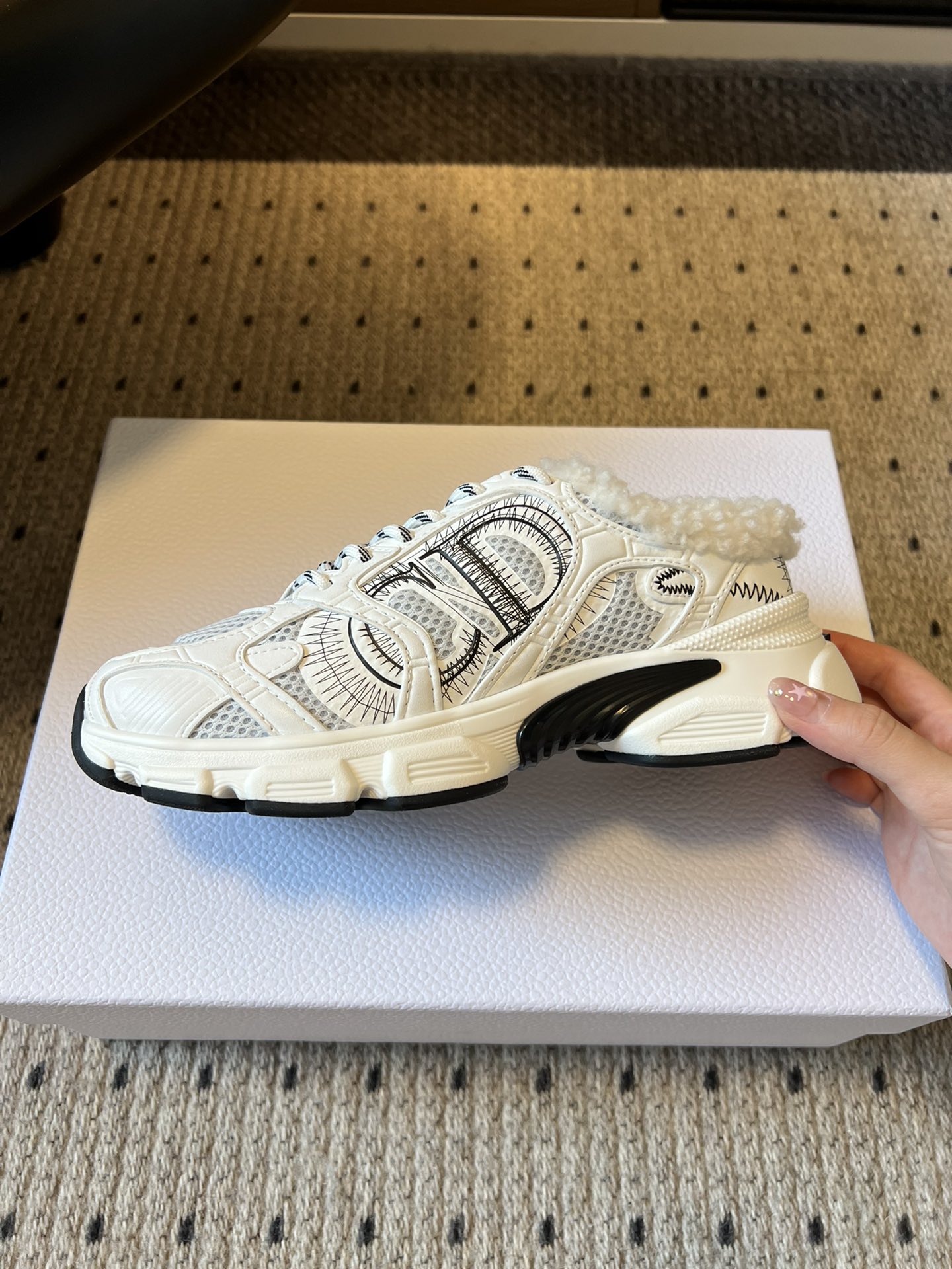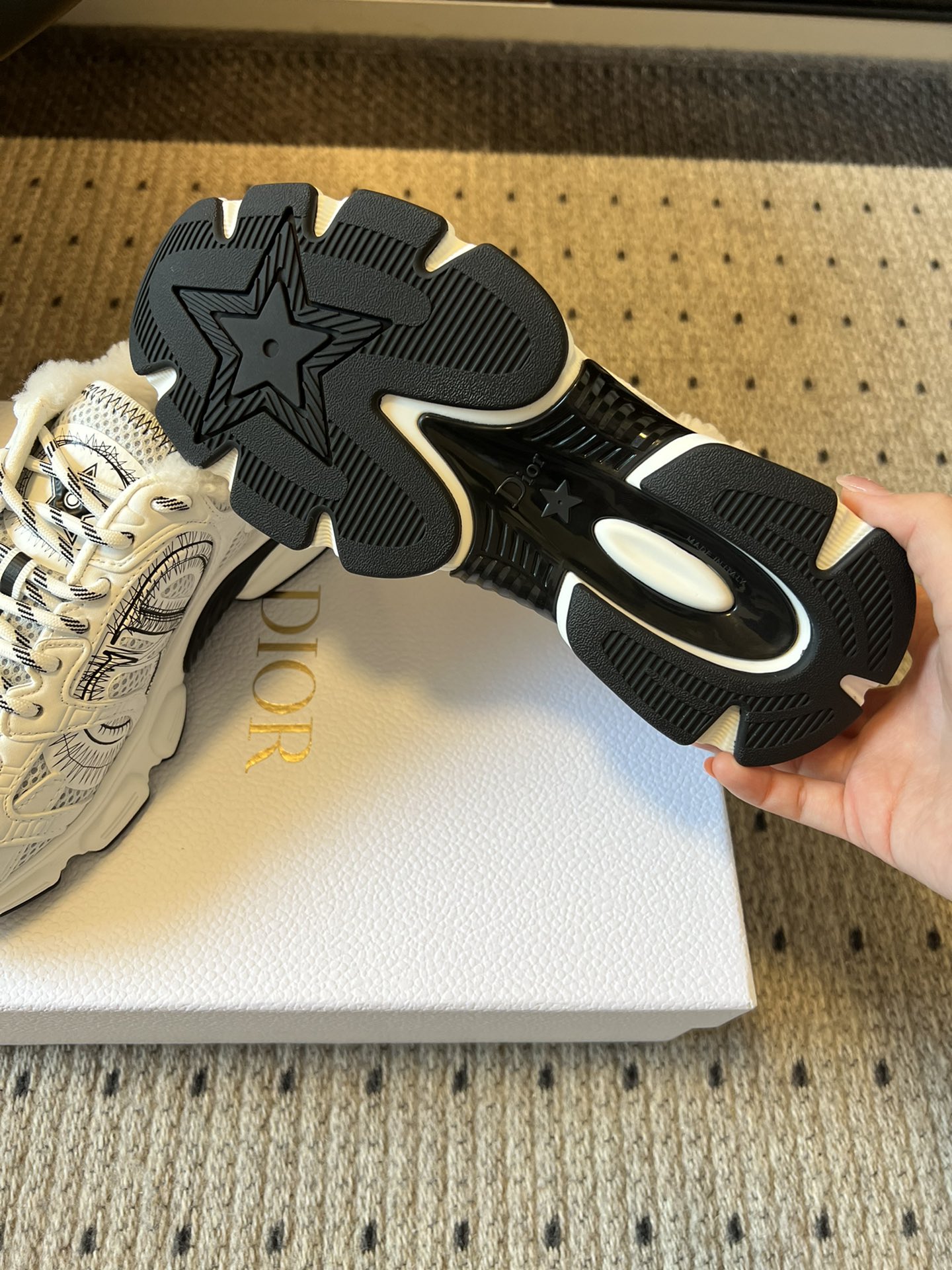 這款鞋子是AAAAA 1:1 質量(非常棒). 使用了和原版一模一樣的材料. 商標部分也保持了和迪奧/Dior一樣. 圖片拍攝是實物鞋子拍攝, 您所收到的實物保證和我們圖片一模一樣.